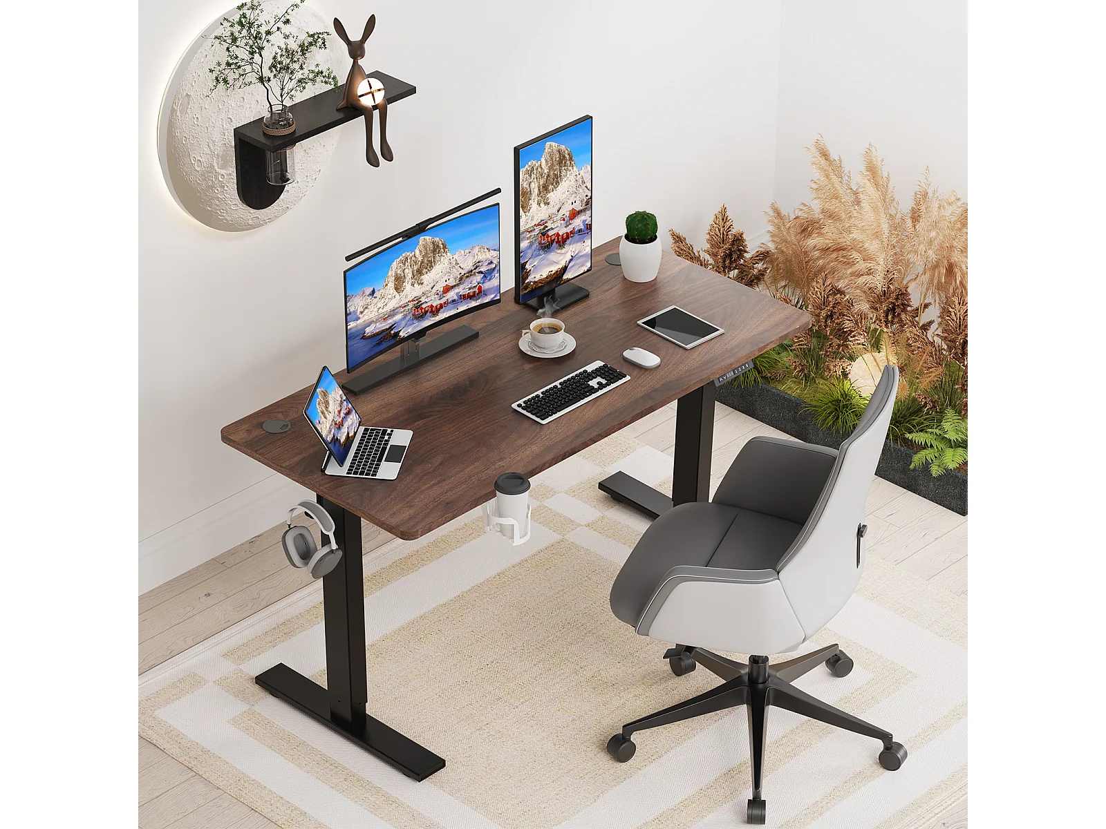 Homavo: supporto da scrivania regolabile con memoria, funzione di ritorno in caso di resistenza, porte USB/Type-C, altezza 69-117 cm.