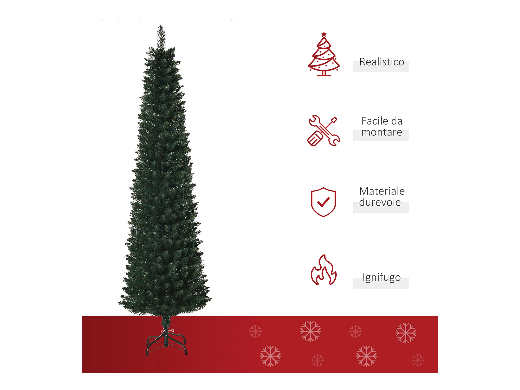 Albero di Natale Artificiale Sottile con 150 LED 120 cm