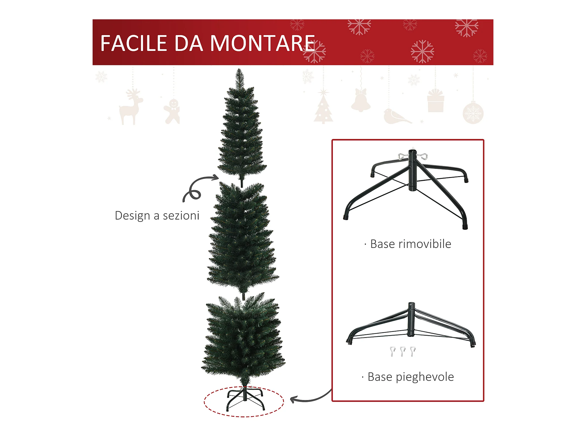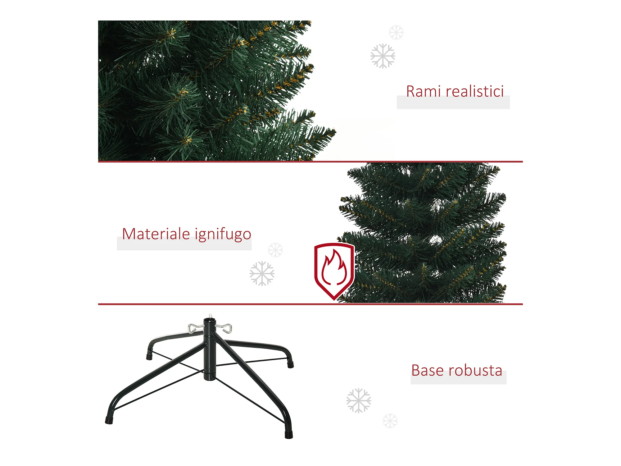 HOMCM Albero di Natale 180cm Artificiale con Base Pieghevole 380 Rami
