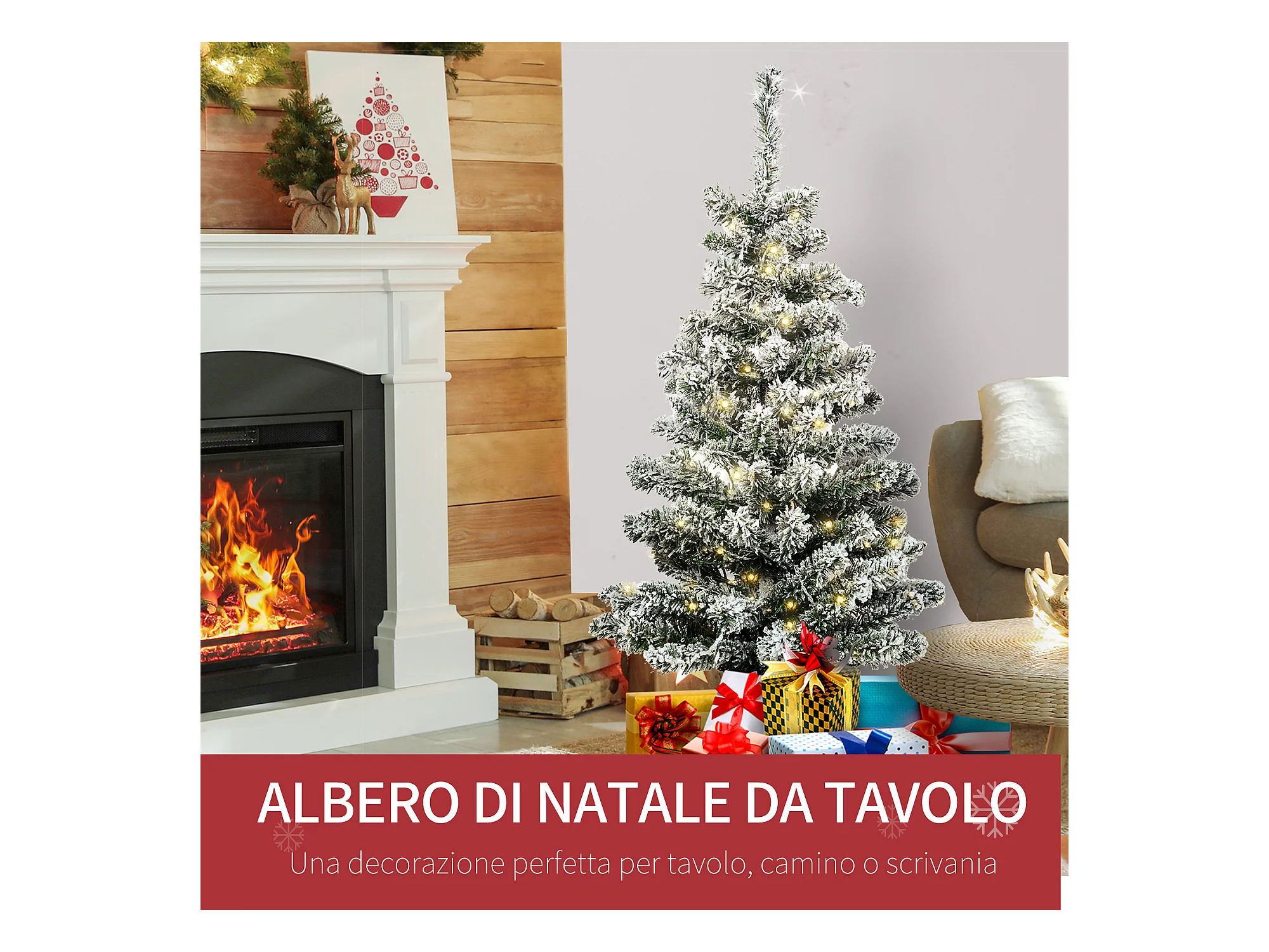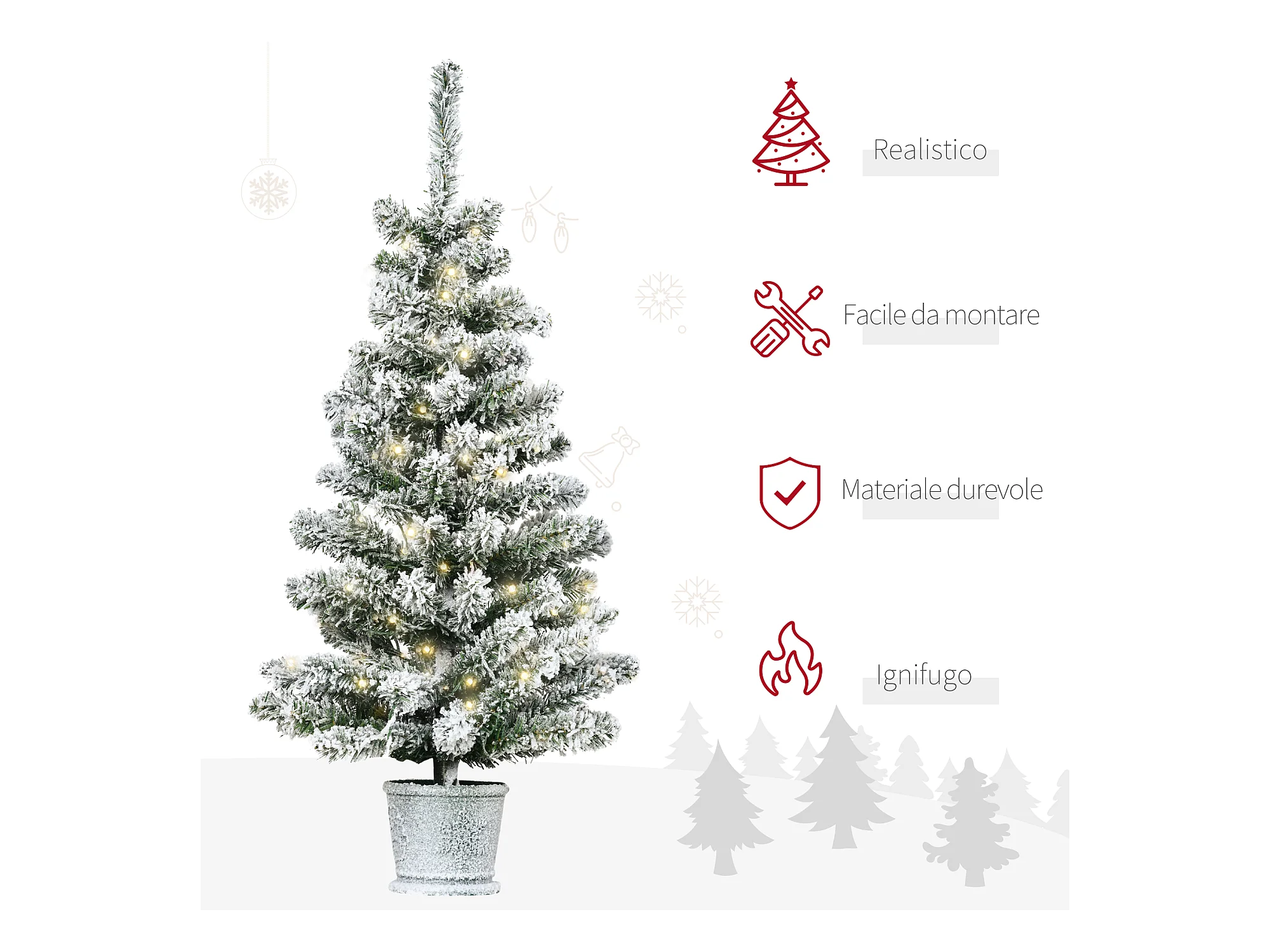 HOMCM Albero di Natale Innevato Artificiale 60 Luci Bianche 116 Rami
