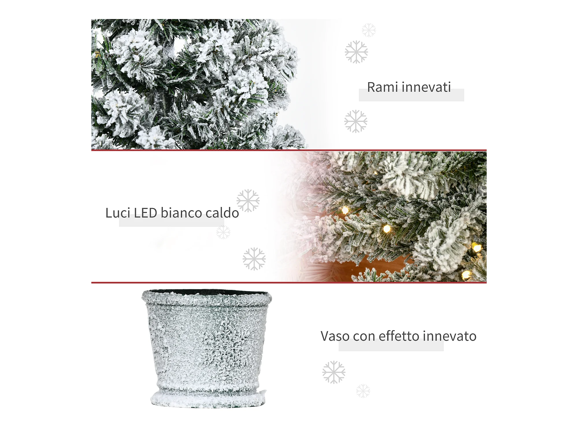 Albero di Natale artificiale 300 led e neve floccata 180 cm