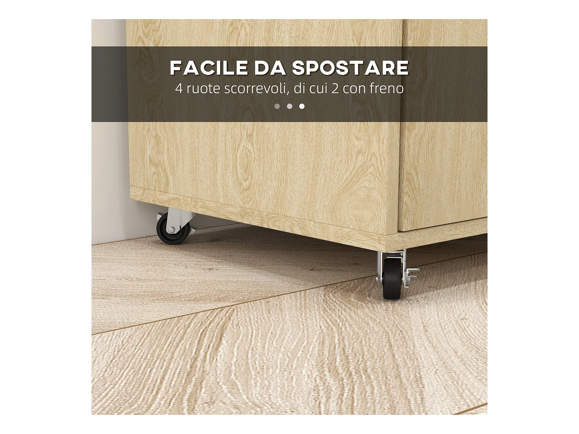 Carrello da cucina moderno con ruote cassetto anta legno rovere
