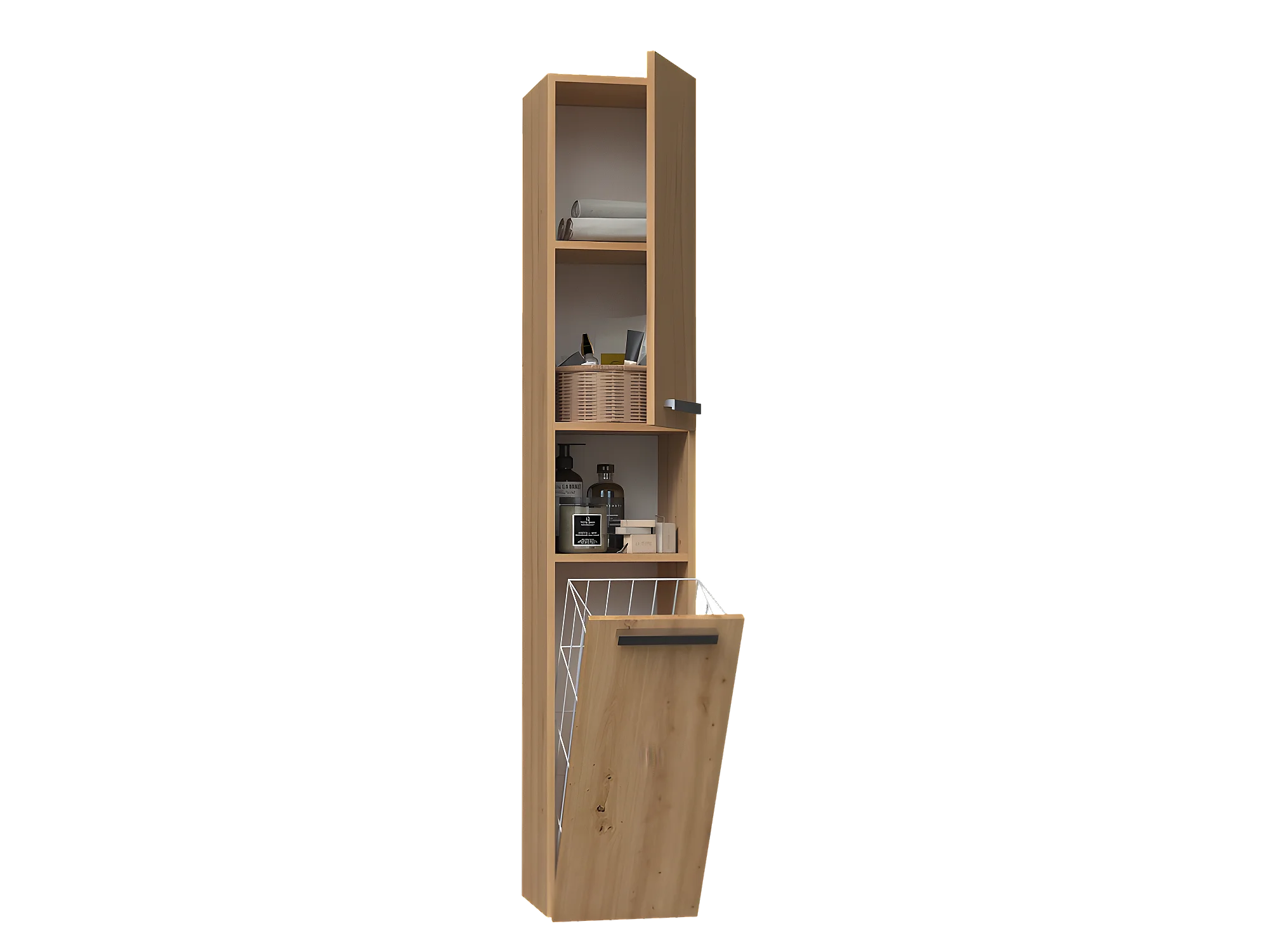 HORTI - Mobile da bagno con cesto portabiancheria - 31x30x174cm - Colonna portaoggetti per il bagno