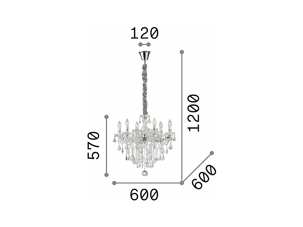 Ideal Lux Florian - Lampadario a 6 luci in cristallo con finitura cromata, attacco E14