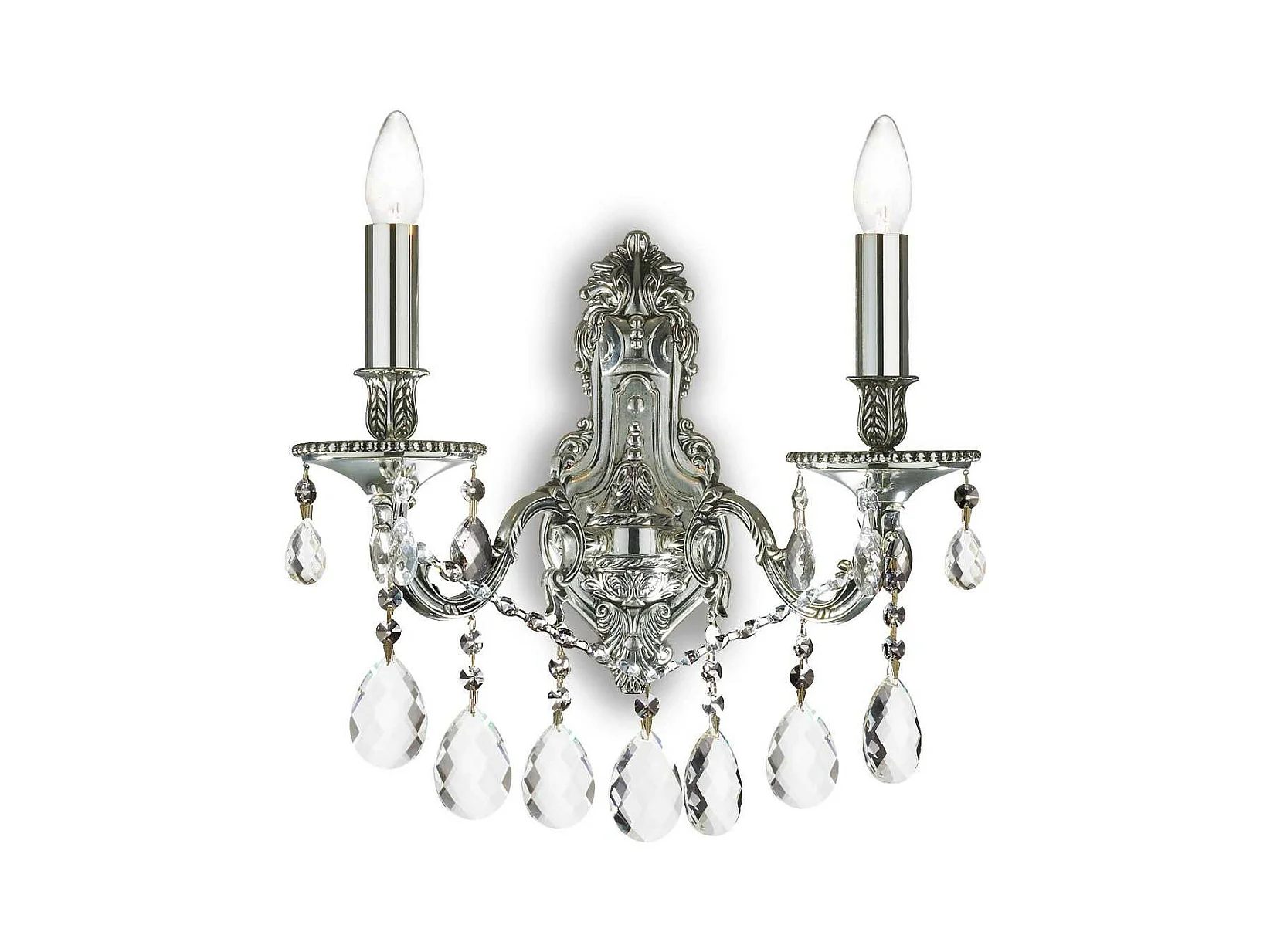 Ideal Lux Gioconda - Applique da parete a 2 luci per interni, argento con cristalli, attacco E14