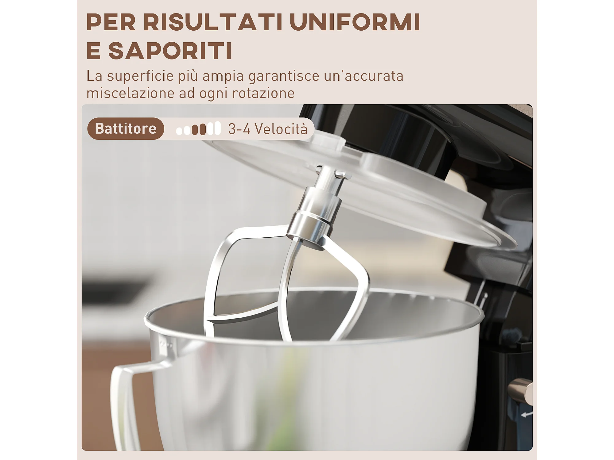 Impastatrice planetaria da 4.5l a 6 velocità con frusta e gancio