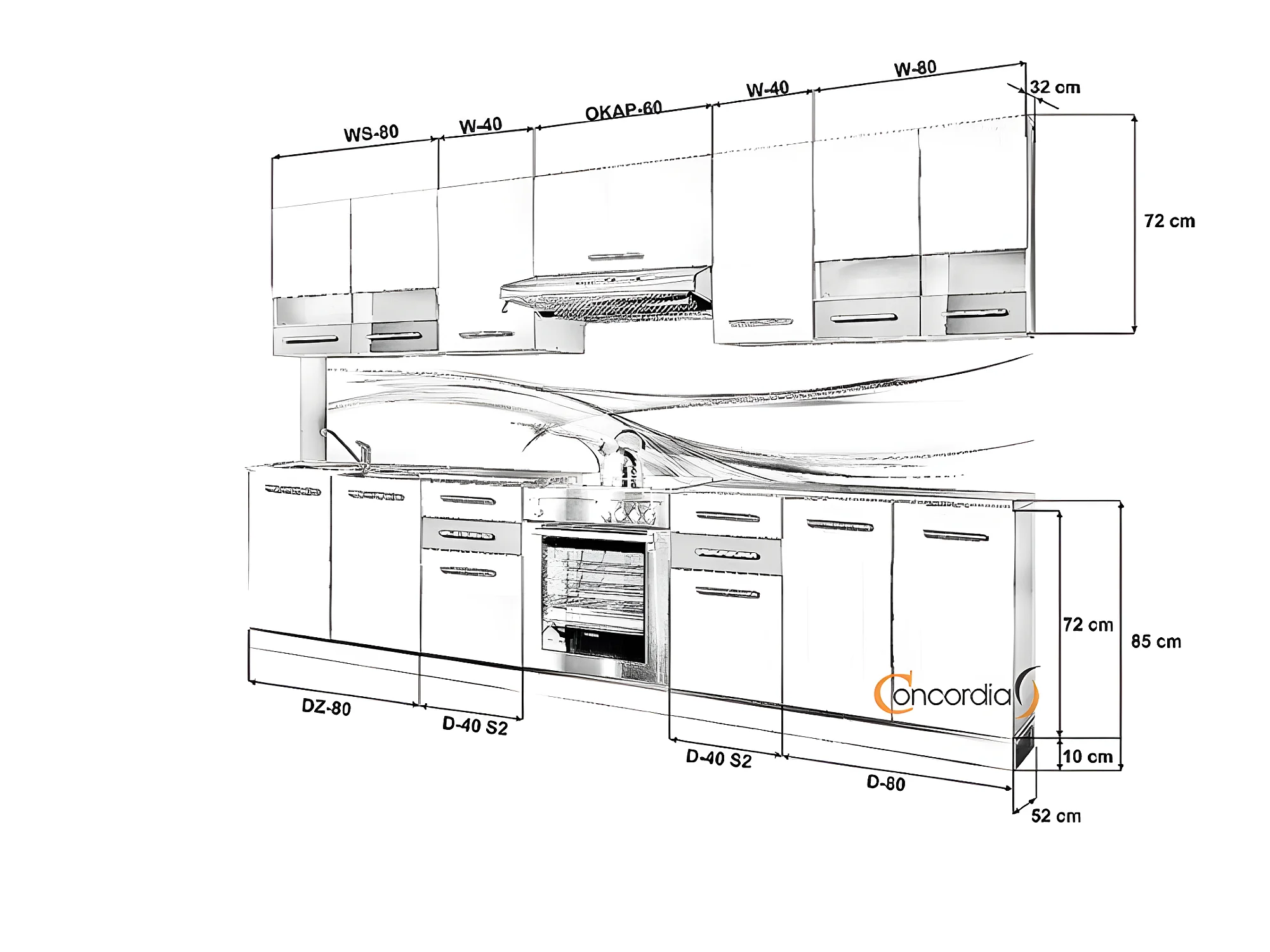 IONA | Cucina Lineare Completa 3 m 9 pz + Piano di Lavoro INCLUSI | Set di mobili da cucina | Set da cucina