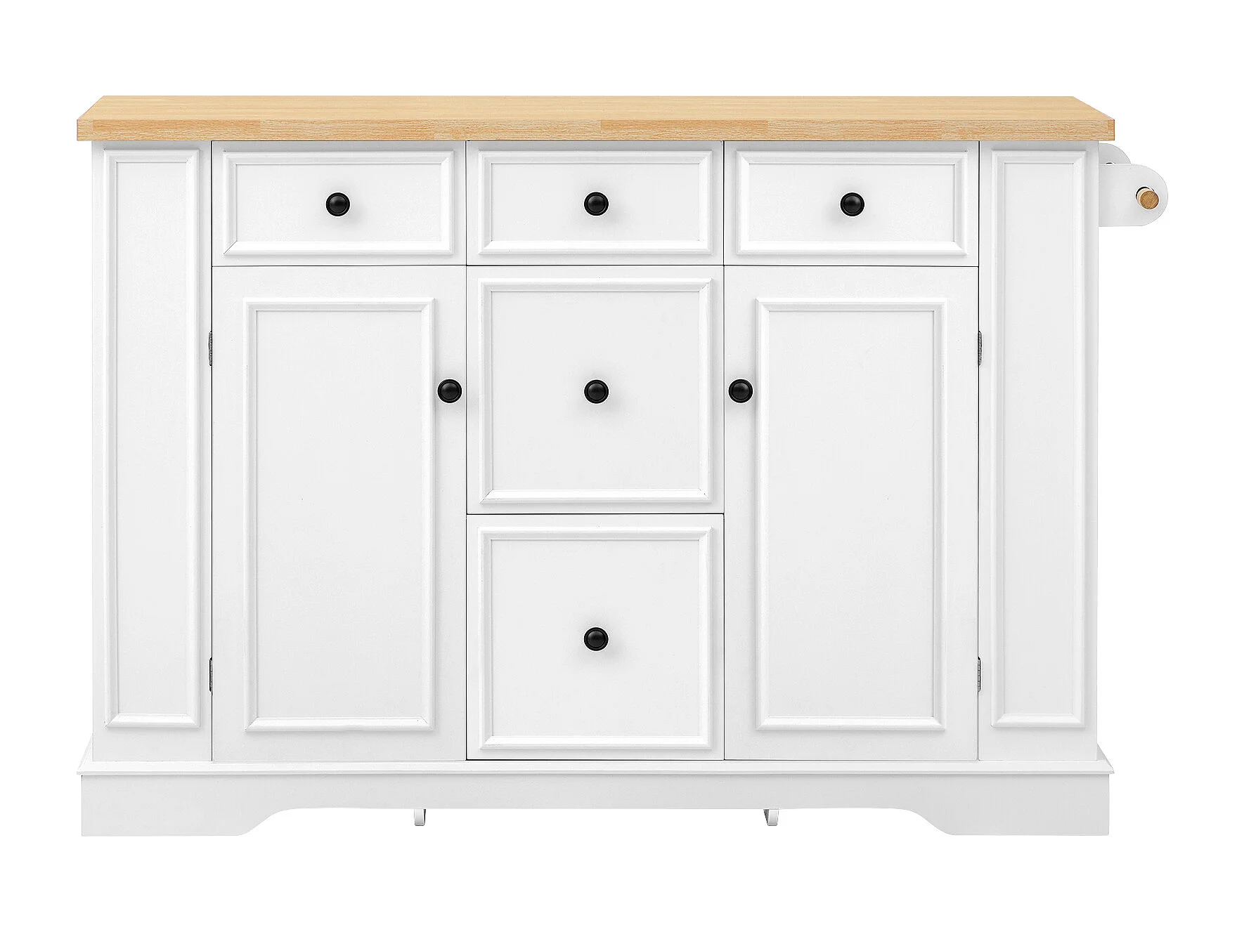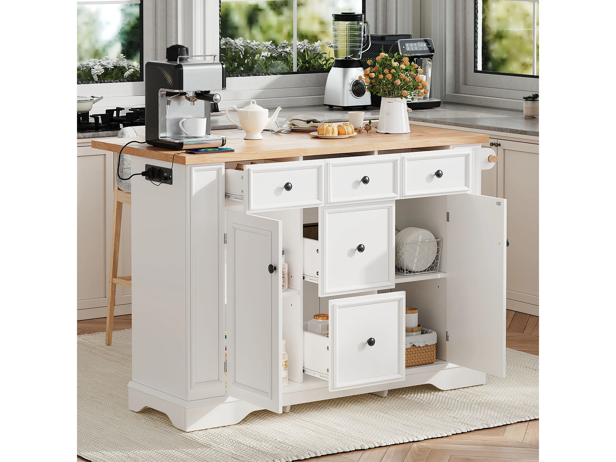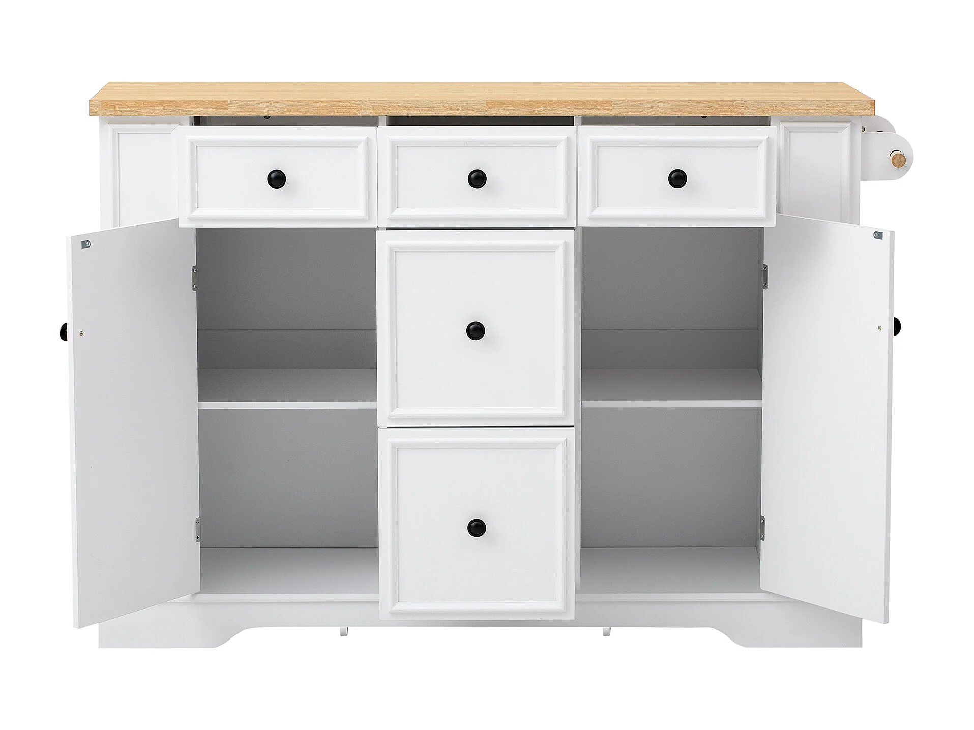 Isola cucina allungabile - 130 x 40-65 x 92 cm - con ripiani + 5 cassetti + 2 ante - MDF - bianca