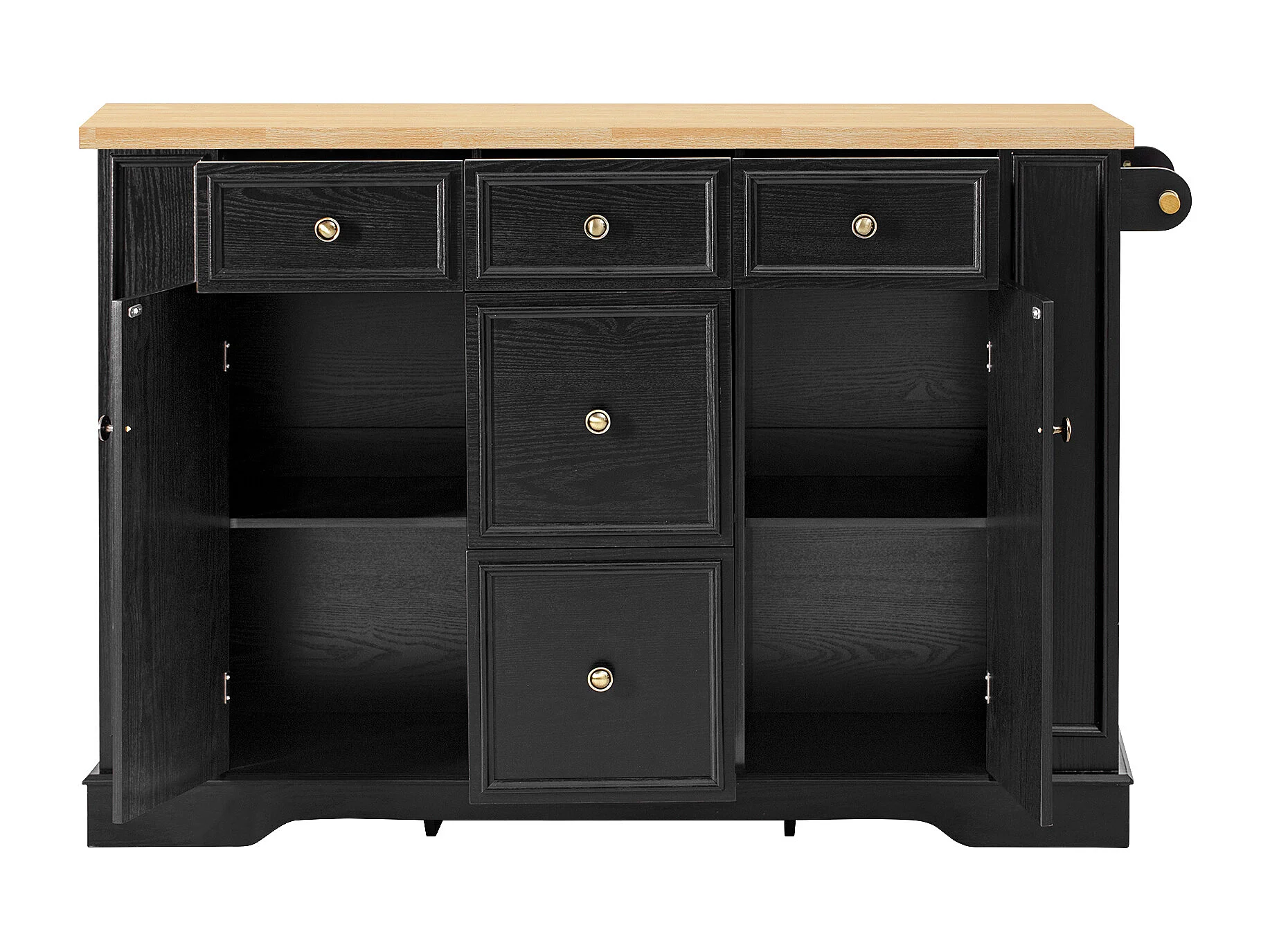 Isola cucina allungabile - 130 x 40-65 x 92 cm - con ripiani + 5 cassetti + 2 ante - MDF - nero
