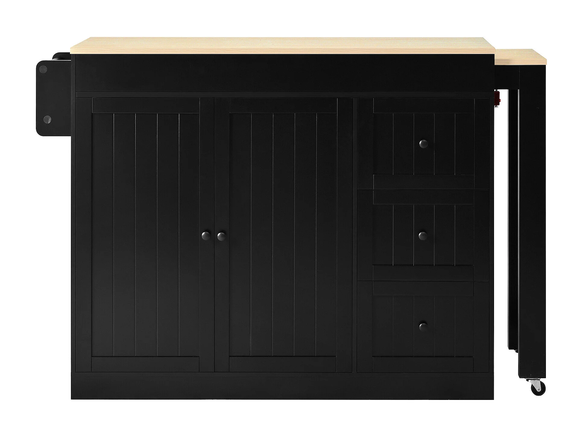 Isola cucina allungabile su ruote - 112/186,8 x 45 x 93 cm - con ripiano + 3 cassetti + 2 ante - MDF - nero