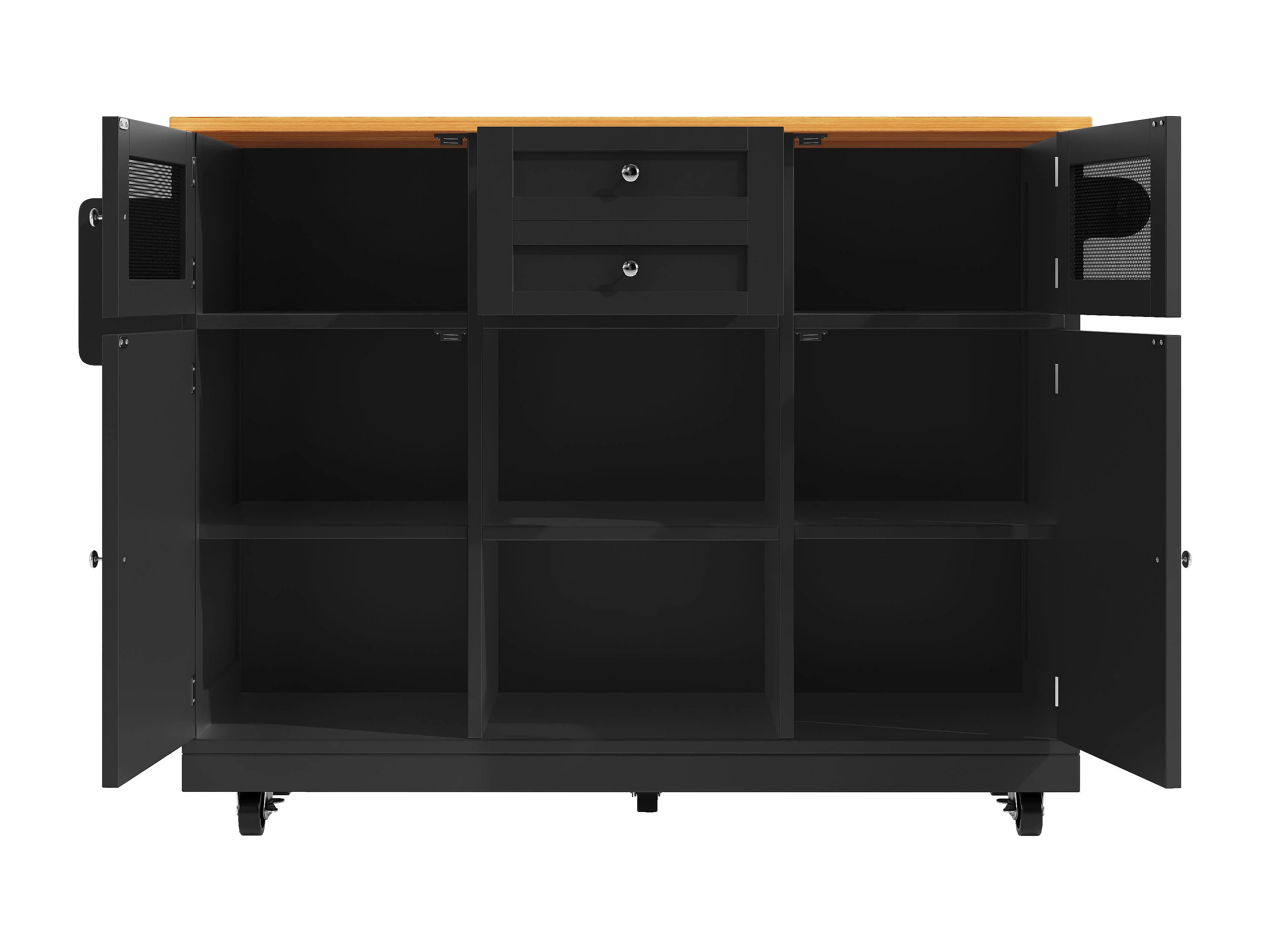 Isola cucina nera - Carrello cucina con 2 cassetti e 2 ante - 6 vani portaoggetti aperti