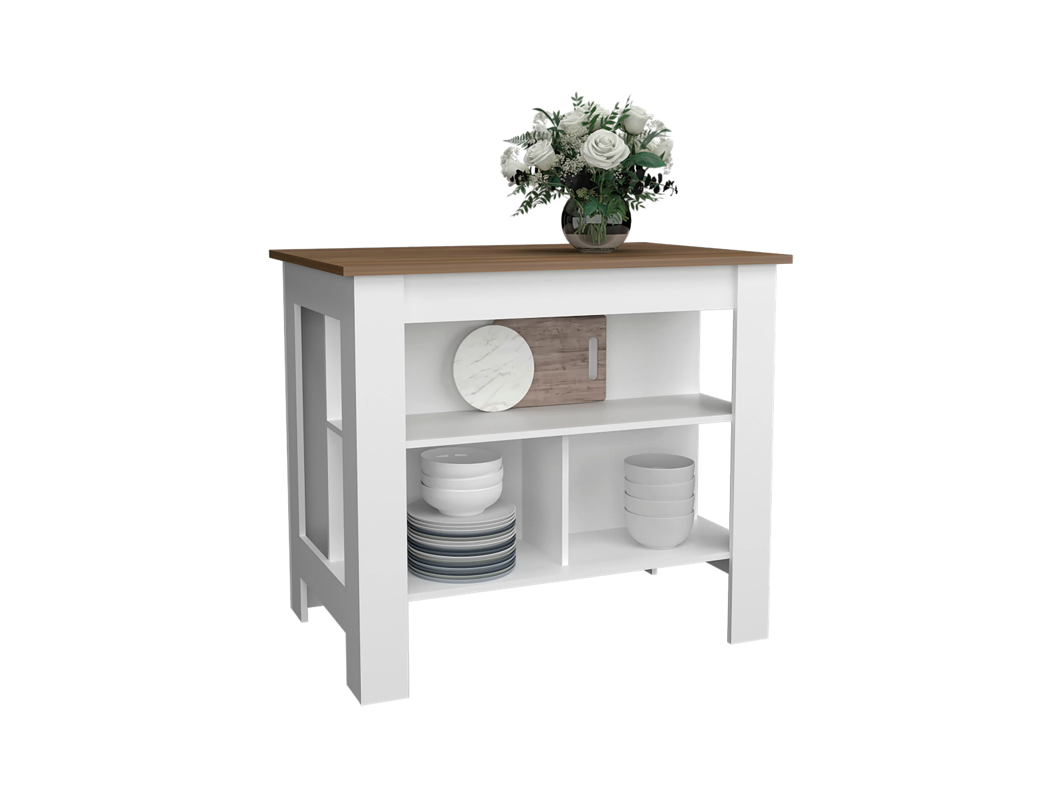 Isola da cucina Cala in melamina con tre ripiani , 89.99 cm X 102.99 cm X 69.97 cm , Bianco / Duna