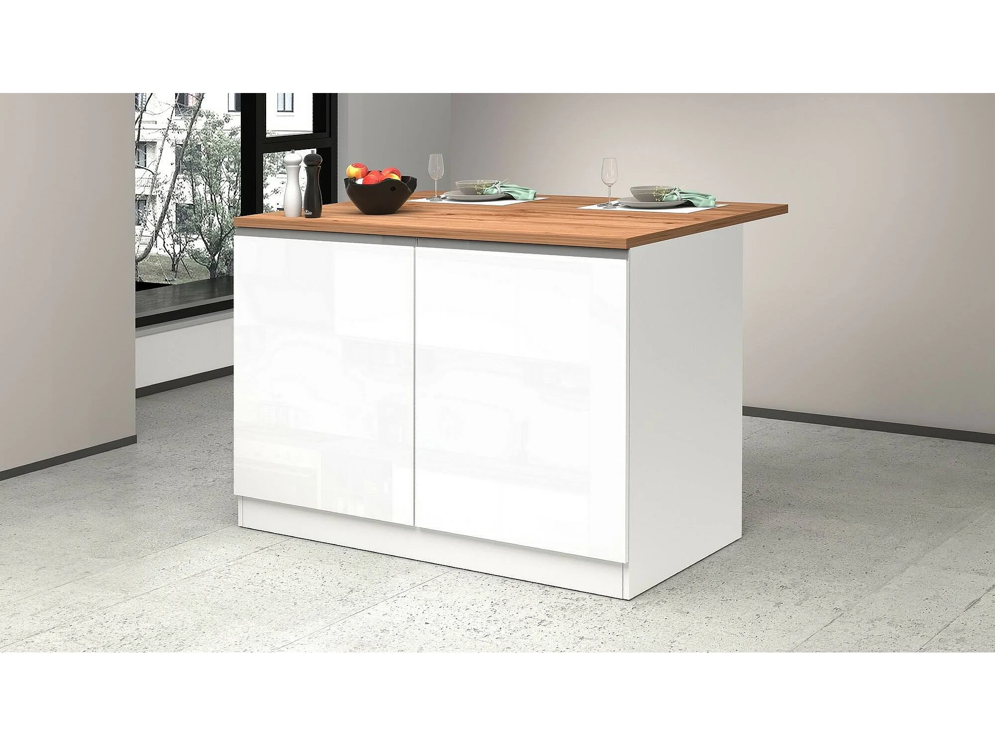 Dmora - Isola da cucina Analiza, 125x90h90 cm, Bianco lucido e Rovere