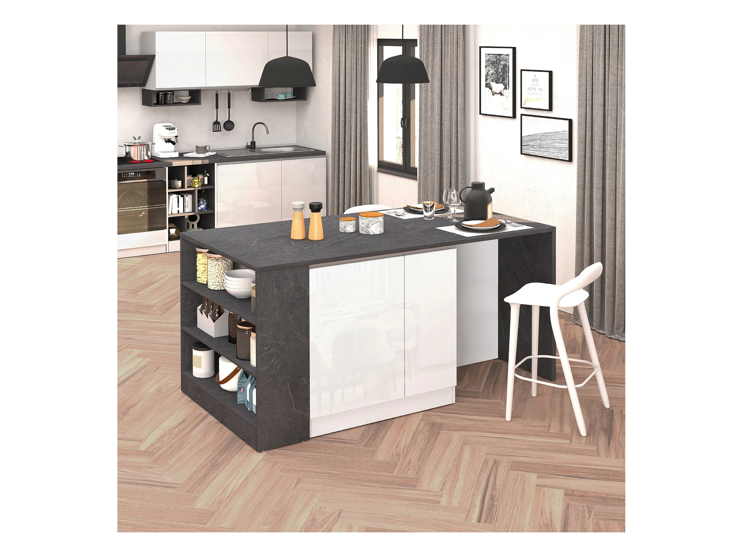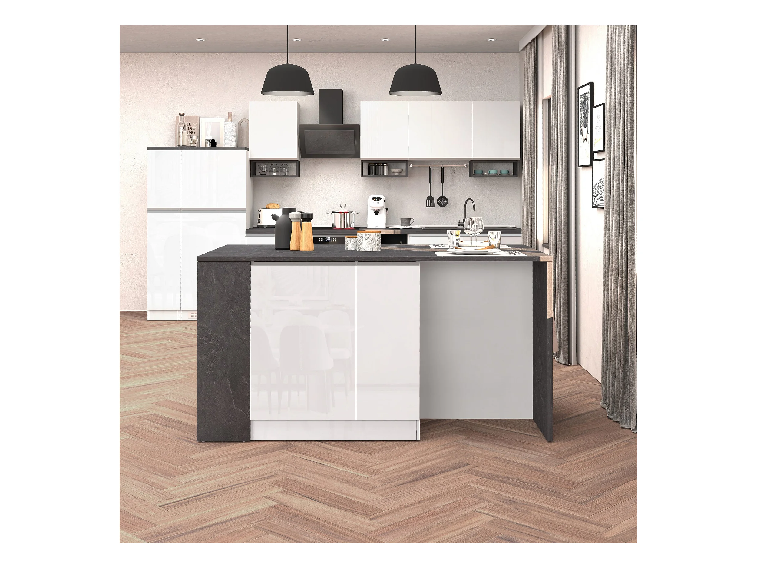 Isola da cucina Sole con 1 anta 2 cassetti e 6 vani bianco lucido/rovere 153x90x91 cm