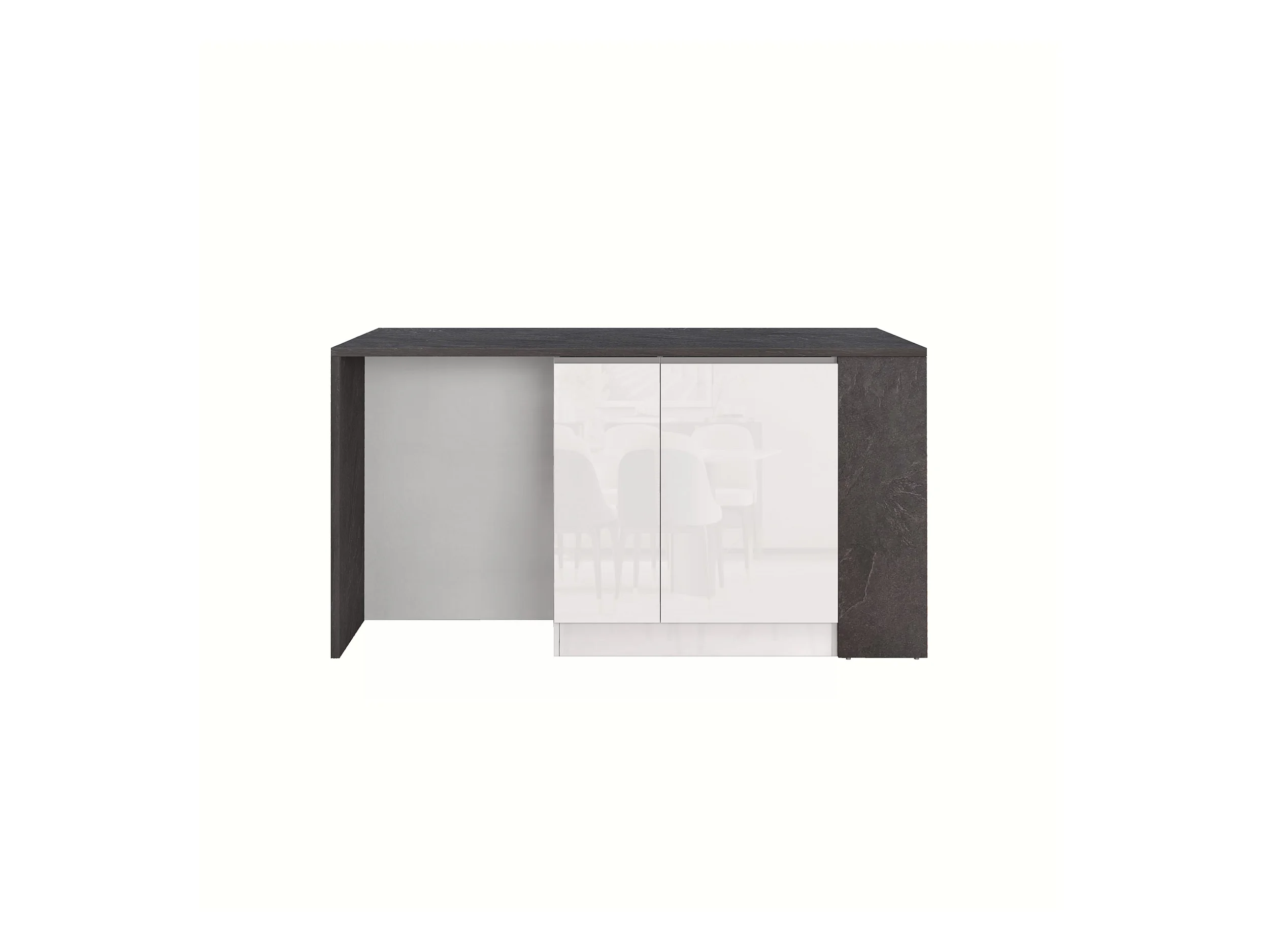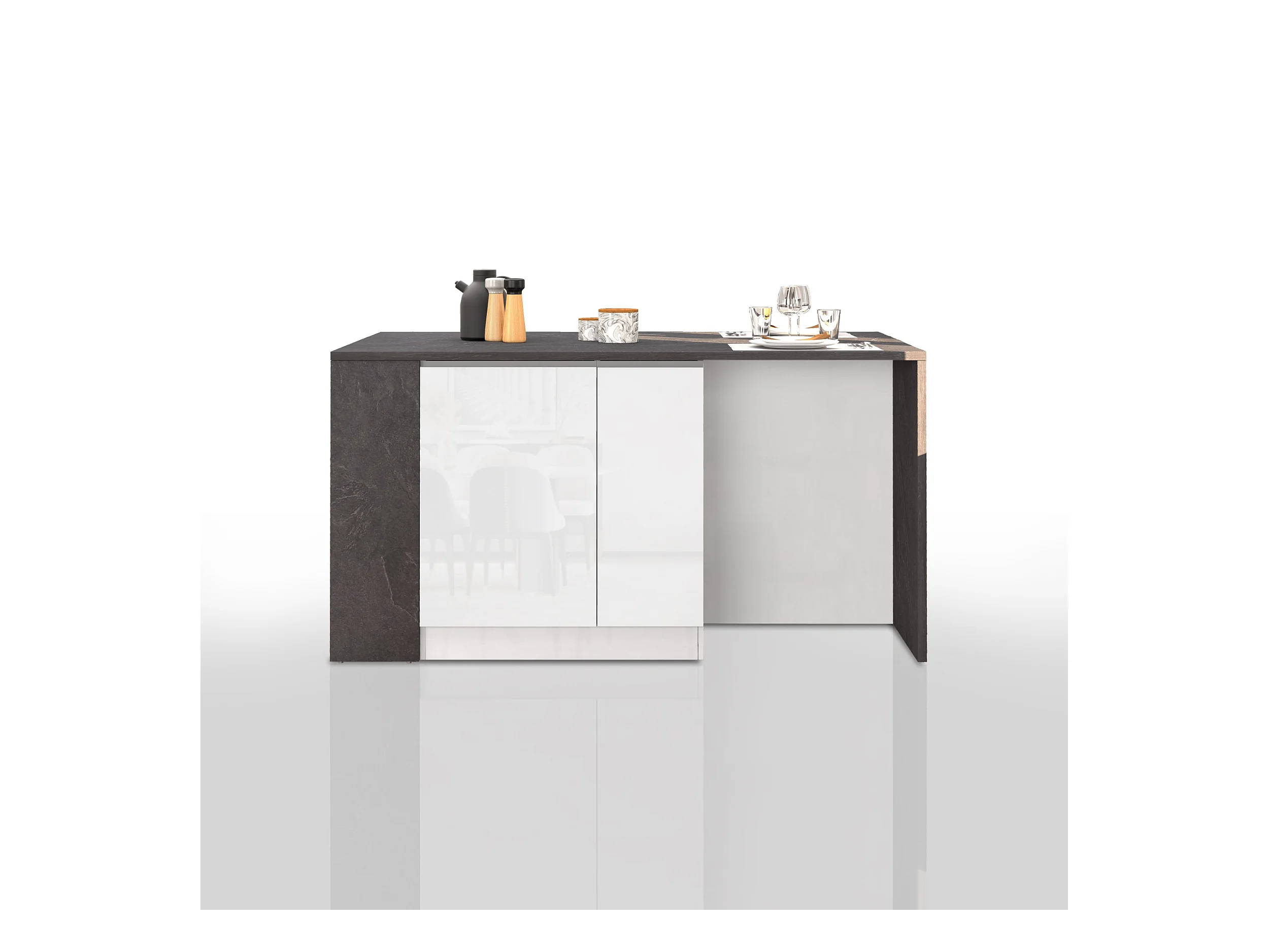 Isola centrale mobile con piano pieghevole, 3 ante e 2 cassetti portaoggetti - Bianco