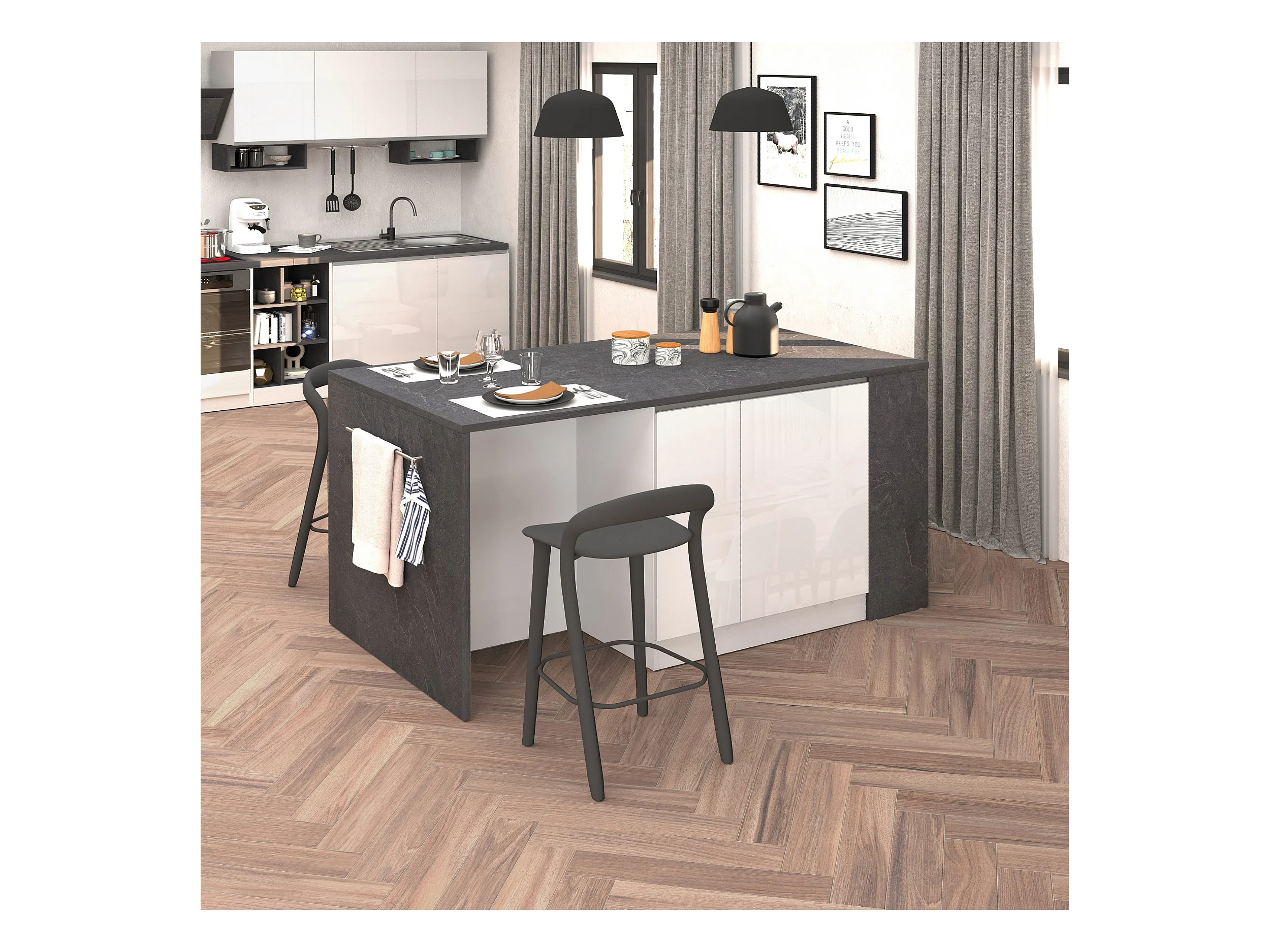 Isola centrale mobile con piano in legno e 3 ante con texture, porta spezie - Bianco