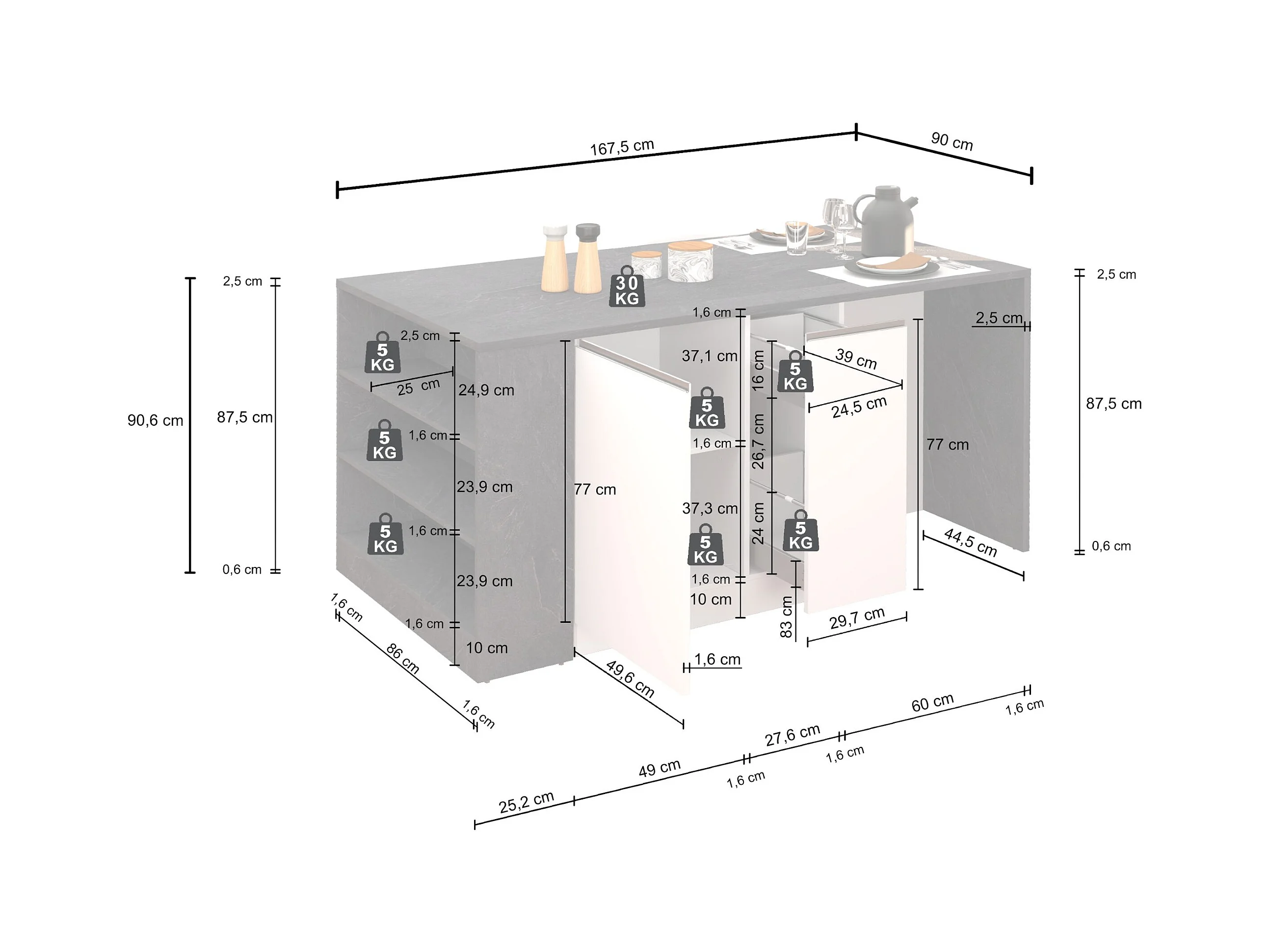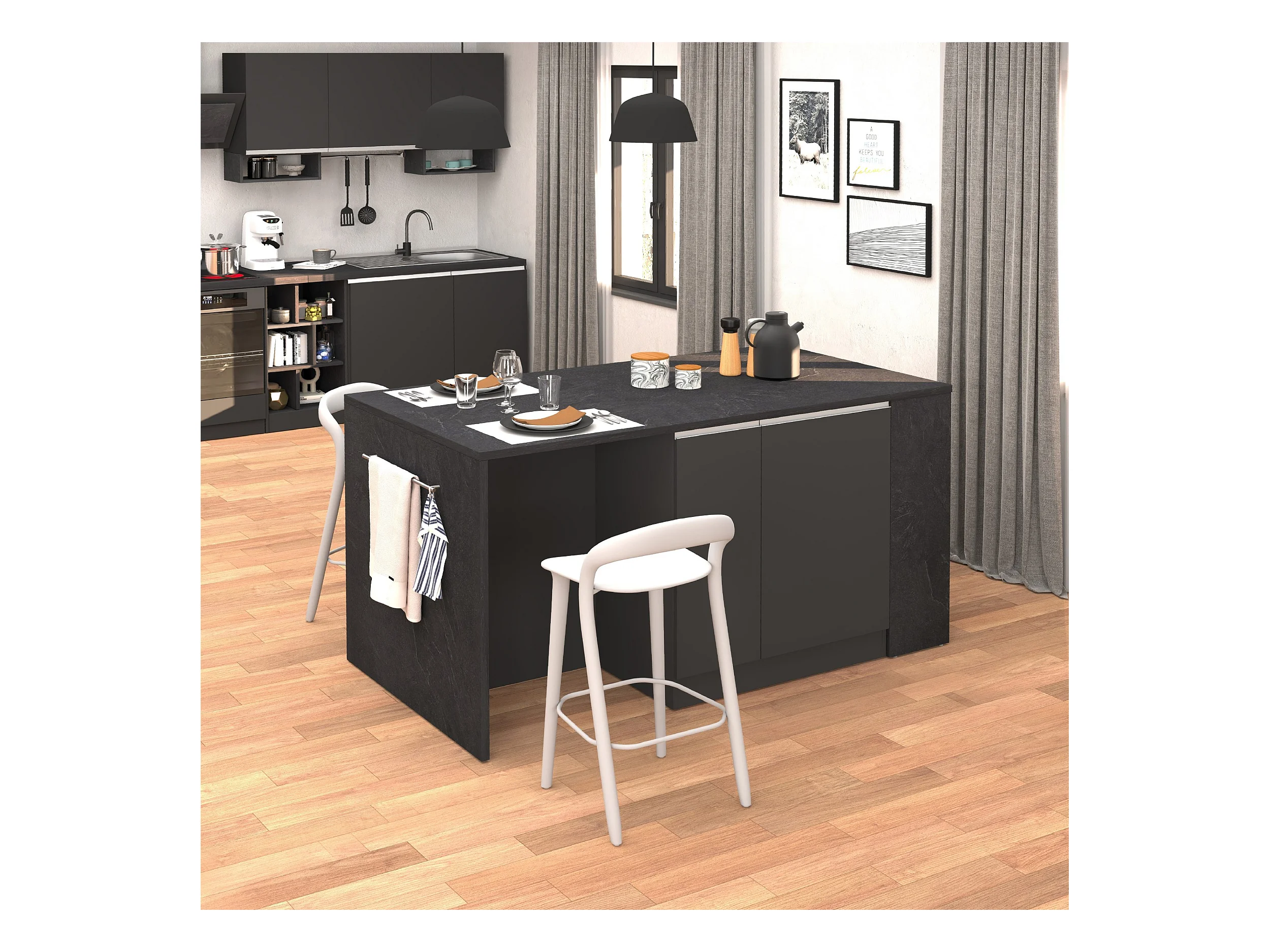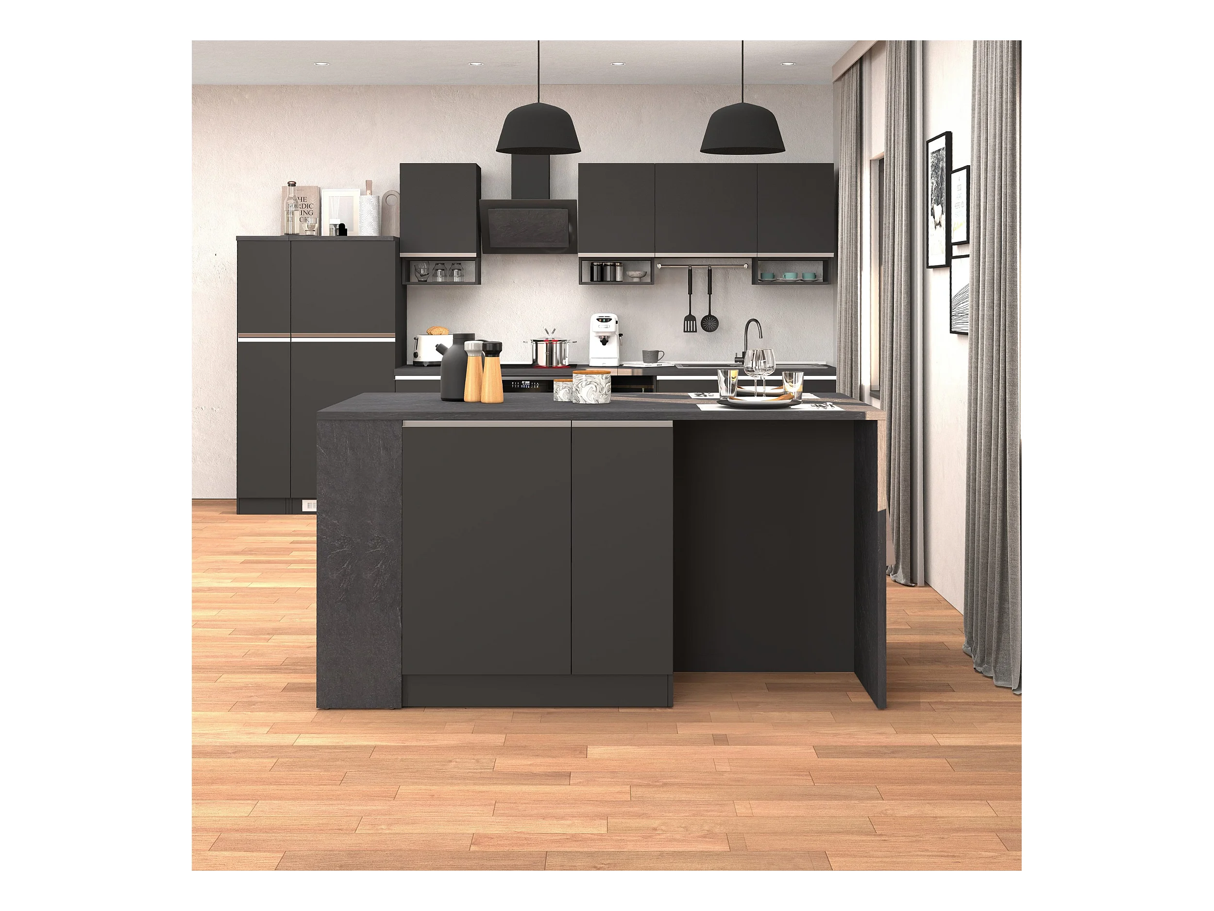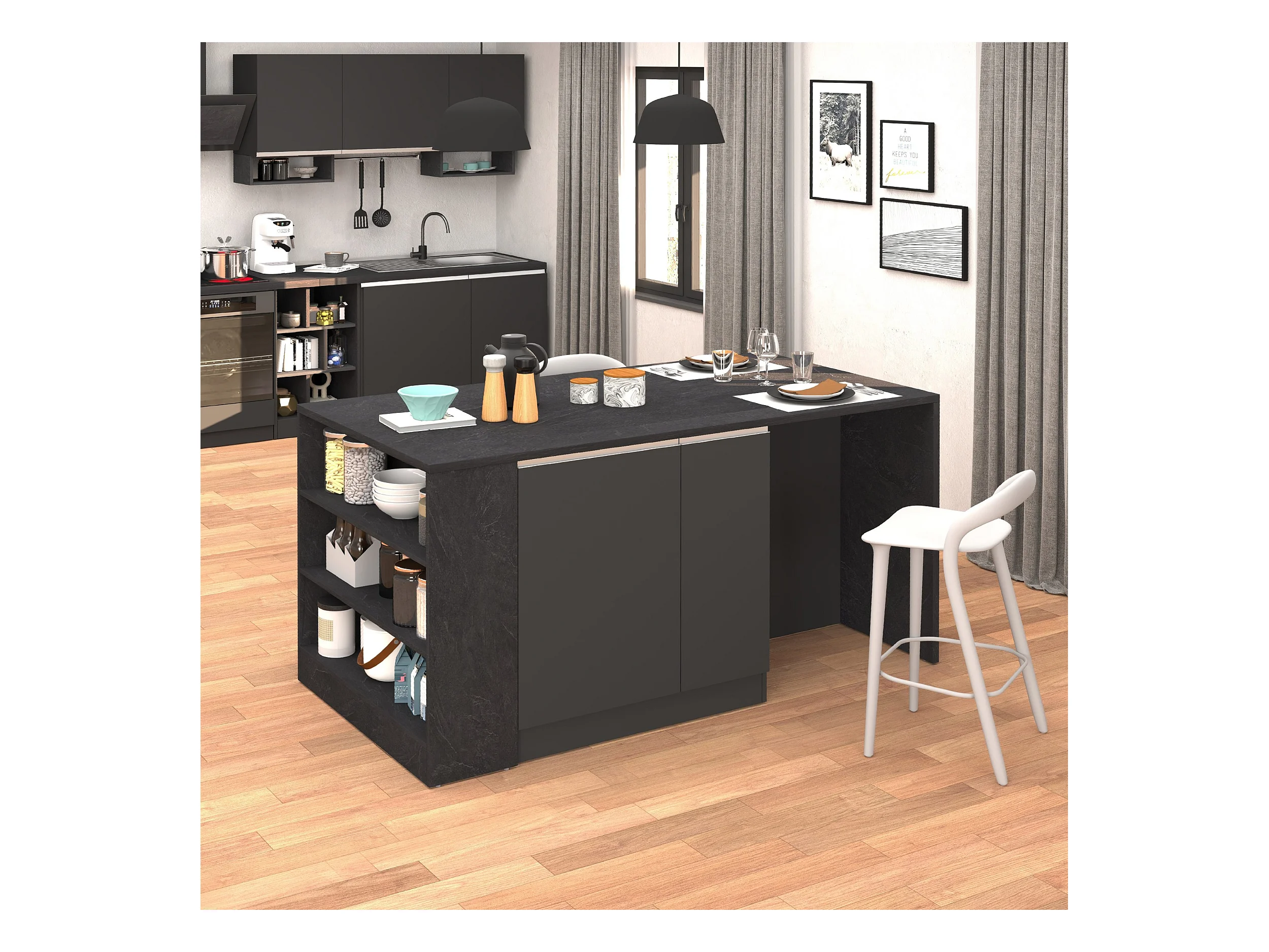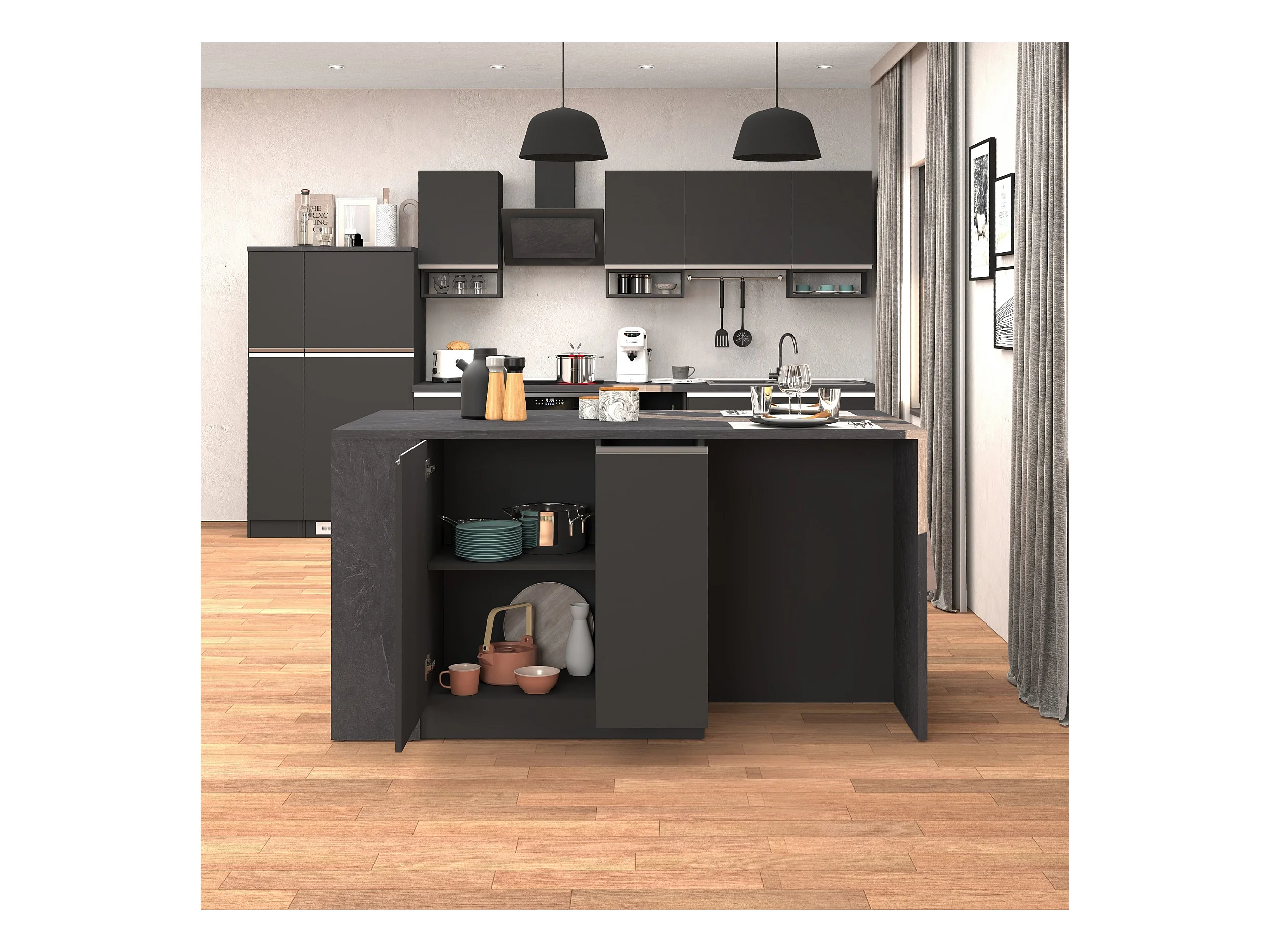 Isola da cucina Sole 2 ante 2 cassetti e 1 scaffale antracite opaco/report 168x90x91 cm