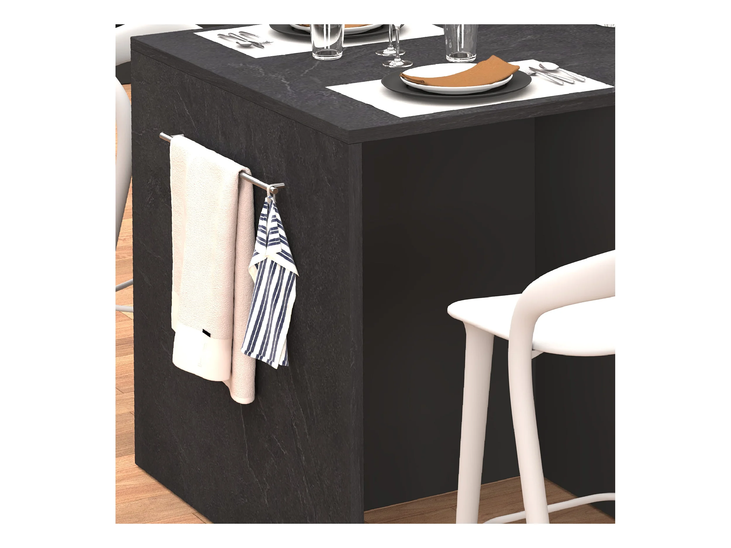 Desserte Grey - Mobiletto da cucina con 2 ante e 2 cassetti - portasciugamani e 5 ruote - piano del tavolo pieghevole