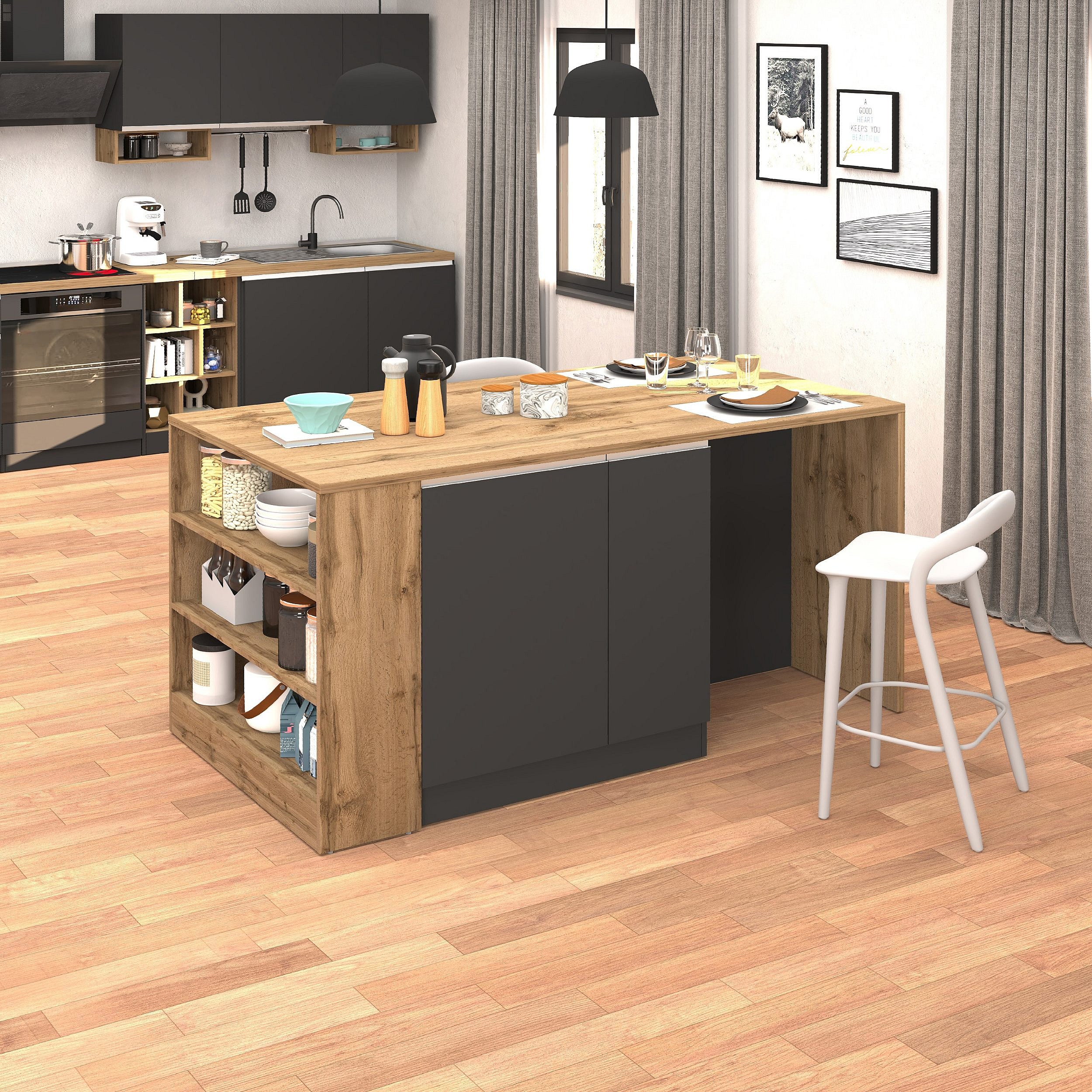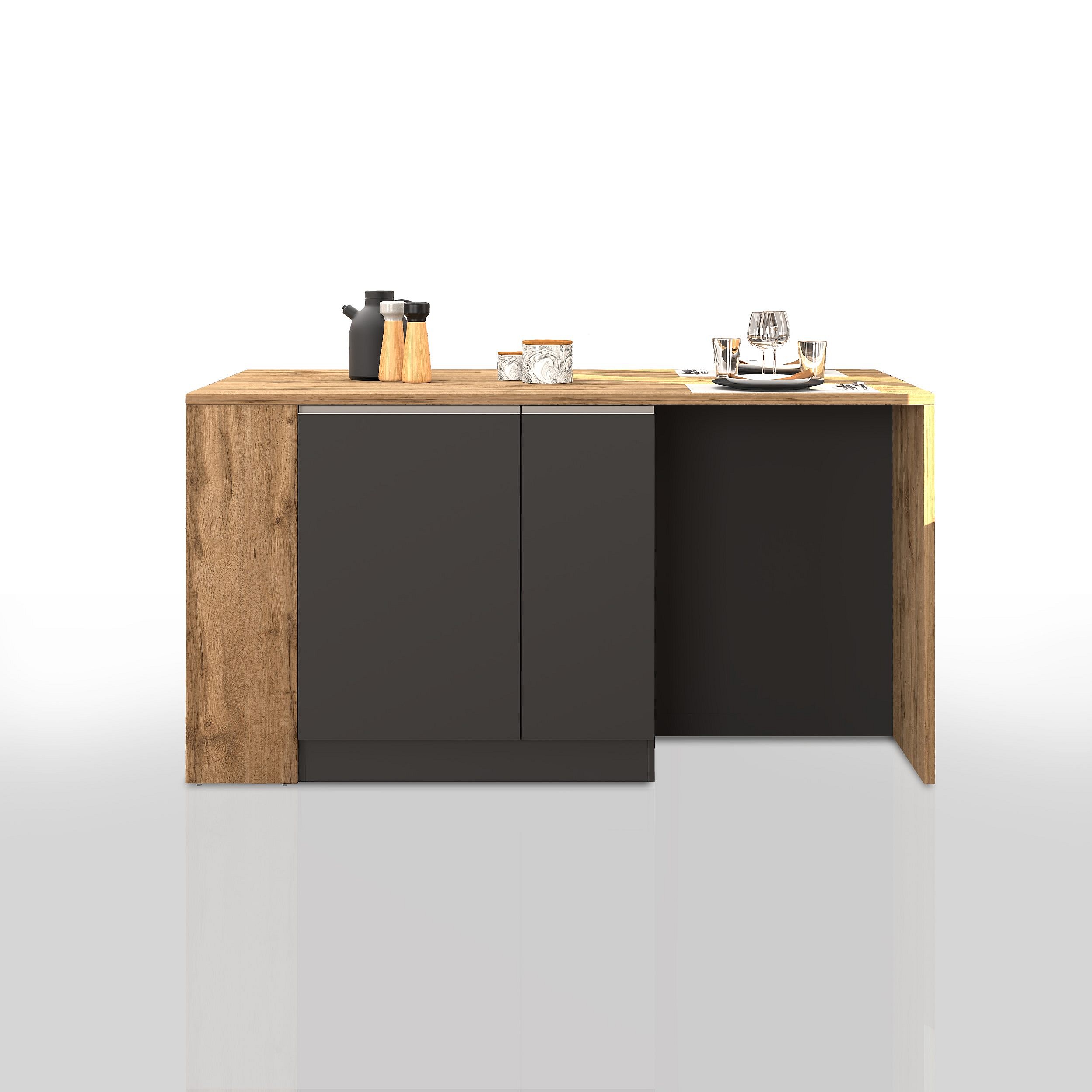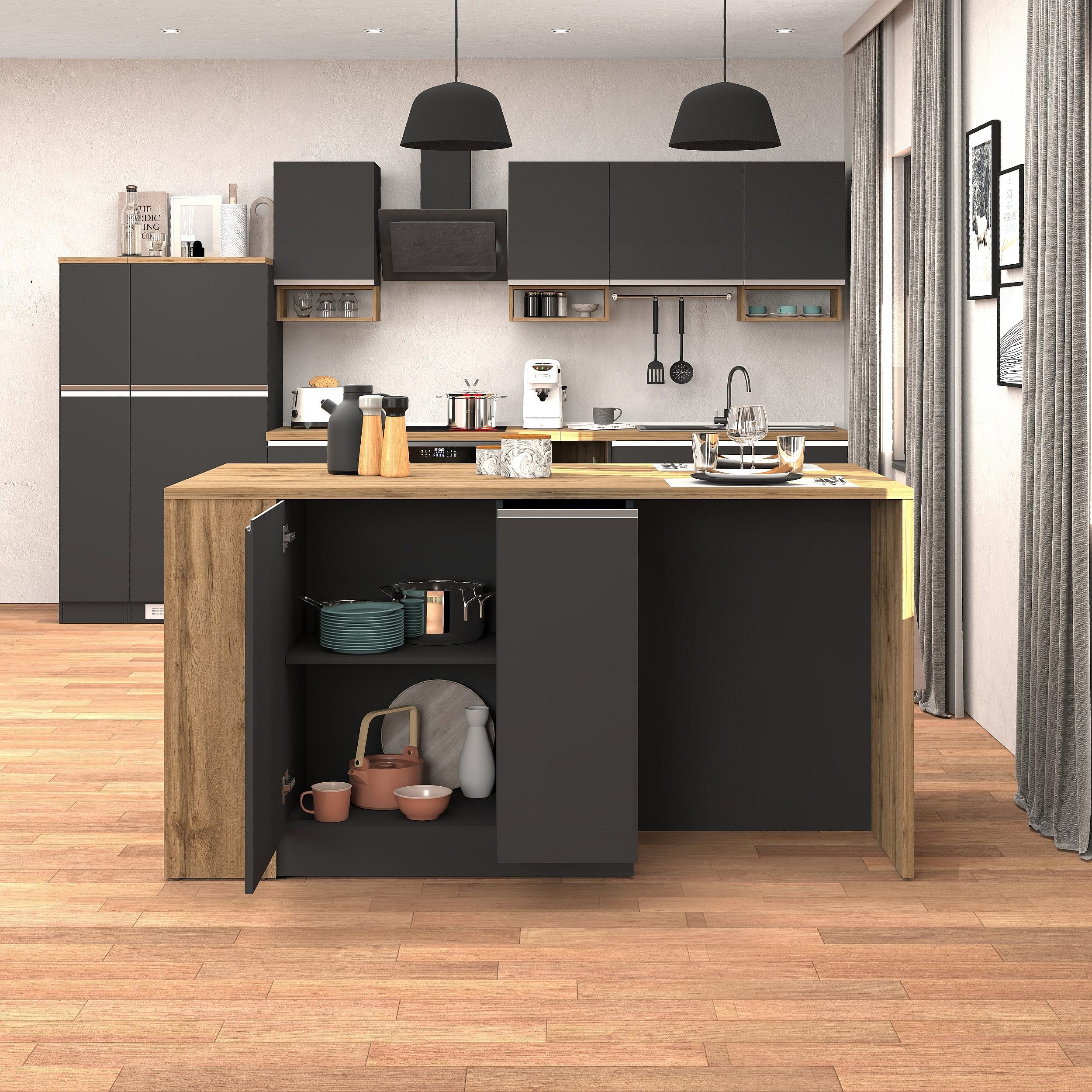 Isola da cucina Sole 2 ante 2 cassetti e 1 scaffale antracite opaco/rovere 168x90x91 cm