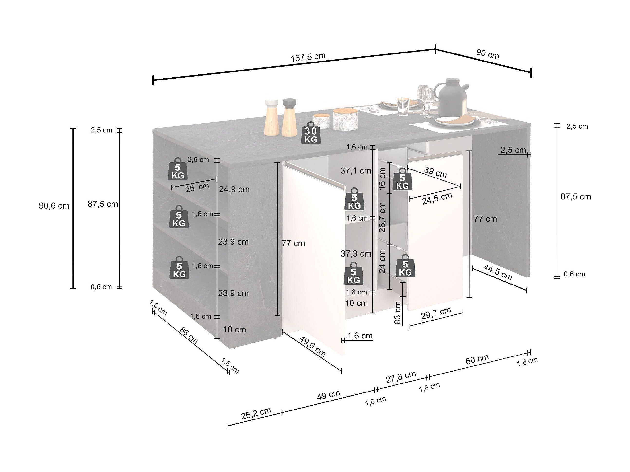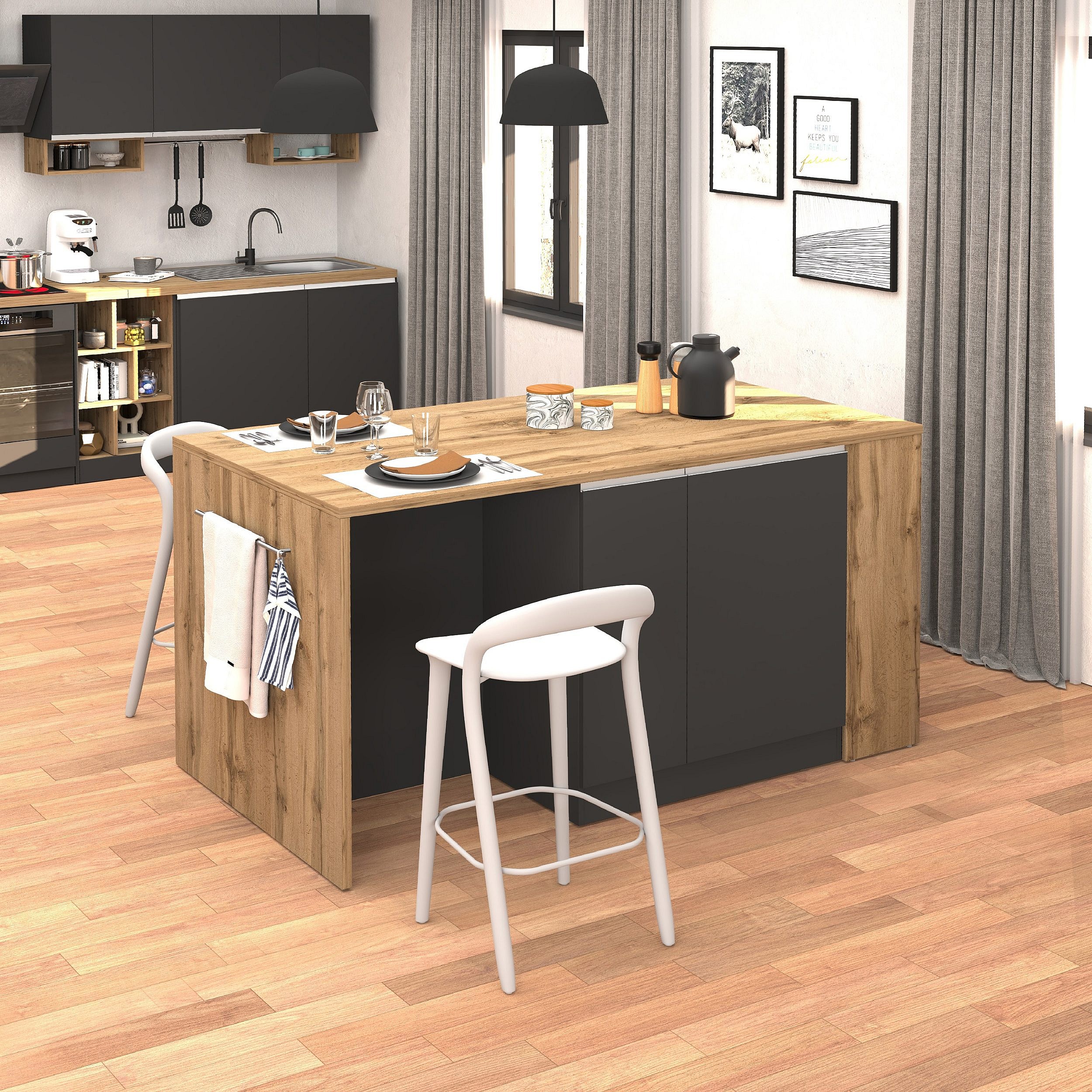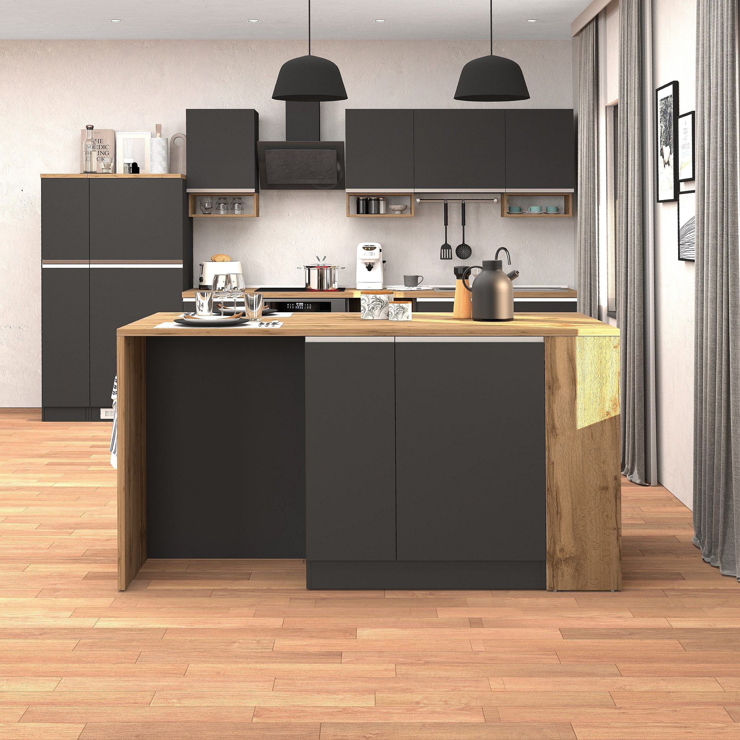 Isola da cucina Sole 2 ante 2 cassetti e 1 scaffale antracite opaco/rovere 168x90x91 cm