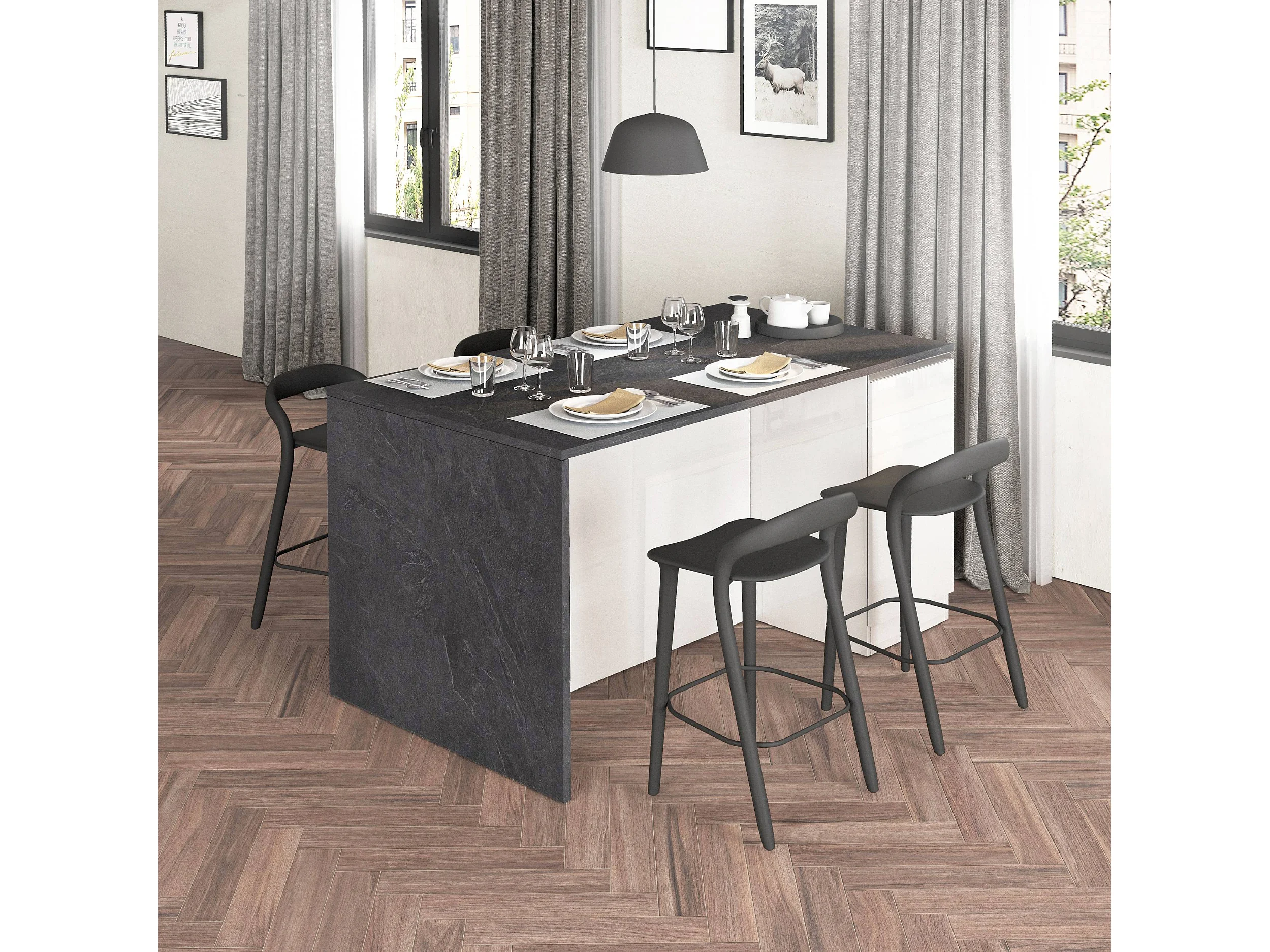 Isola da cucina Sole a 4 ante e 4 cassetti bianco lucido e report 200x90x90 cm