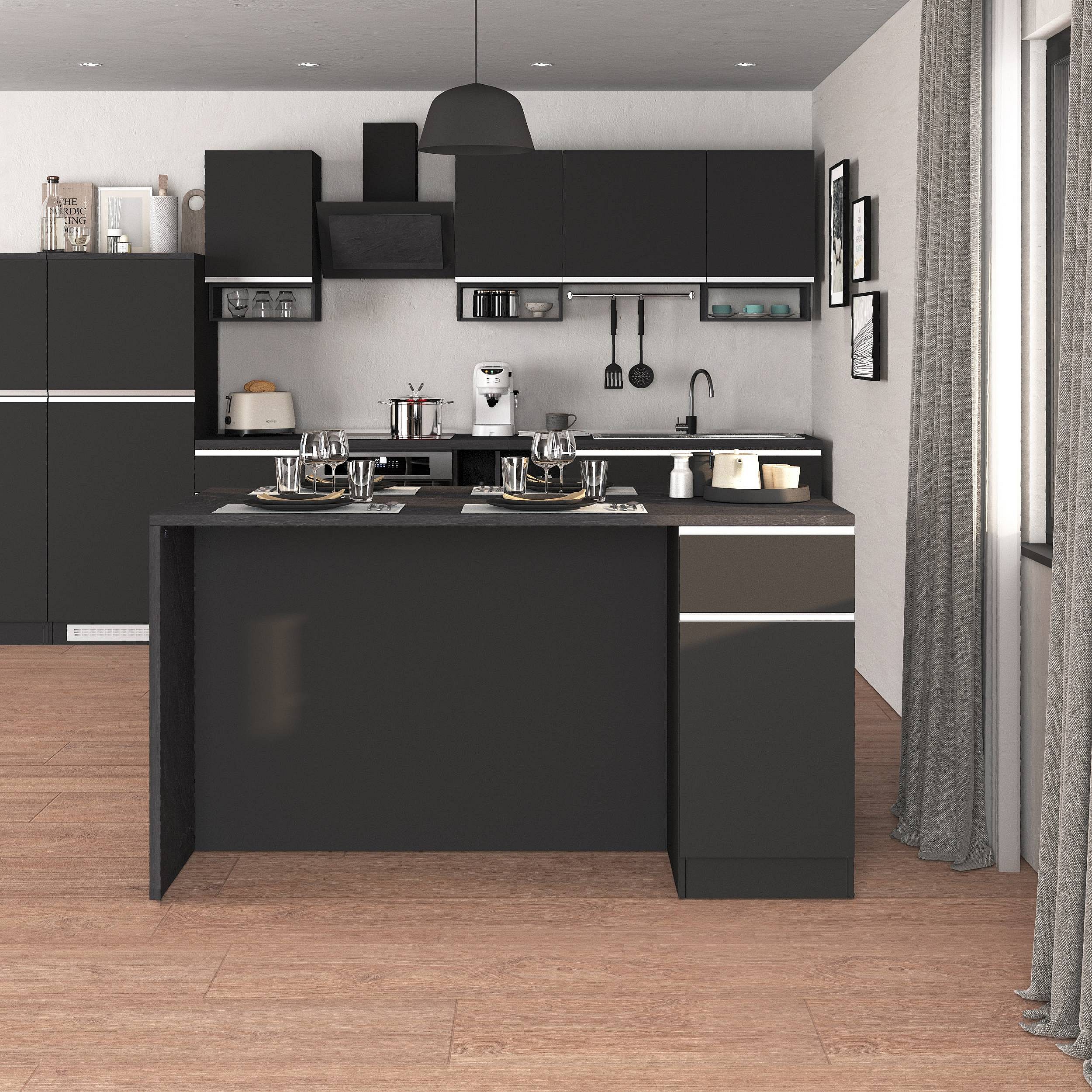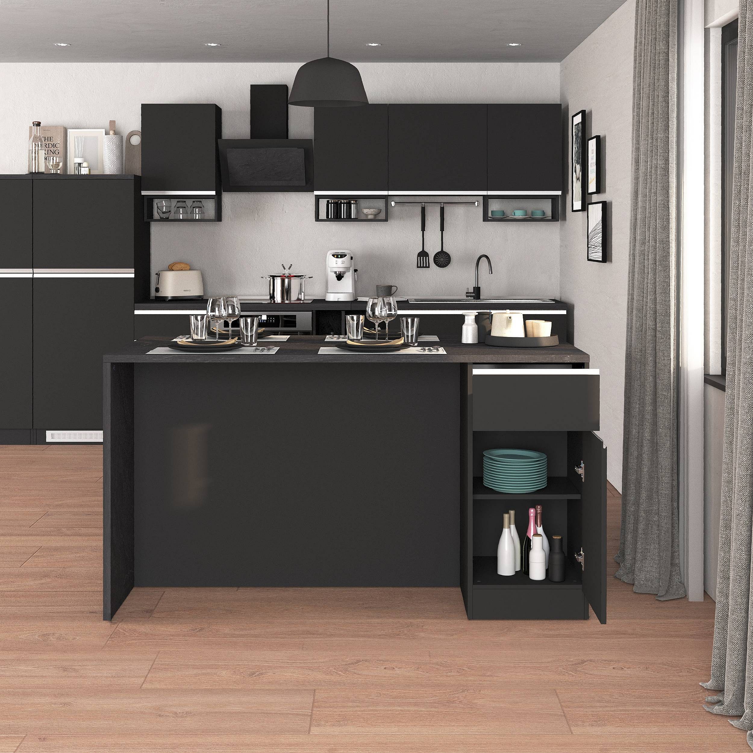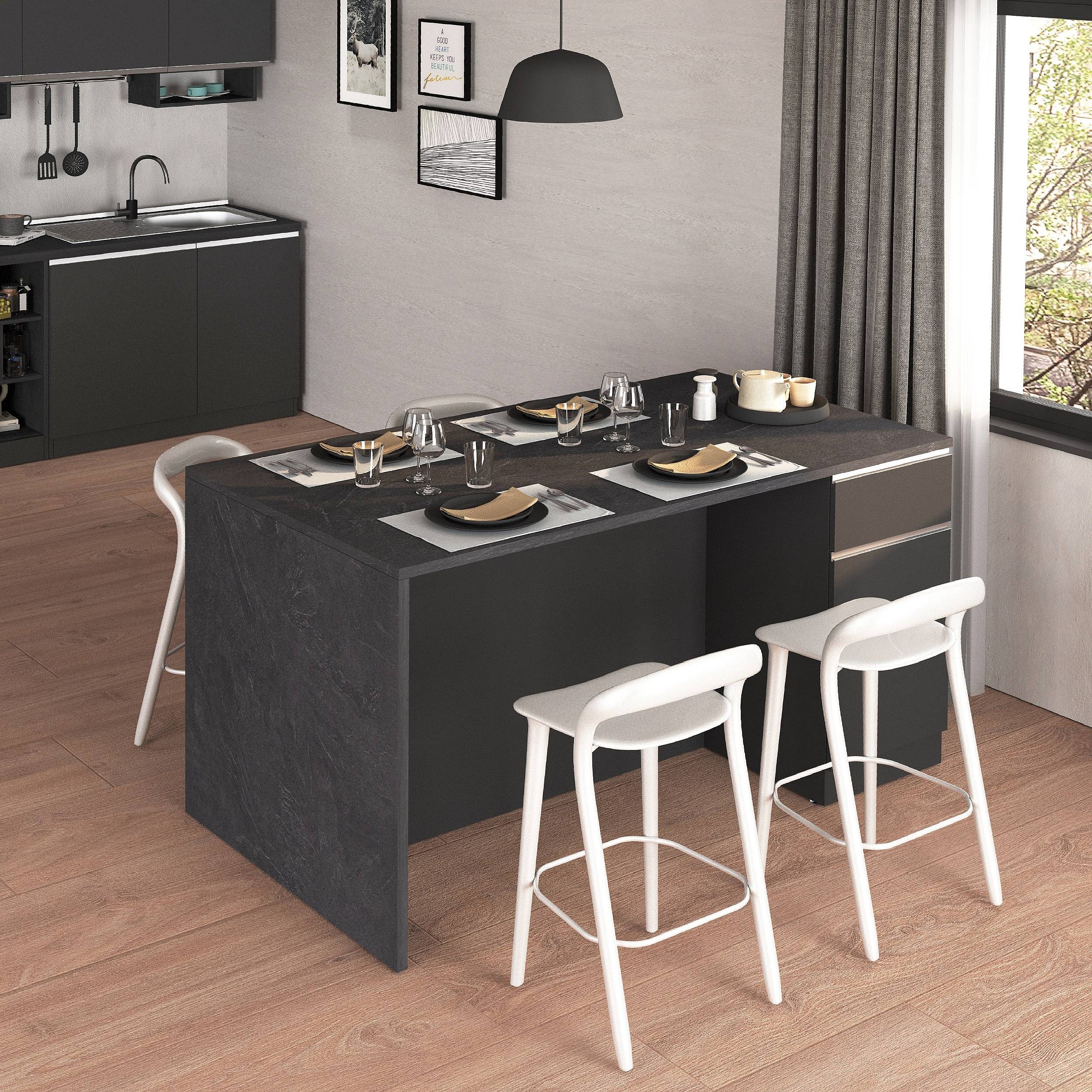 Isola da cucina Sole a 2 ante e 2 cassetti antracite opaco/report 160x90x90 cm