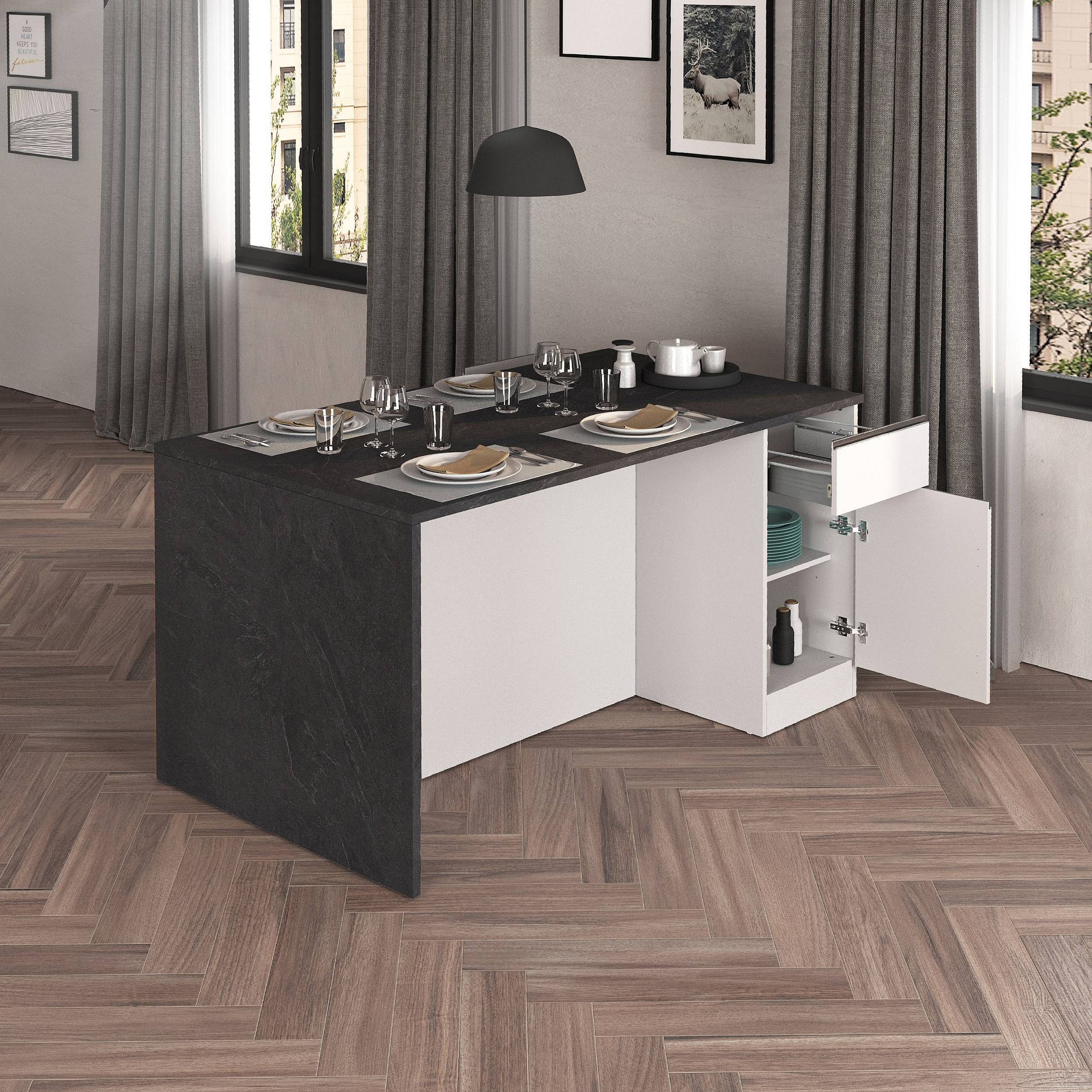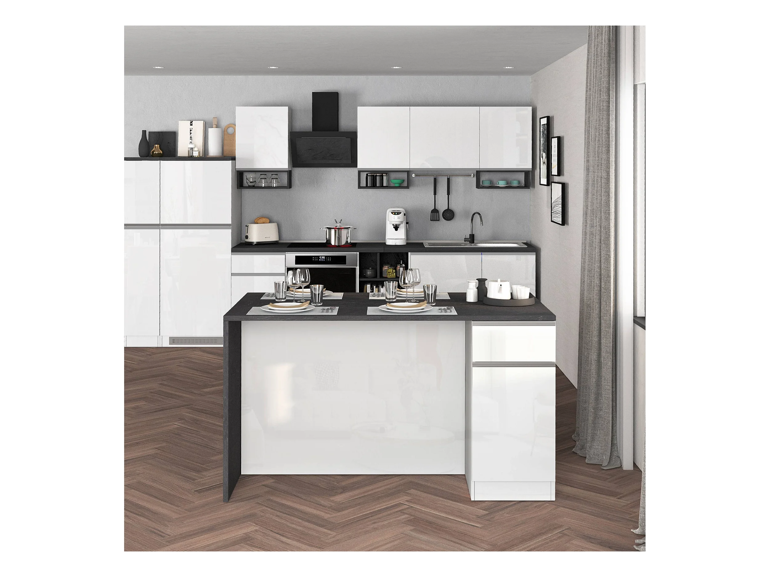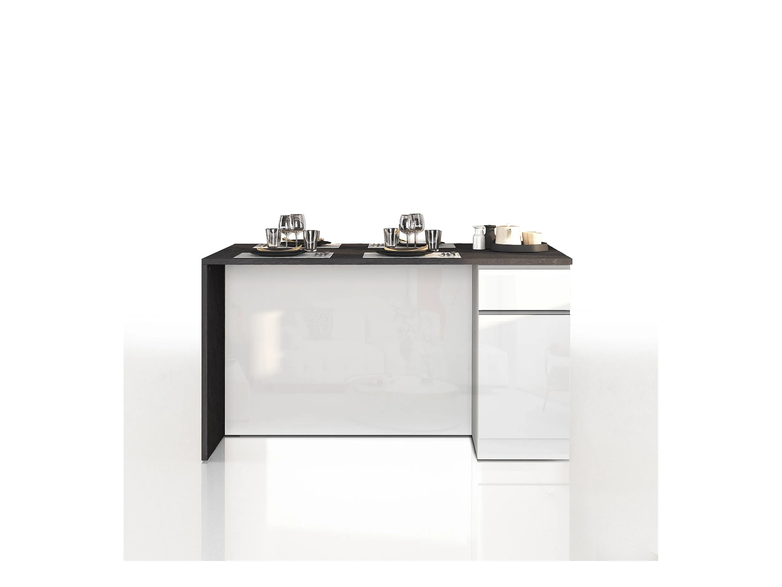 Isola da cucina Sole a 2 ante e 2 cassetti bianco lucido e report 160x90x90 cm