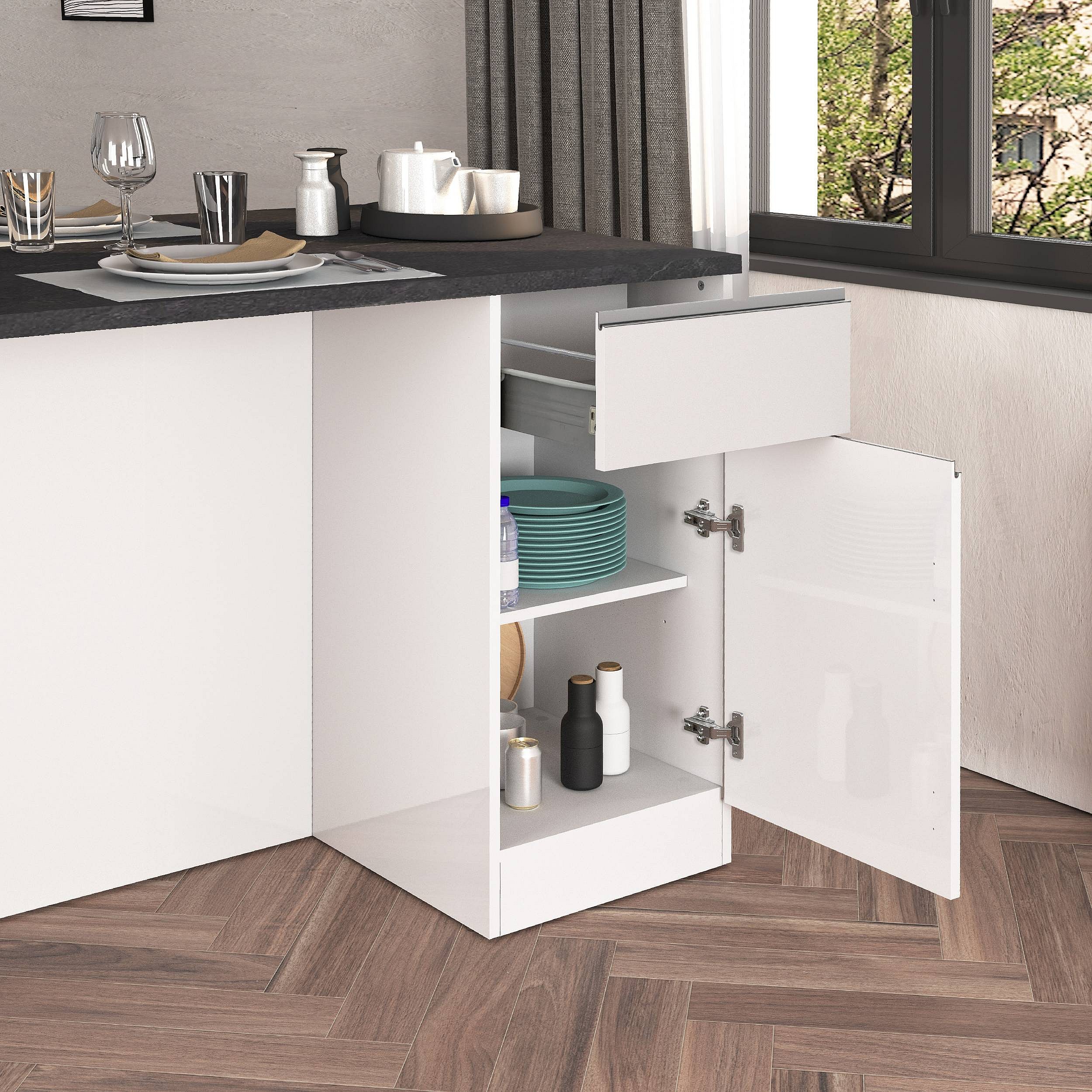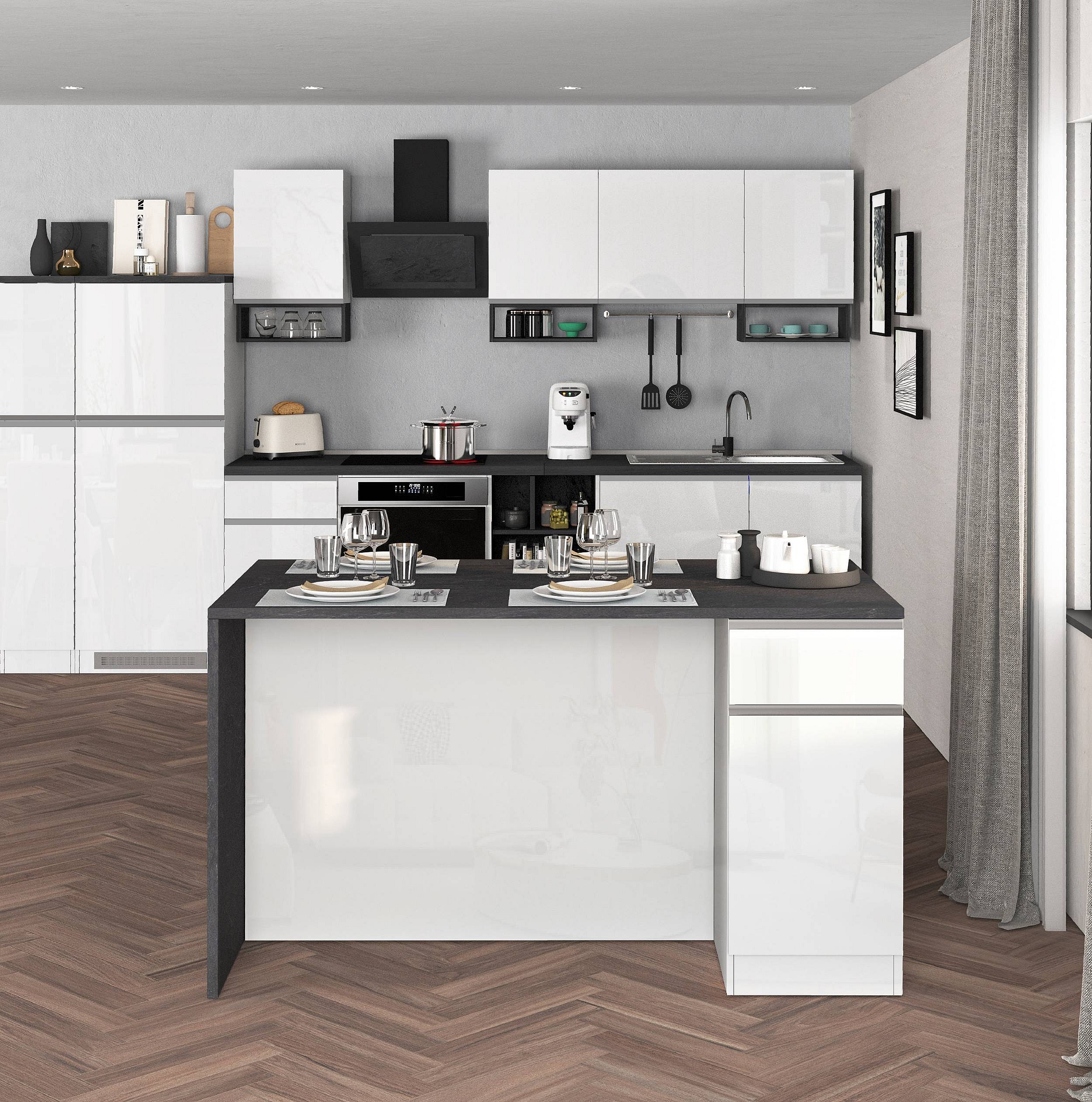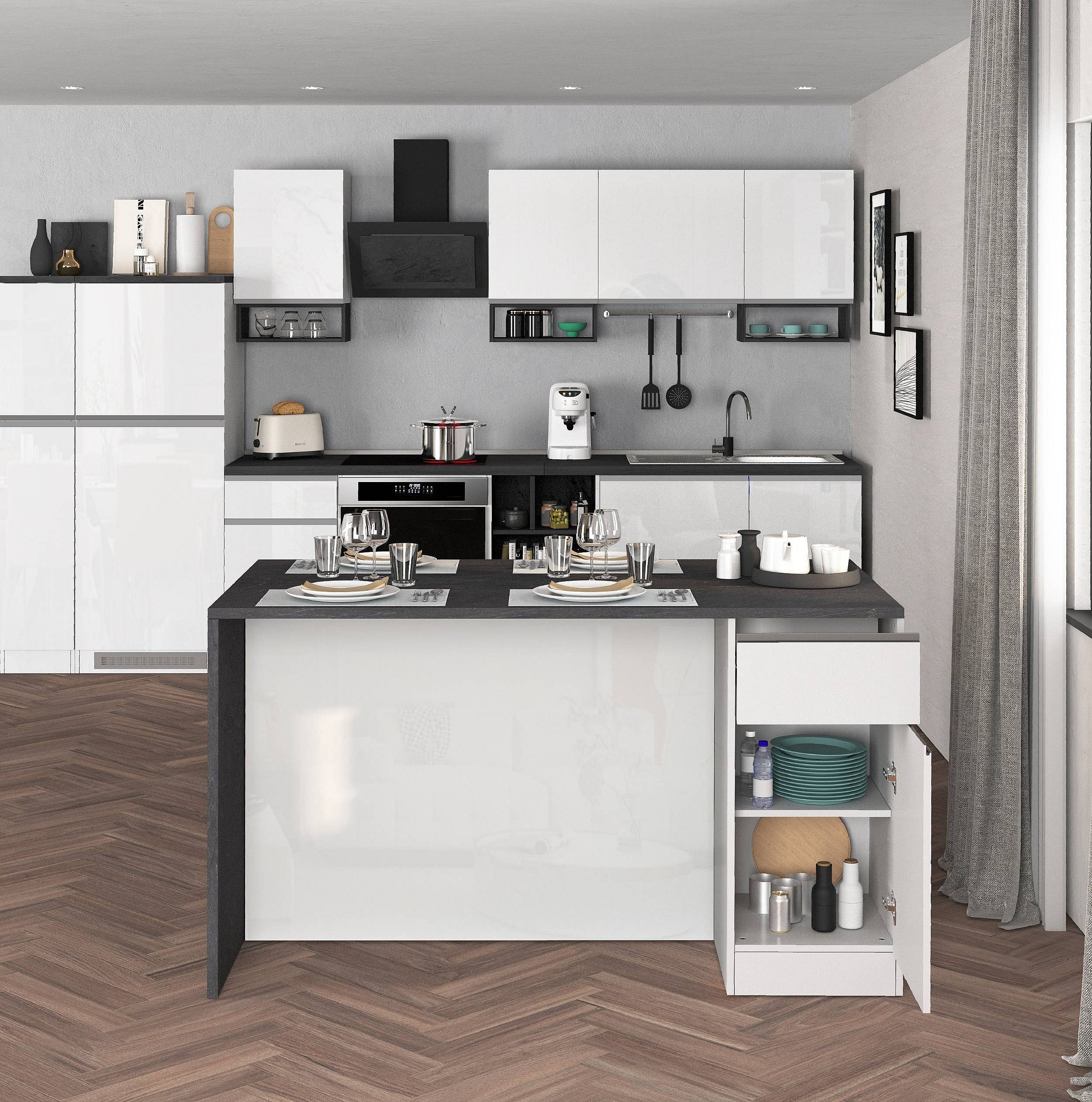 Isola da cucina Sole a 2 ante e 2 cassetti bianco lucido e report 160x90x90 cm