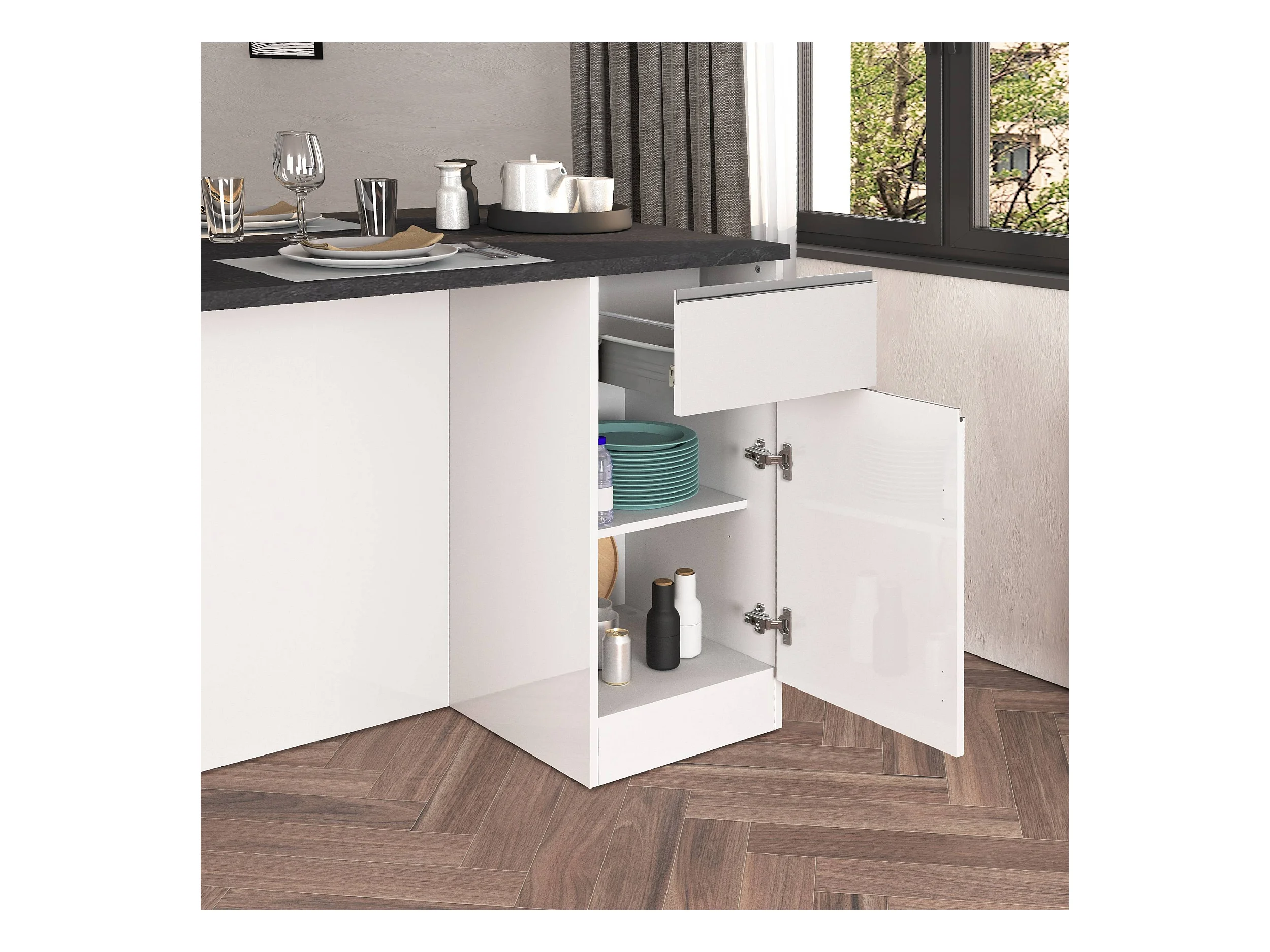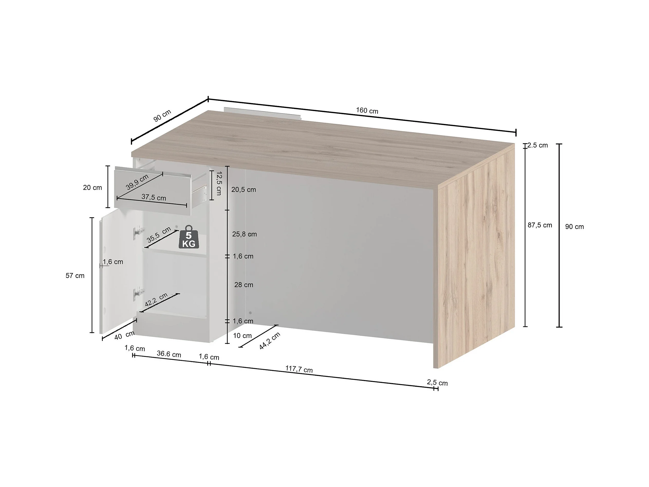 Isola da cucina Sole con 1 anta 2 cassetti e 6 vani bianco lucido/report 153x90x91 cm