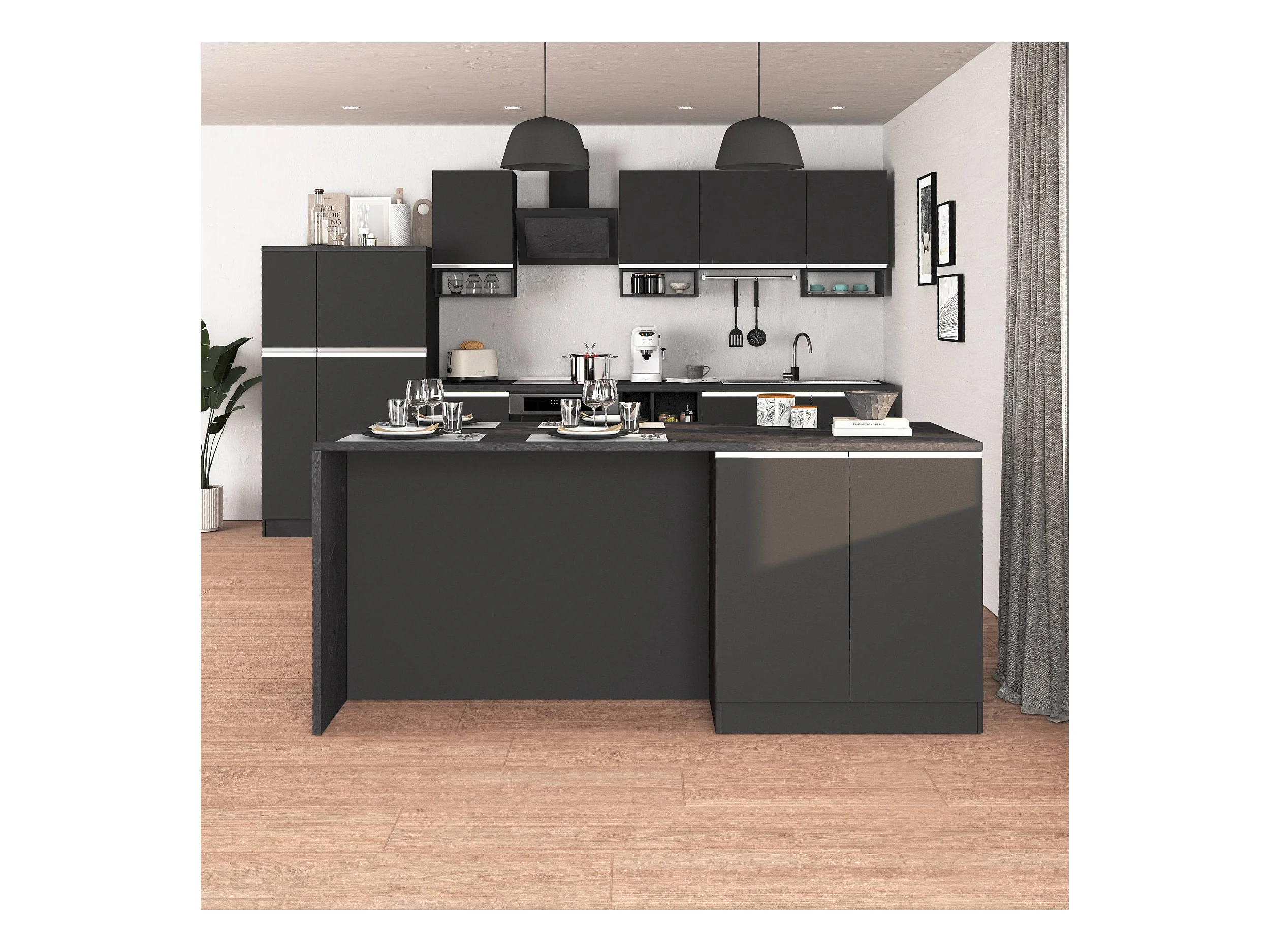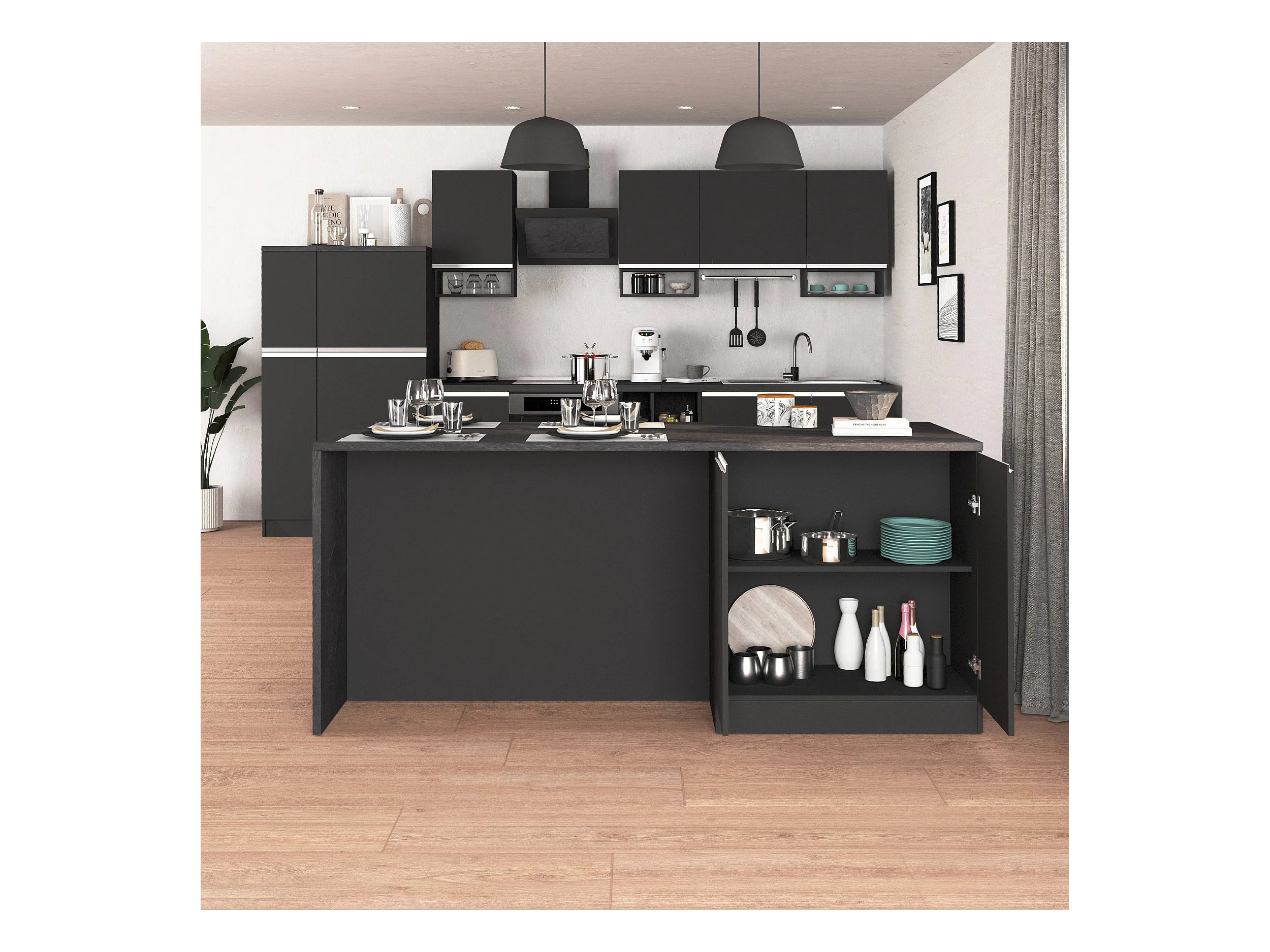 Isola da cucina Sole 2 ante 2 cassetti e 1 scaffale antracite opaco/report 168x90x91 cm