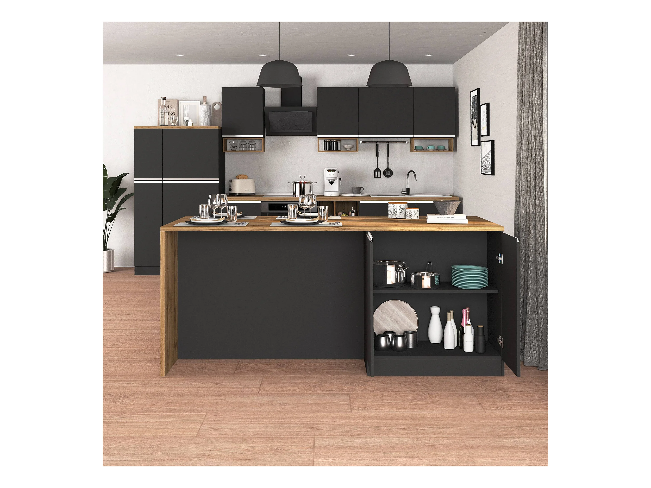 Isola da cucina Sole a 2 ante antracite opaco/rovere 160x90x90 cm