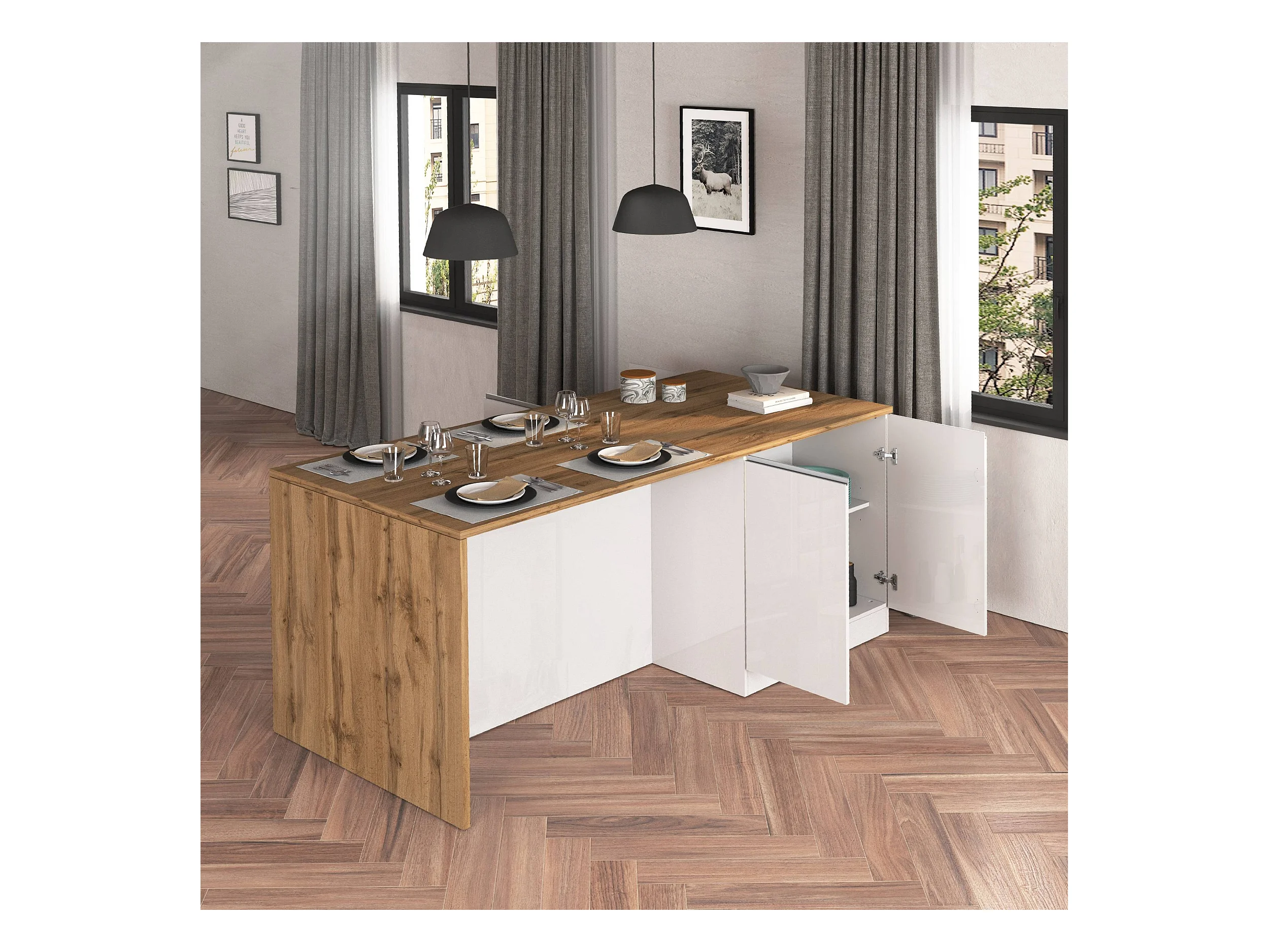 Isola da cucina Sole a 4 ante bianco lucido e rovere 200x90x90 cm