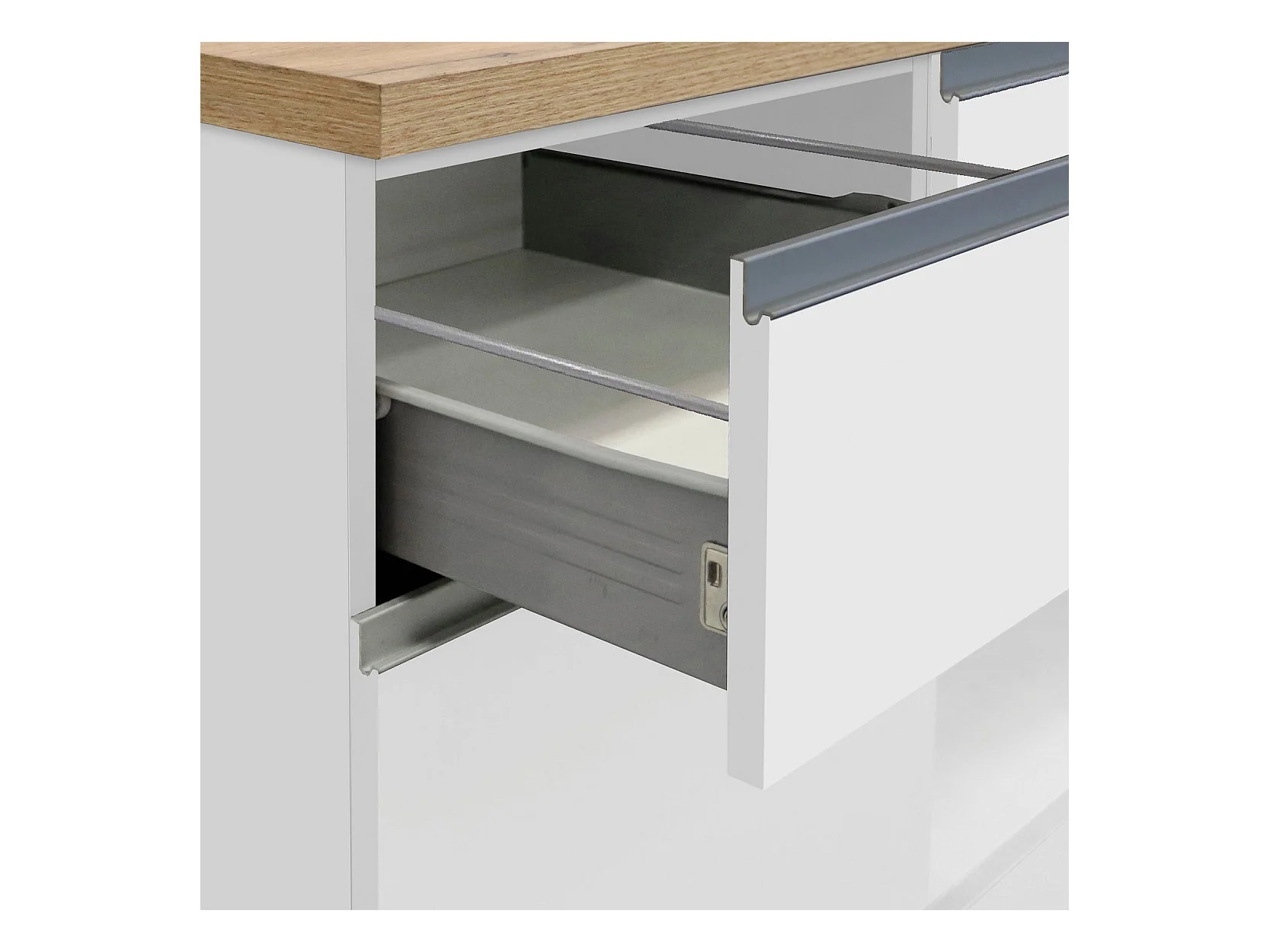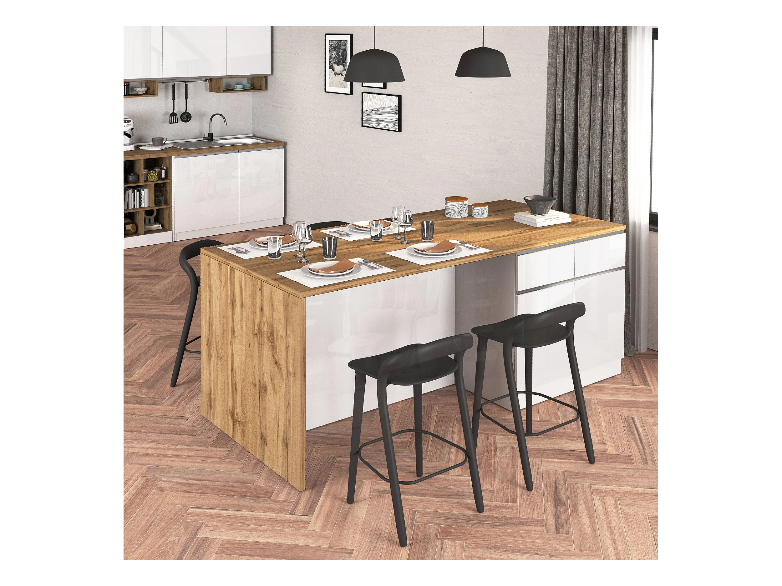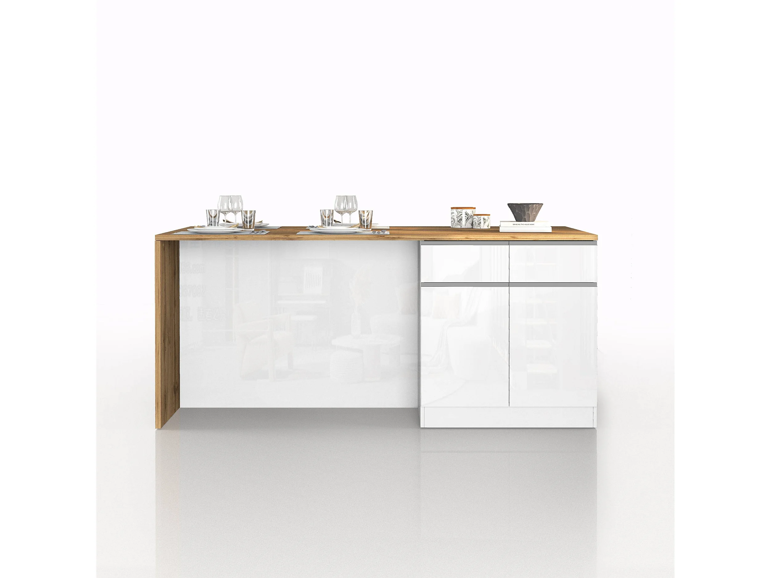 Isola da cucina Sole a 2 ante e 2 cassetti bianco lucido e rovere 160x90x90 cm
