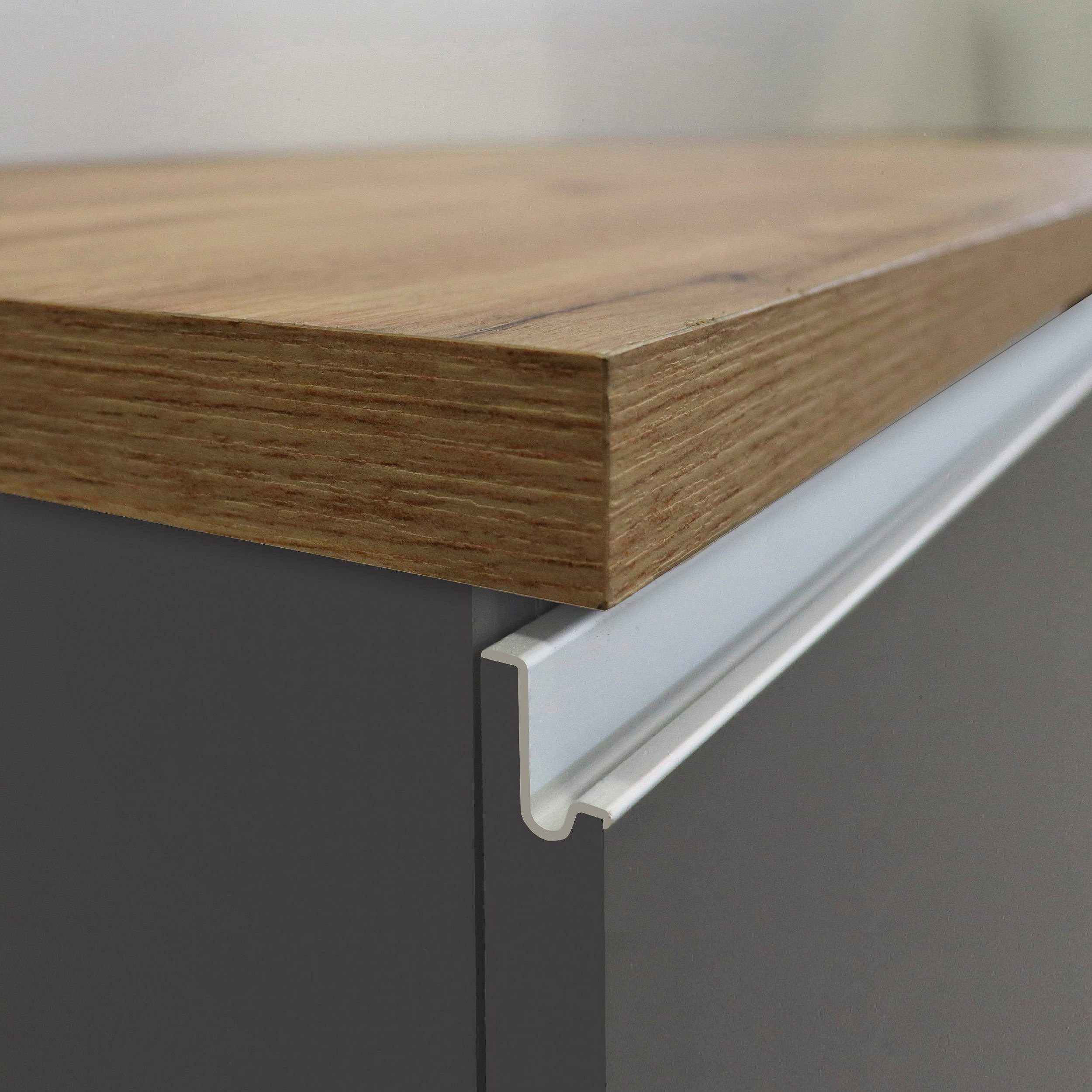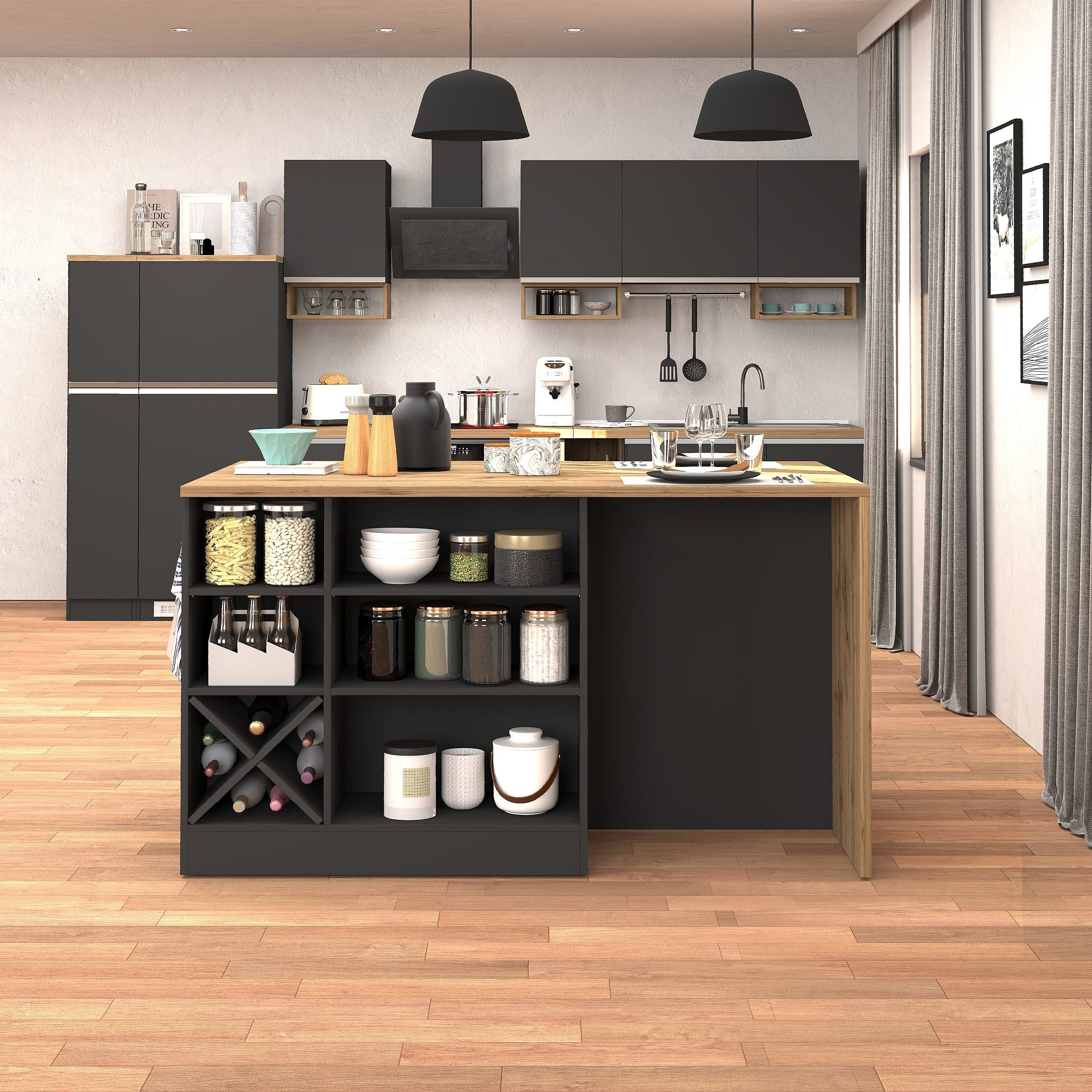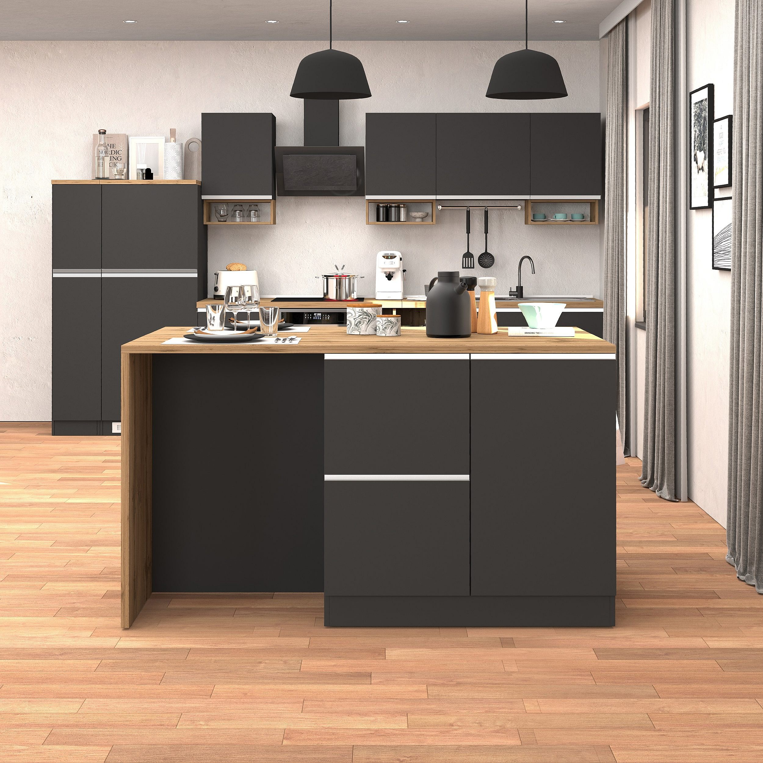 Isola da cucina Sole con 1 anta 2 cassetti e 6 vani antracite opaco/rovere 153x90x91 cm