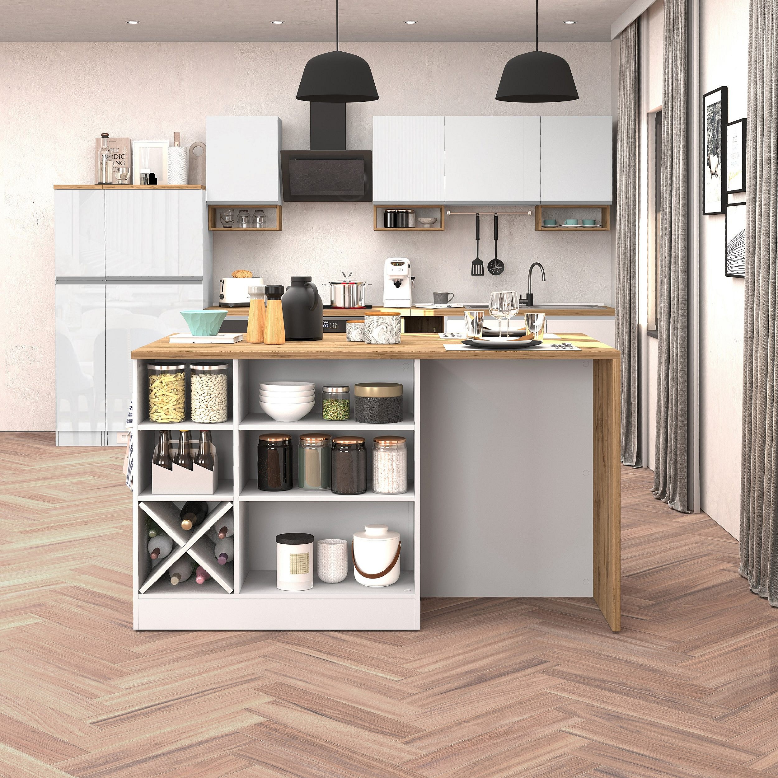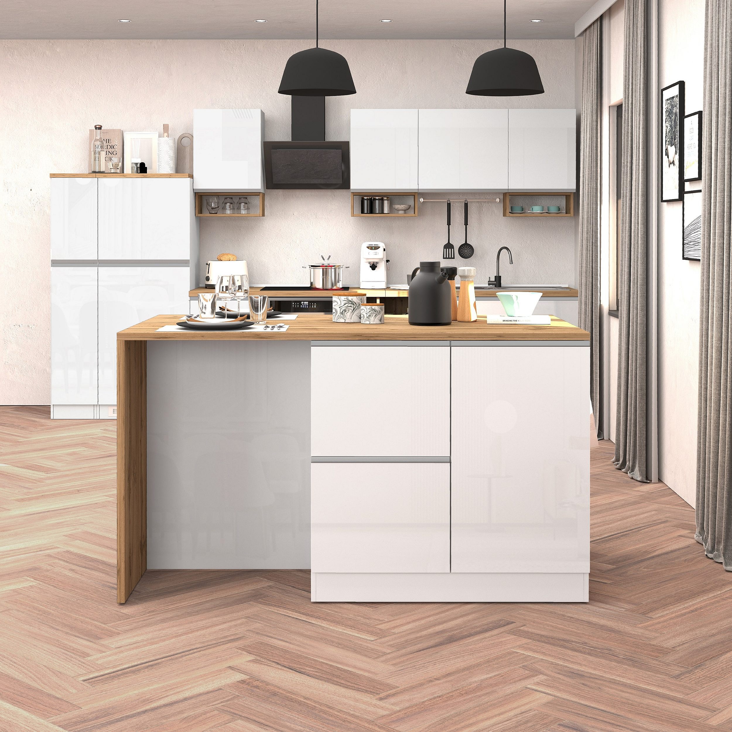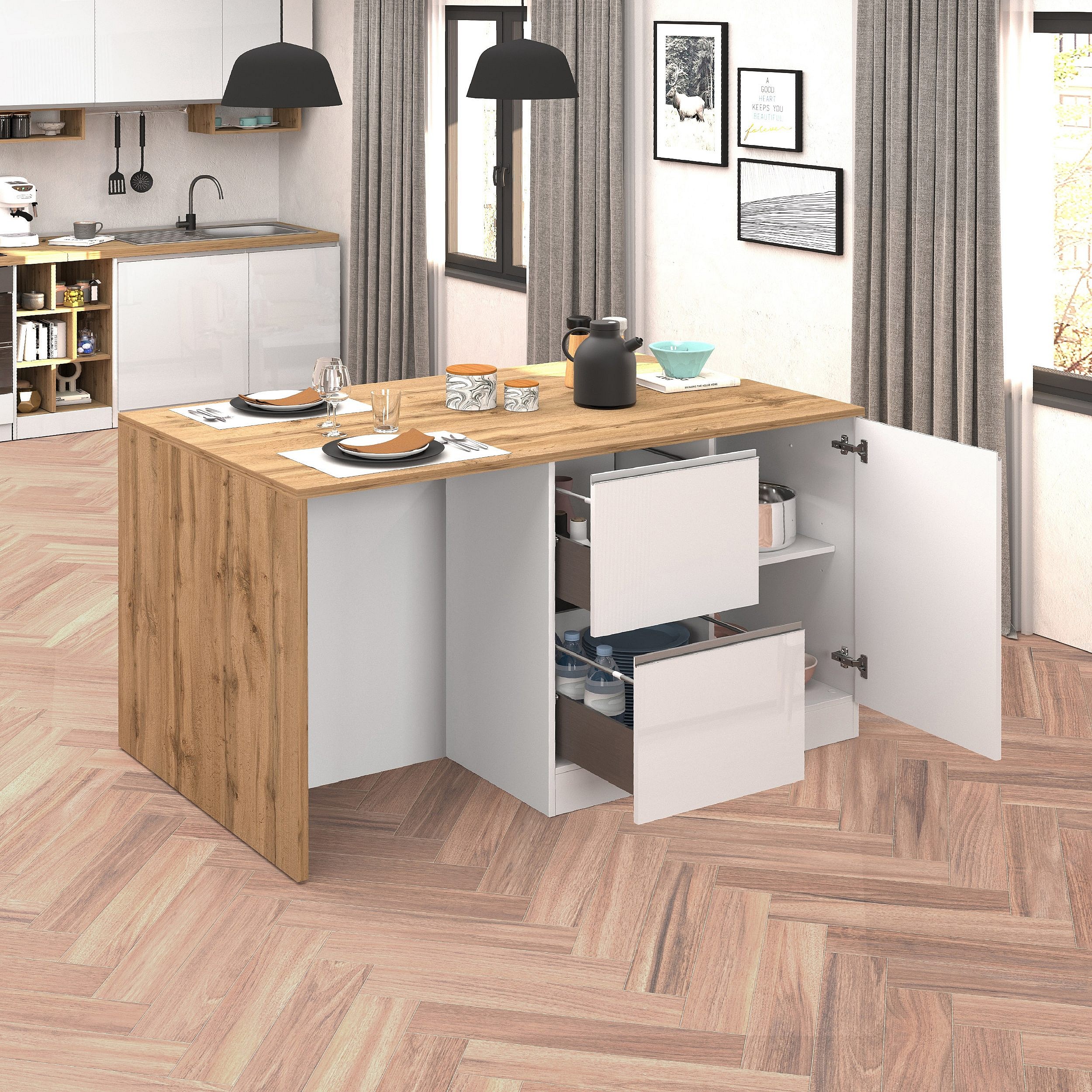 Isola da cucina Sole con 1 anta 2 cassetti e 6 vani bianco lucido/rovere 153x90x91 cm