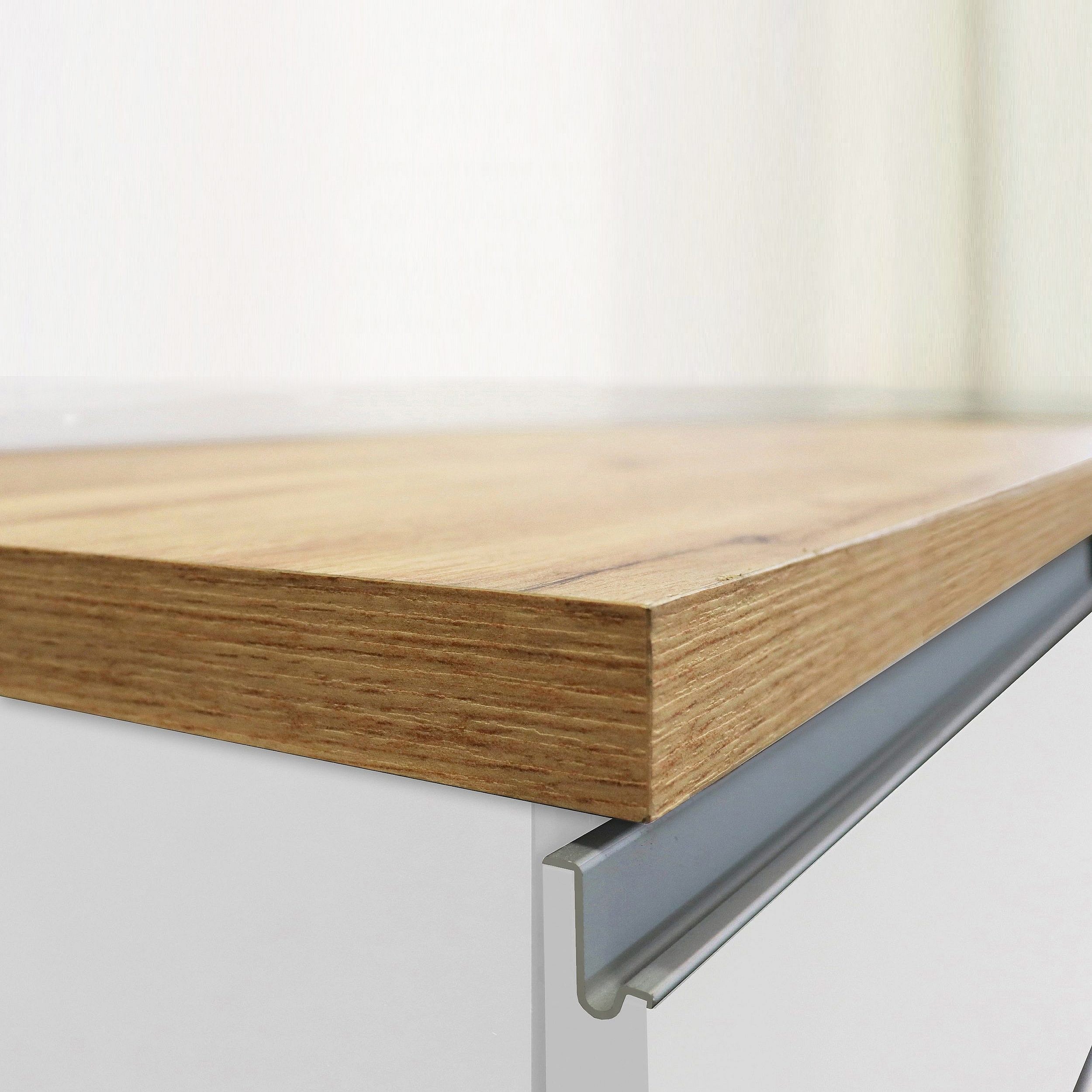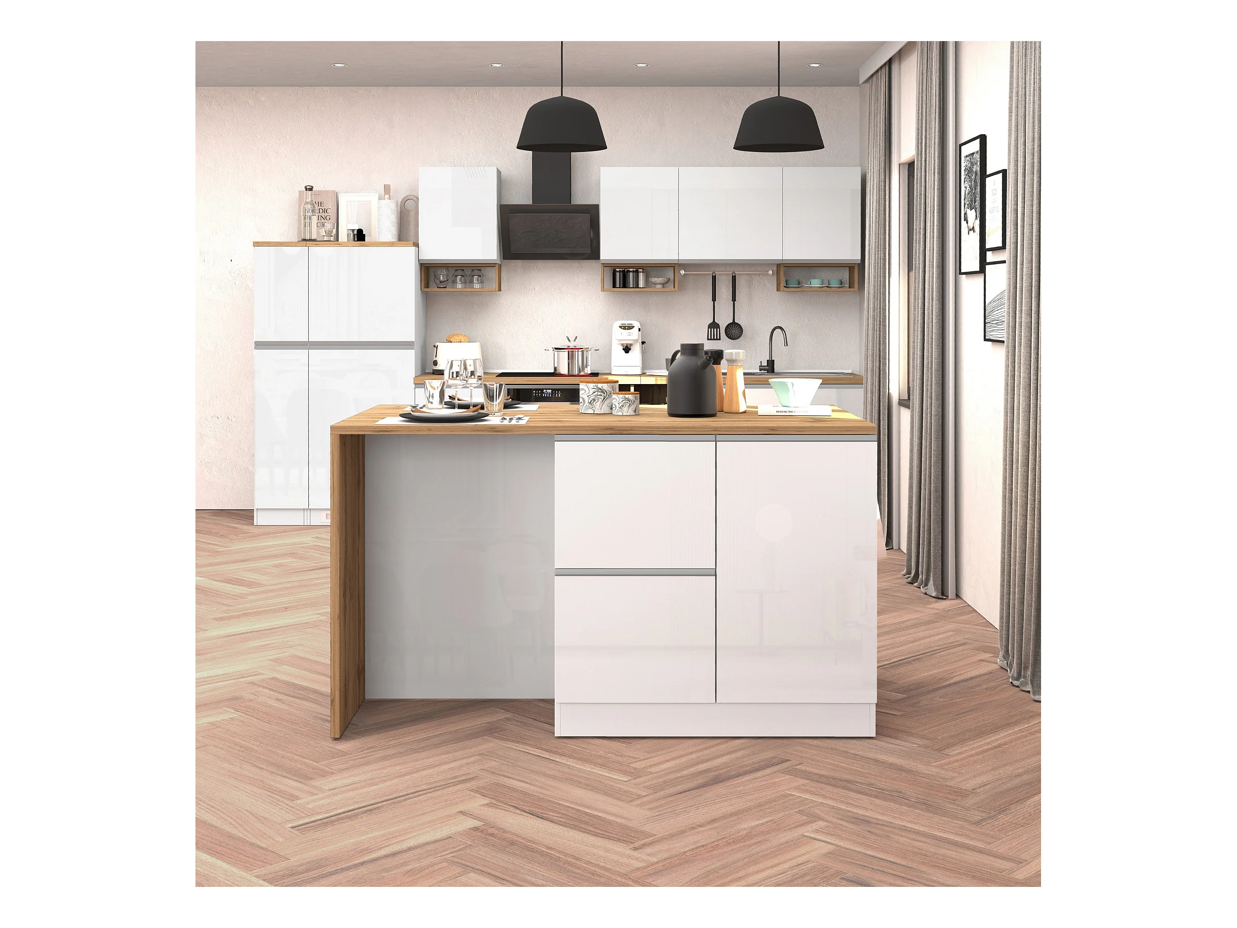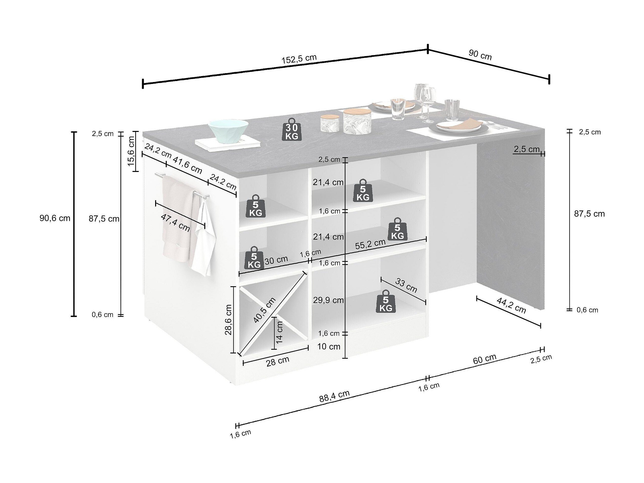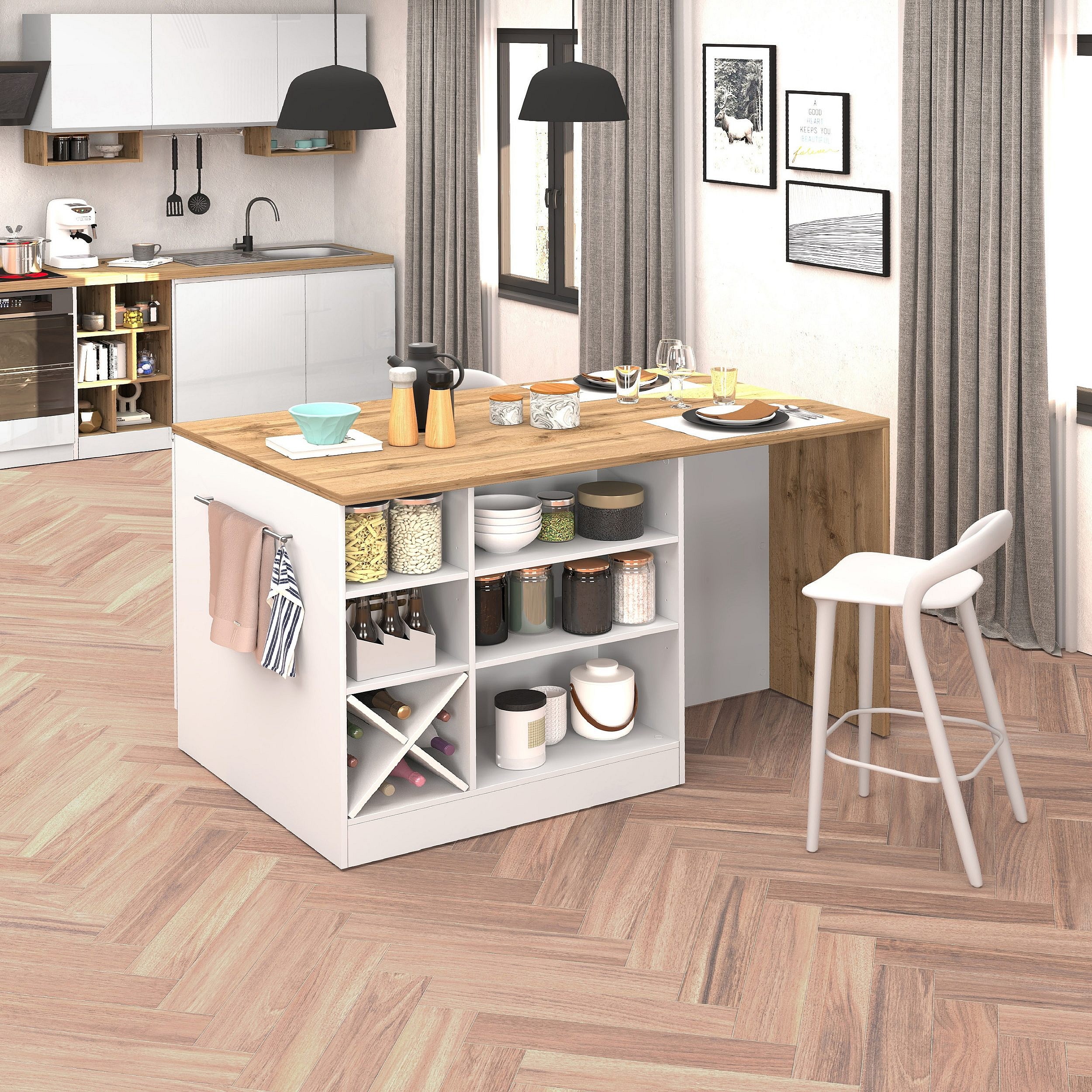 Isola da cucina Sole con 1 anta 2 cassetti e 6 vani bianco lucido/rovere 153x90x91 cm