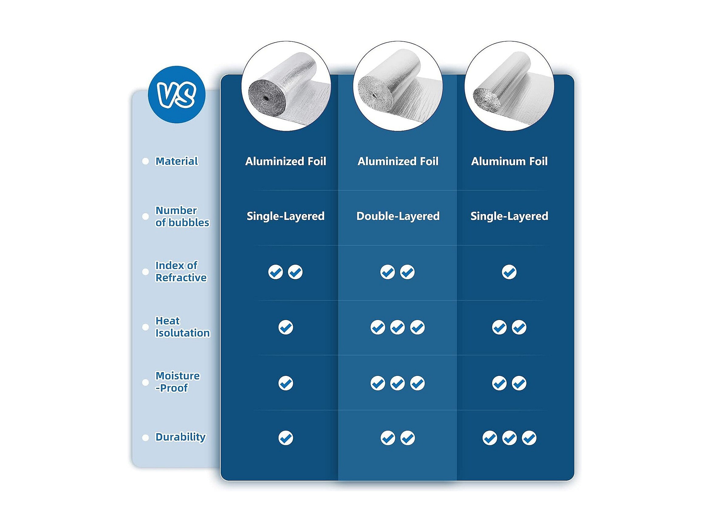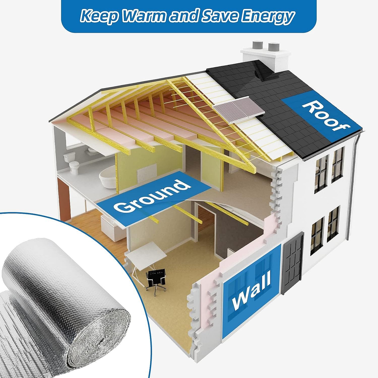 Rotolo Isolante Riflettente Doppio SucceBuy Pellicola a Bolle d'Aria Radiante 122 CM x 305 CM