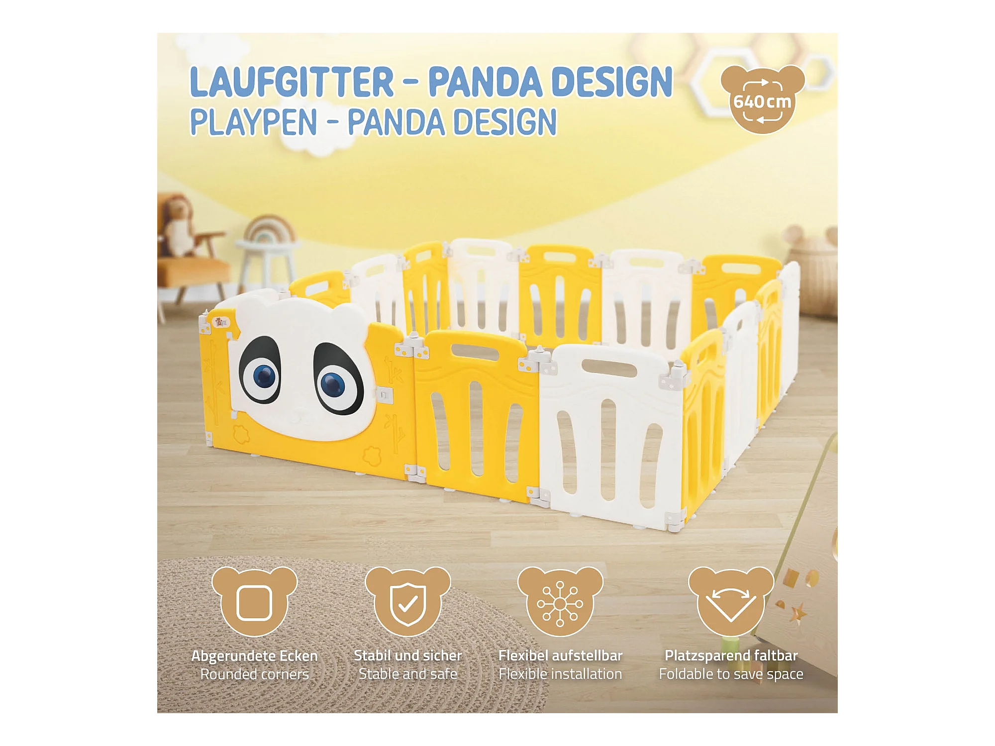 Joyz Box pieghevole per bambini 160x160 cm con design panda bianco giallo porta orologio didattico recinto in plastica per interni ed esterni neonati