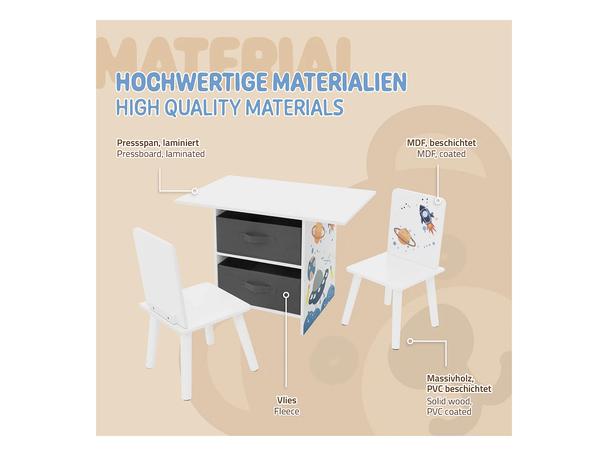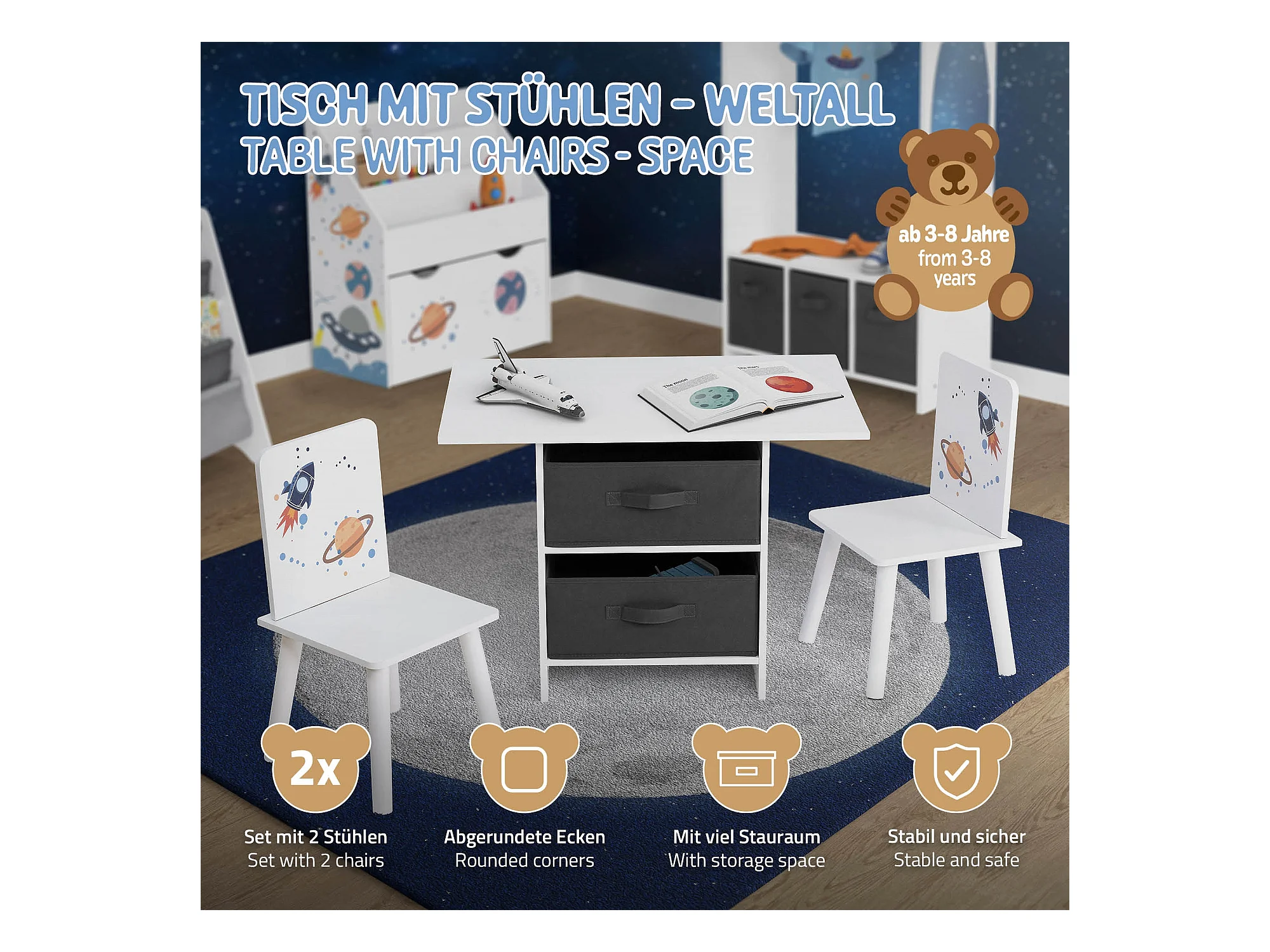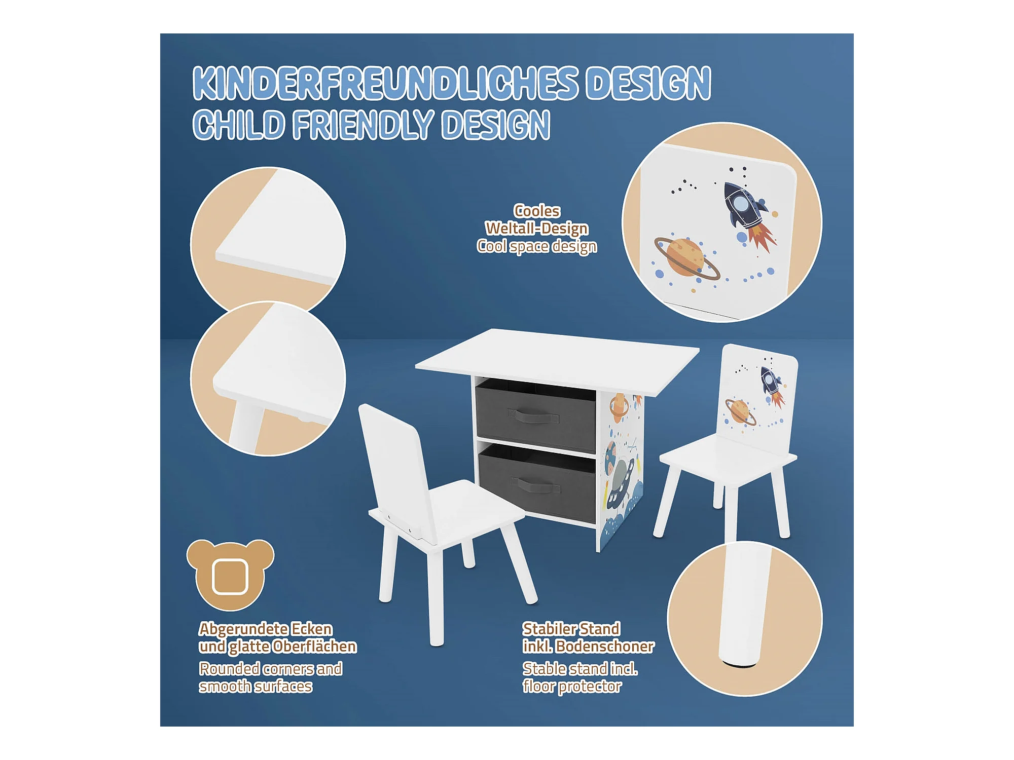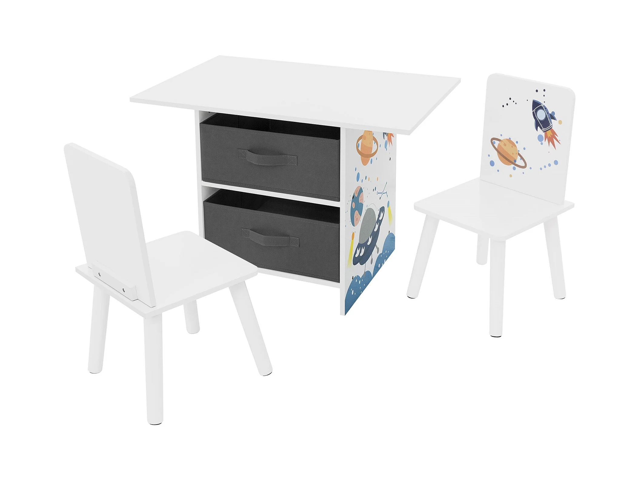 Joyz Tavolino con sedie per bambini in legno con 2 scatole mobili per stanzina