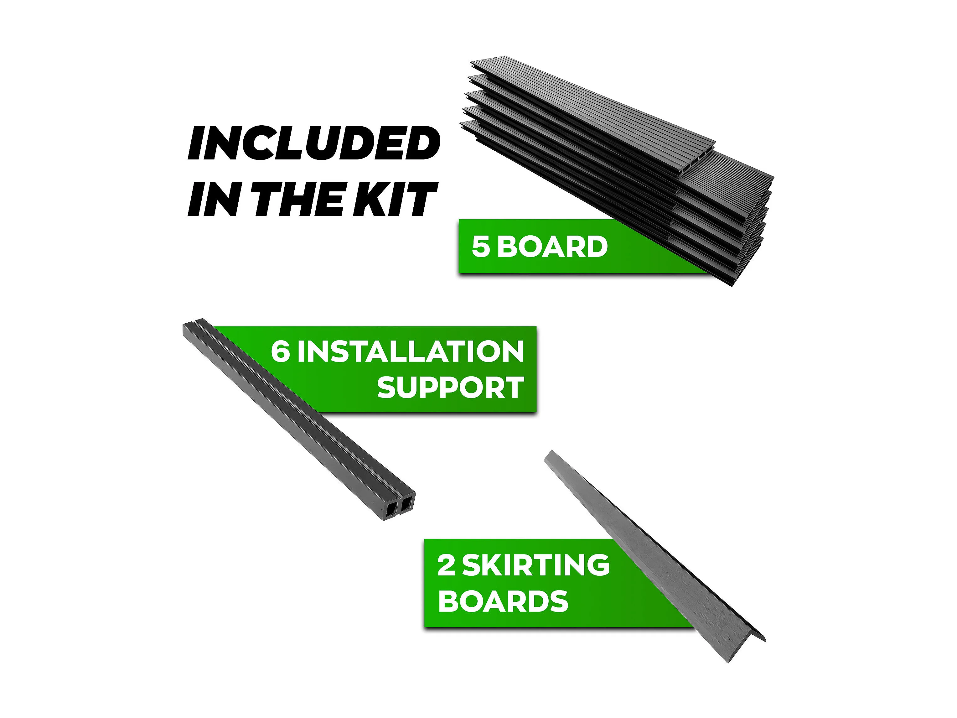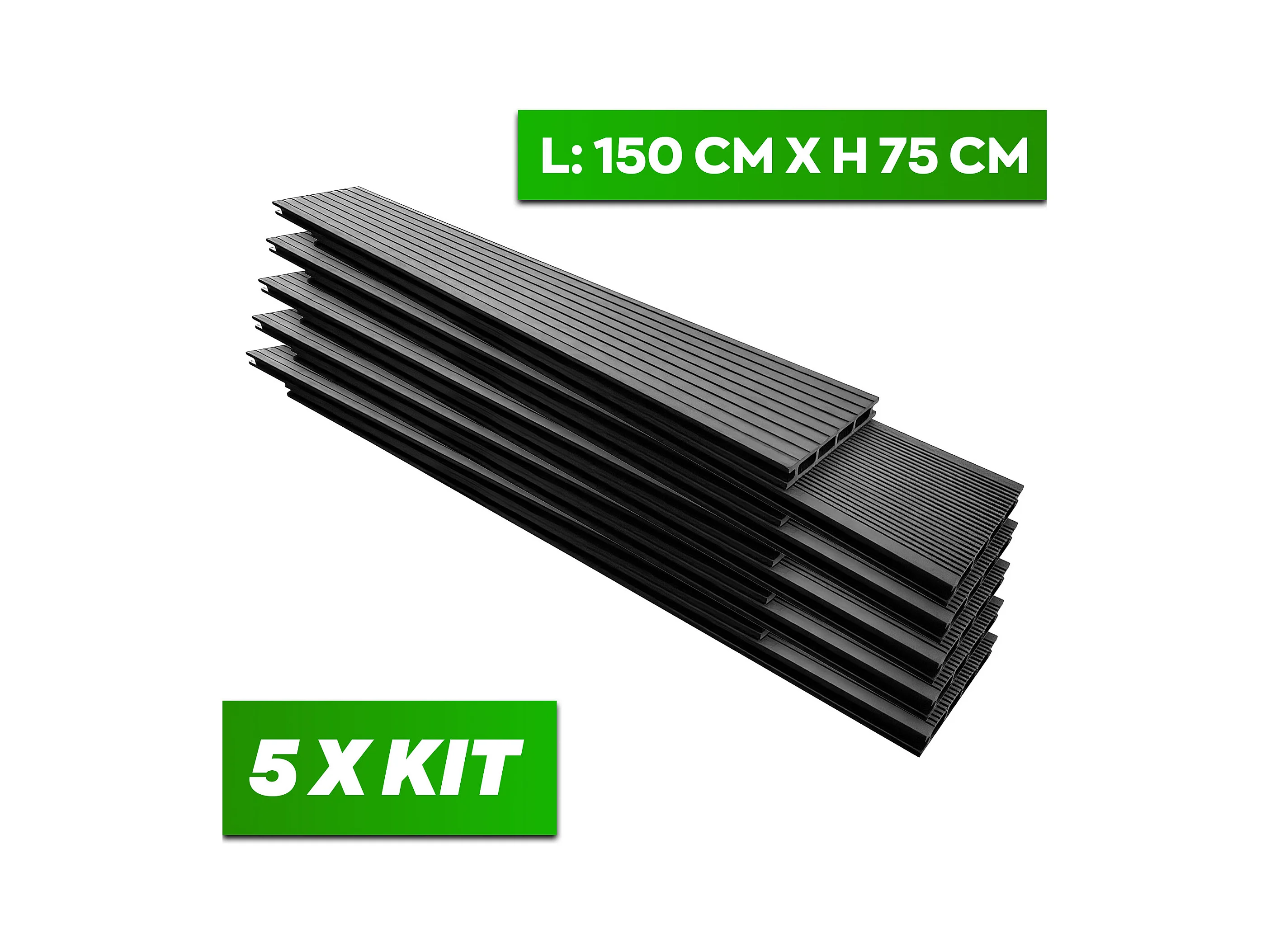 Kaido - Set di 5 Doghe Pavimento da Esterno 150x75 cm per Giardino Patio Terrazza in WPC Nero