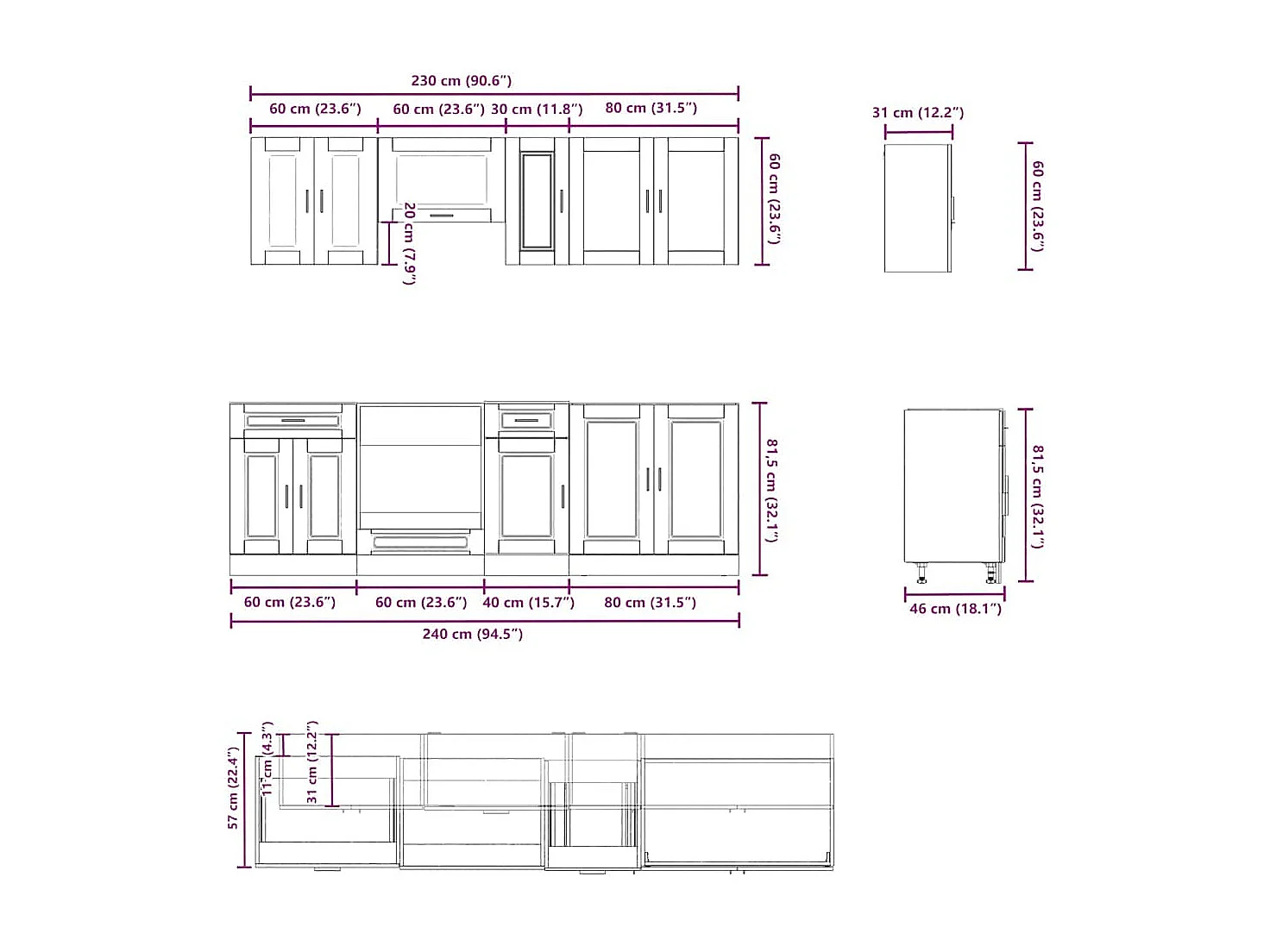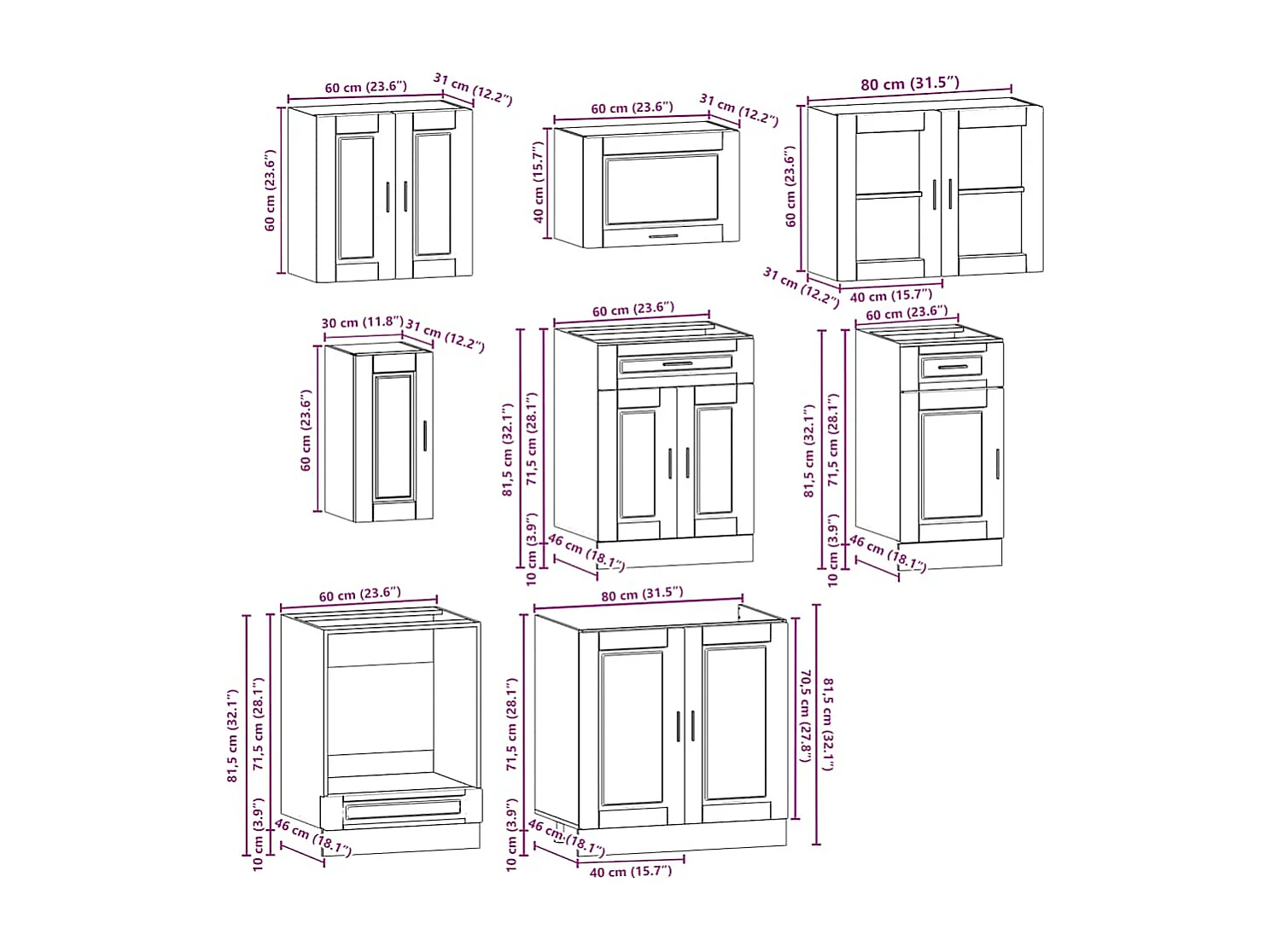 Kalmar 8 pezzi set di mobili da cucina in legno ingegnerizzato