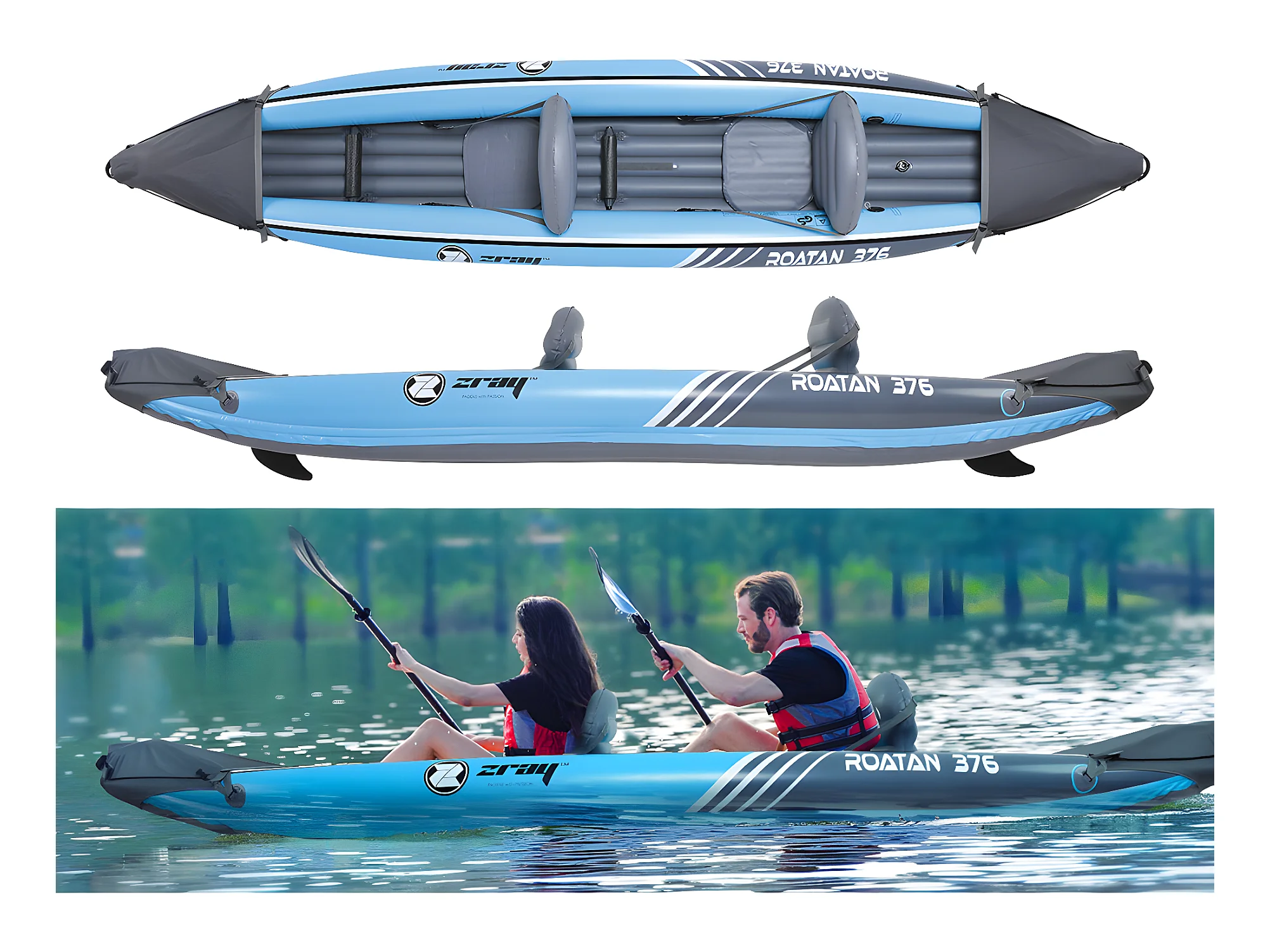 Kayak gonfiabile Zray Roatan 2 posti 100% PVC Pompa a pedale + 2 pagaie - Max 160kg -376x77cm (148 "x30") - Blu