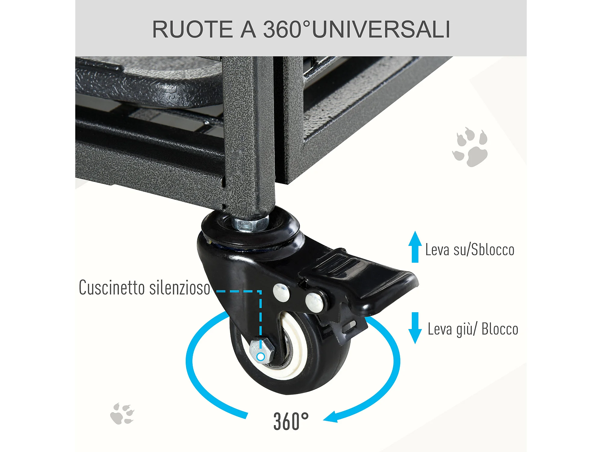Kennel gabbia per cani pieghevole porta con blocco 4 ruote