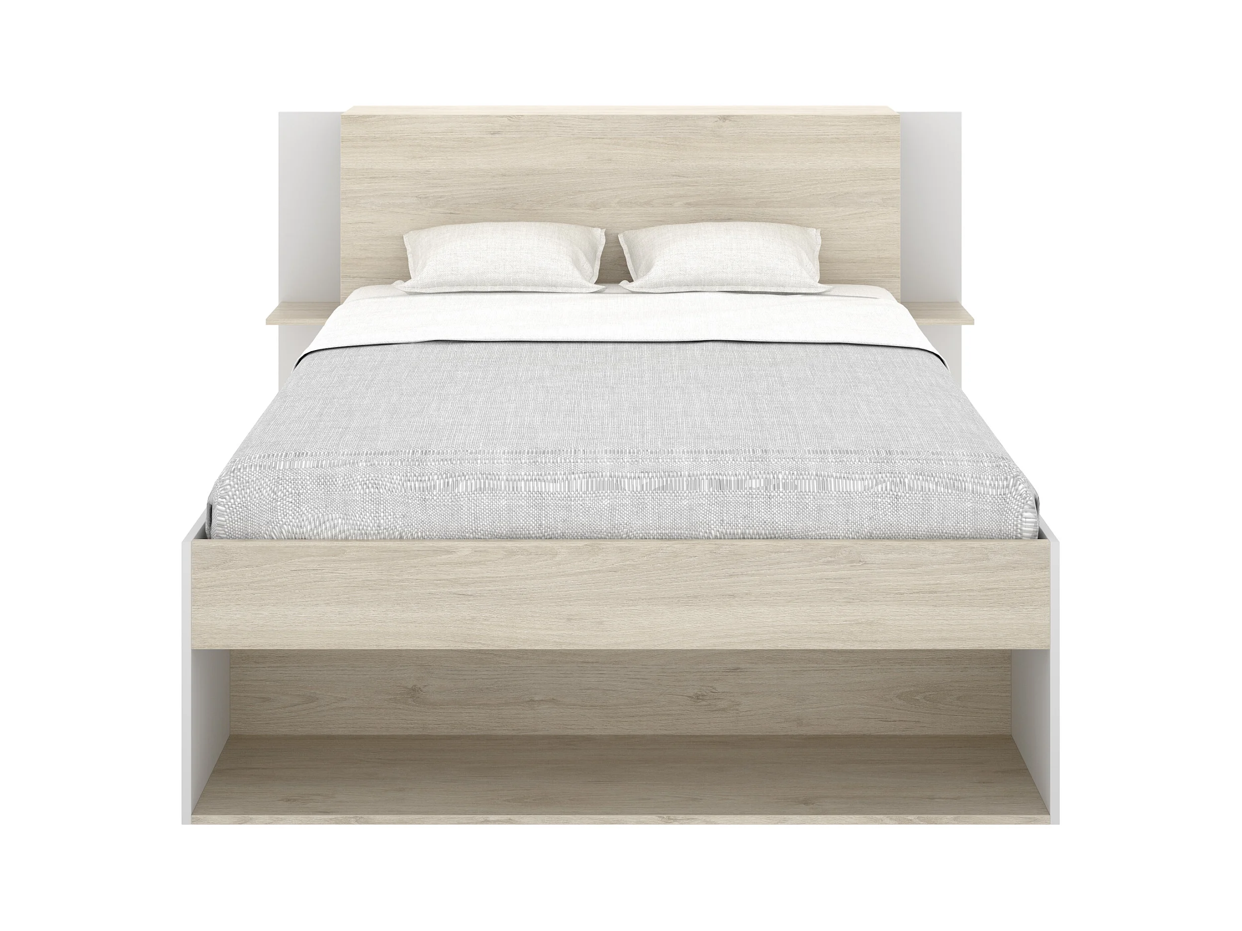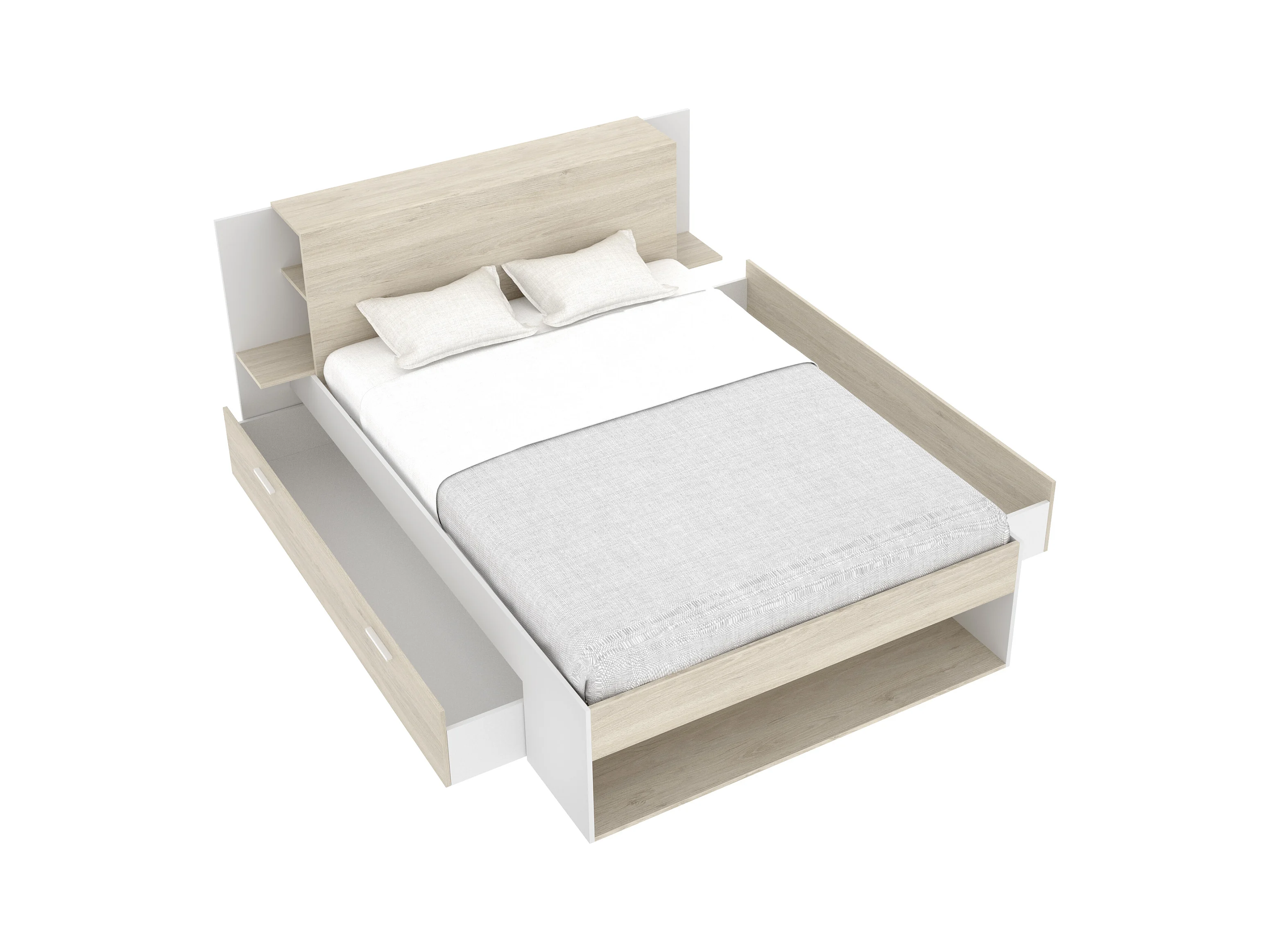 Letto 140 x 190 cm Con vani portaoggetti Naturale e Bianco + Rete a doghe + Materasso - KEROSIA