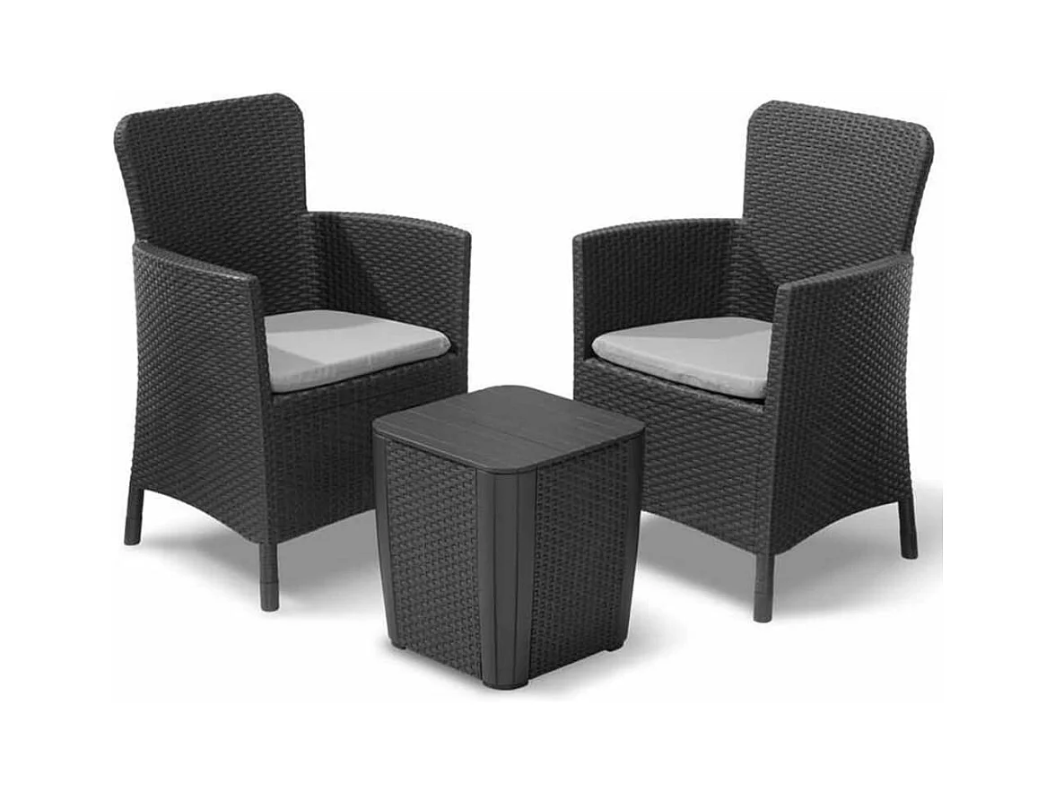 Allibert 219992 Set da salotto Rosario Balcony 2 sedie e 1 tavolo, effetto rattan, plastica, grafite
