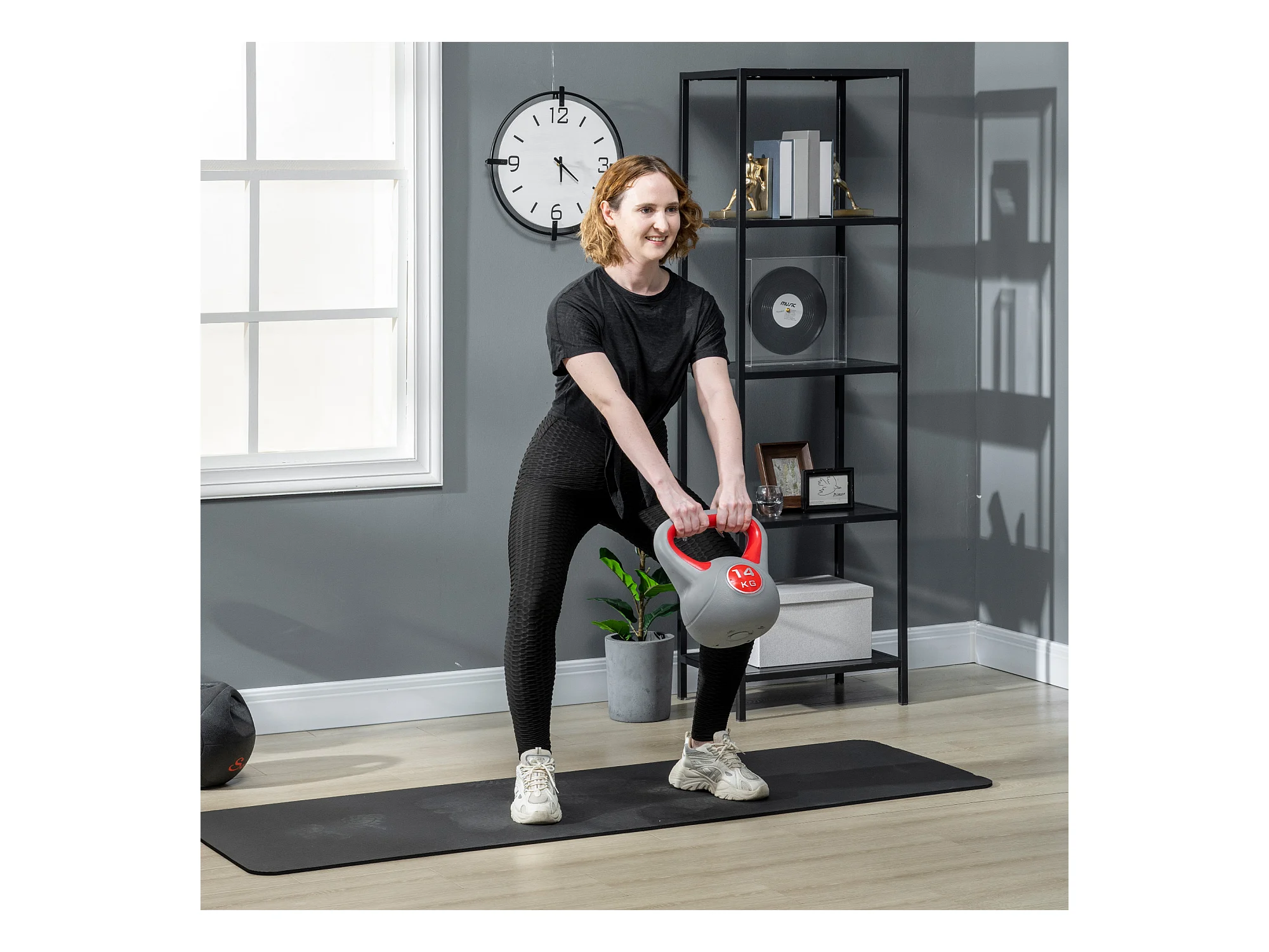 Kettlebell 14kg in pu e sabbia con base piatta e impugnatura rosso