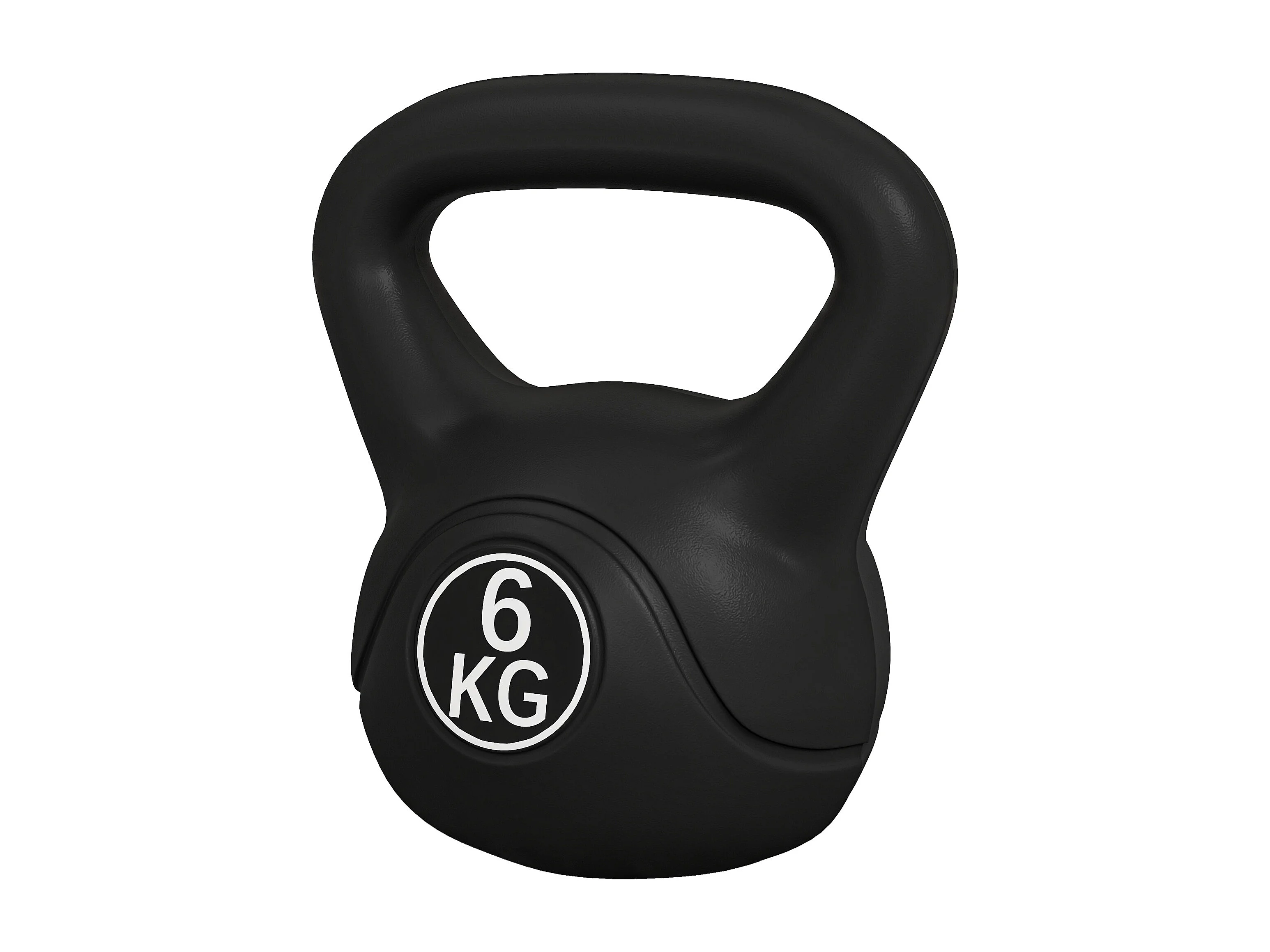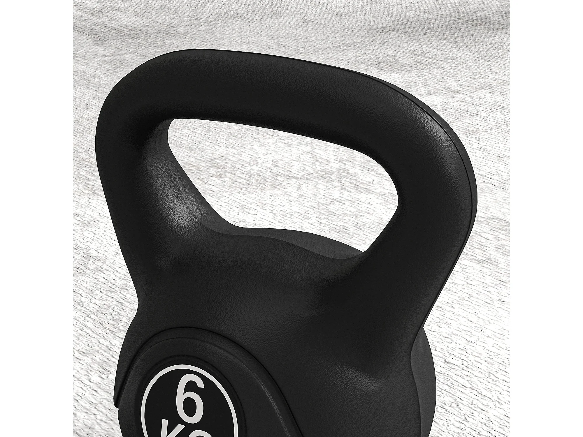Kettlebell 6kg con base piatta in plastica e sabbia nero