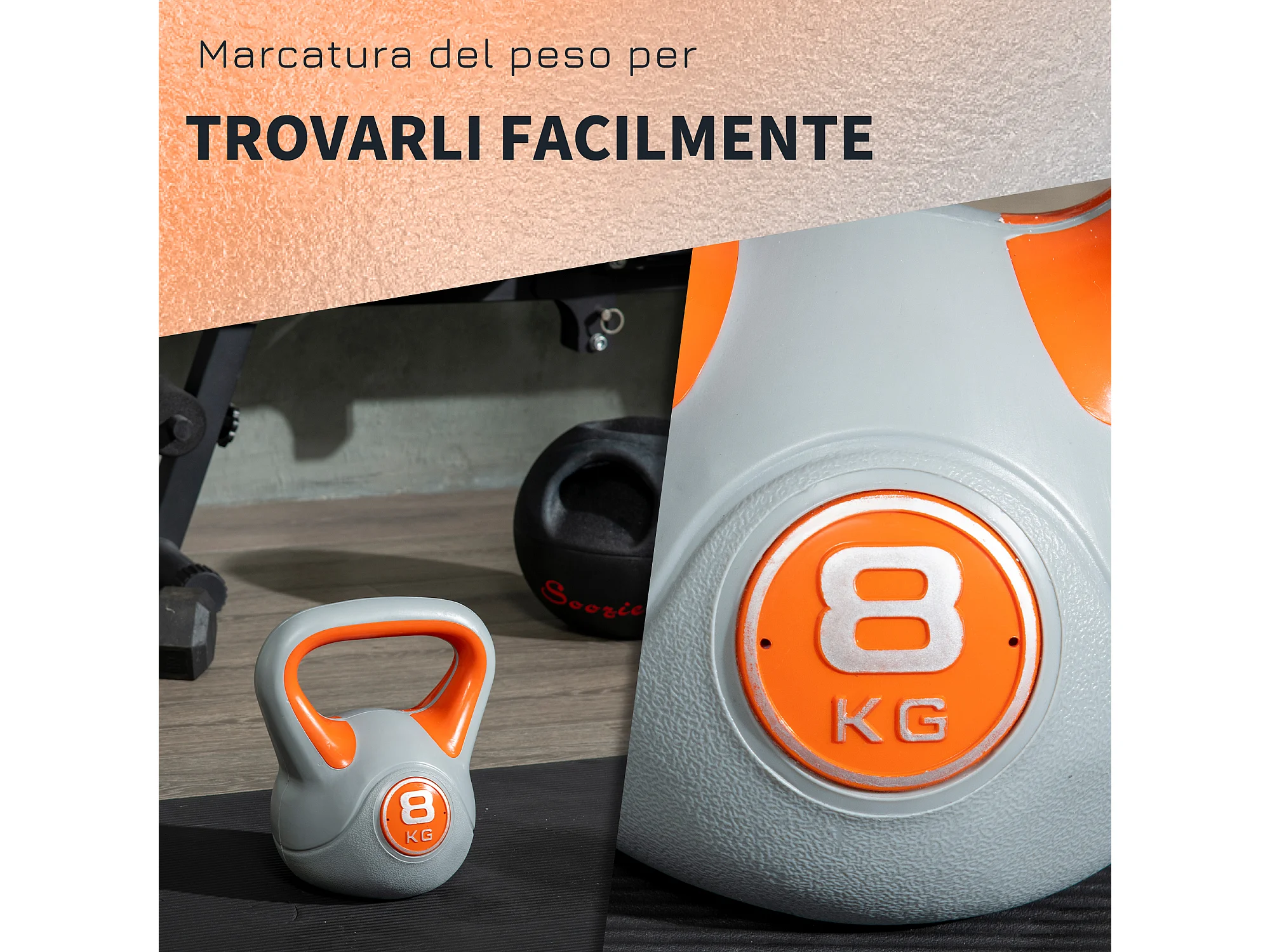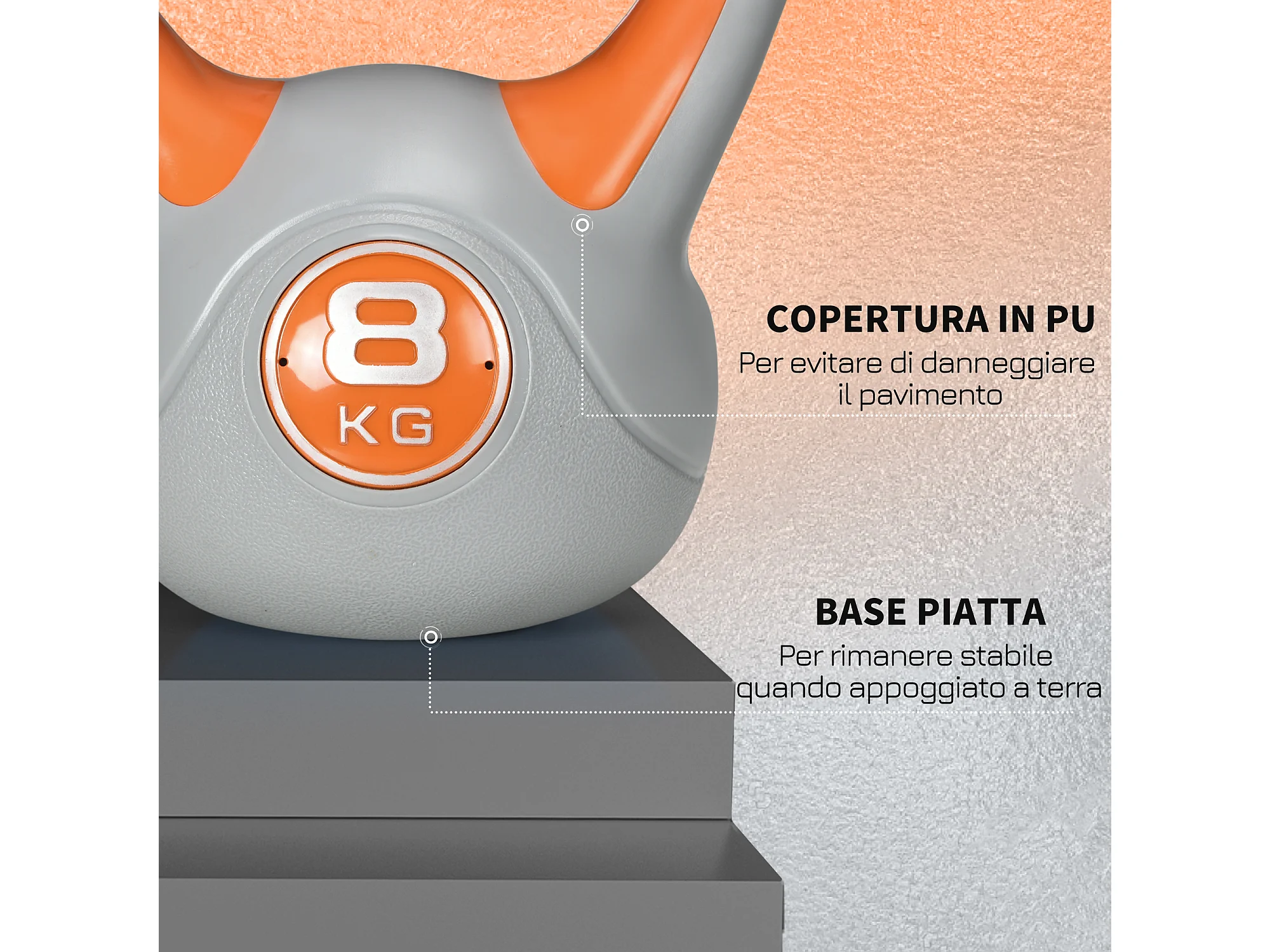 Kettlebell 8kg arancione in pu con base piatta e impugnatura