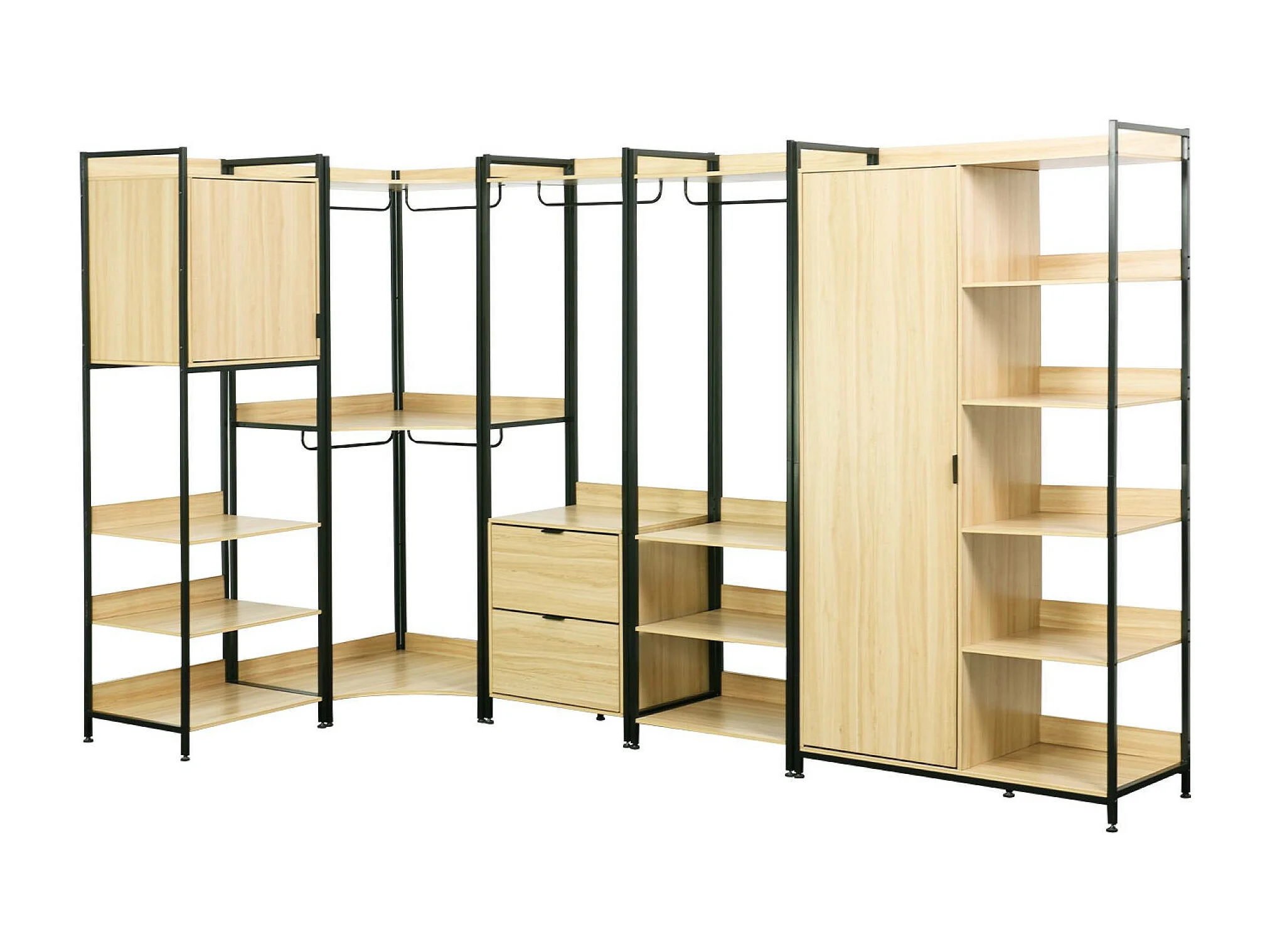 Modulo guardaroba angolare con 4 armadi e 2 ripiani, nero