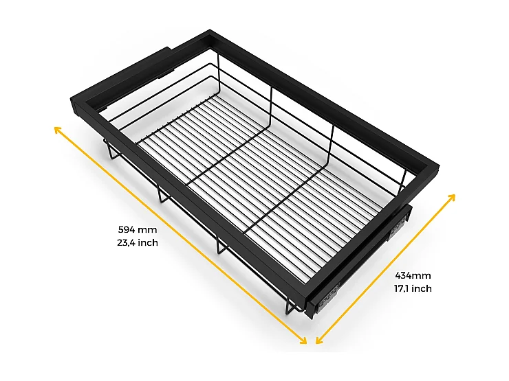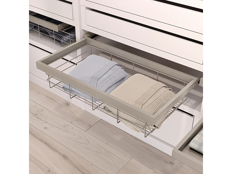 Kit cestello in filo metallico e telaio con guide a chiusura morbida per armadi, regolabile, modulo 600mm, Grigio pietra